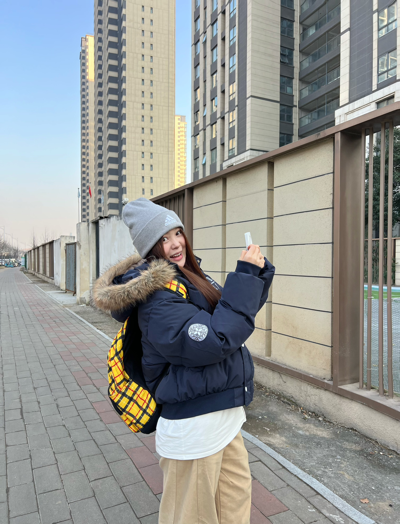 hallo宝子们~ 今天是“随便套上就出门”的松弛感穿搭。 藏蓝色短款羽绒服自带复古感,毛领一拉,挡风又显脸小。搭配一条卡其色阔腿裤,上紧下松的组合,把怕冷和显瘦同时拿捏住了。 再用一个亮色的包包和毛线帽点缀一下,保暖又有层次感。这大概就是冬天最舒服的打开方式吧~
