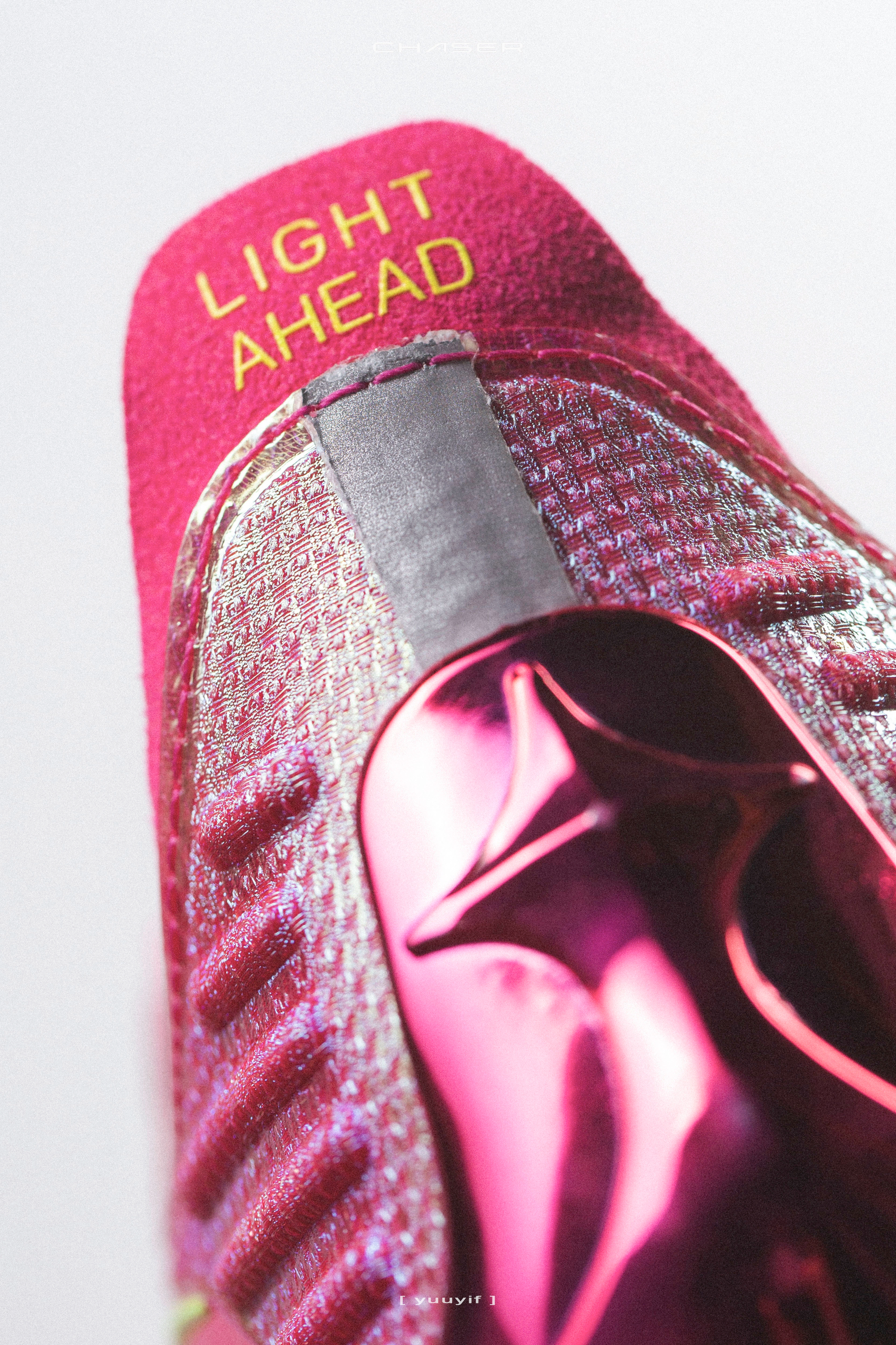 追光Pro目前曝光了三个配色,我也是有幸提前拍了其中两个,之前和大家分享过荧光绿色了,今天再来双粉红色版本,应该也是第一次和大家见面的配色。 和之前分享的荧光绿一样,这双粉红色同样是外观非常炸眼的配色,这个配色也用到电镀的一些元素,碳板还做了粉红色的纹理,质感真的做的挺棒的。距离正式发售的时间应该也不远了,大家可以一起期待一下。