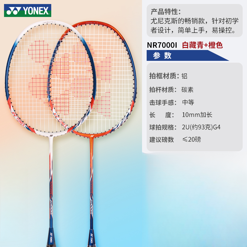 本篇笔记关联了YONEX/尤尼克斯 锐速系列 NR7000i 铝碳一体 双拍 碳纤维 手感舒适 精准平衡 高弹性 超轻型 防守兼备 增加挥速 控球型 速度型 入门级 耐打耐用 易上手 中杆 全碳素 羽毛球拍 白藏青+藏青橙等商品,为用户提供真实的使用体验和购买参考。