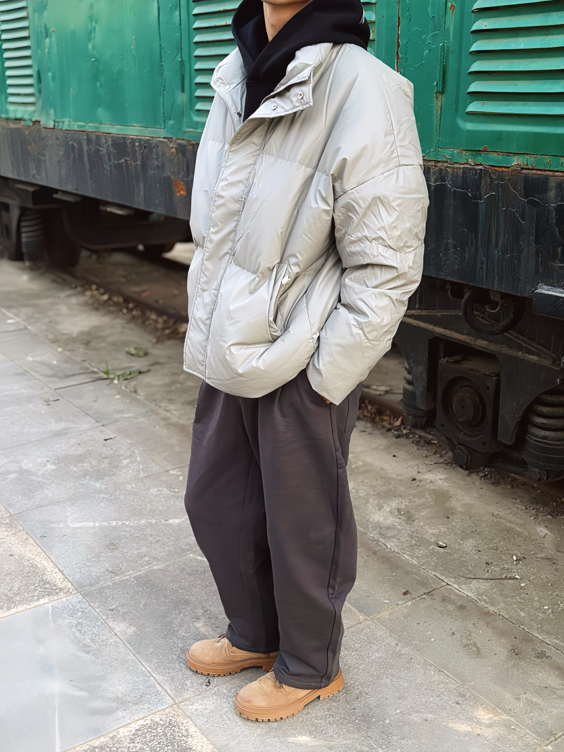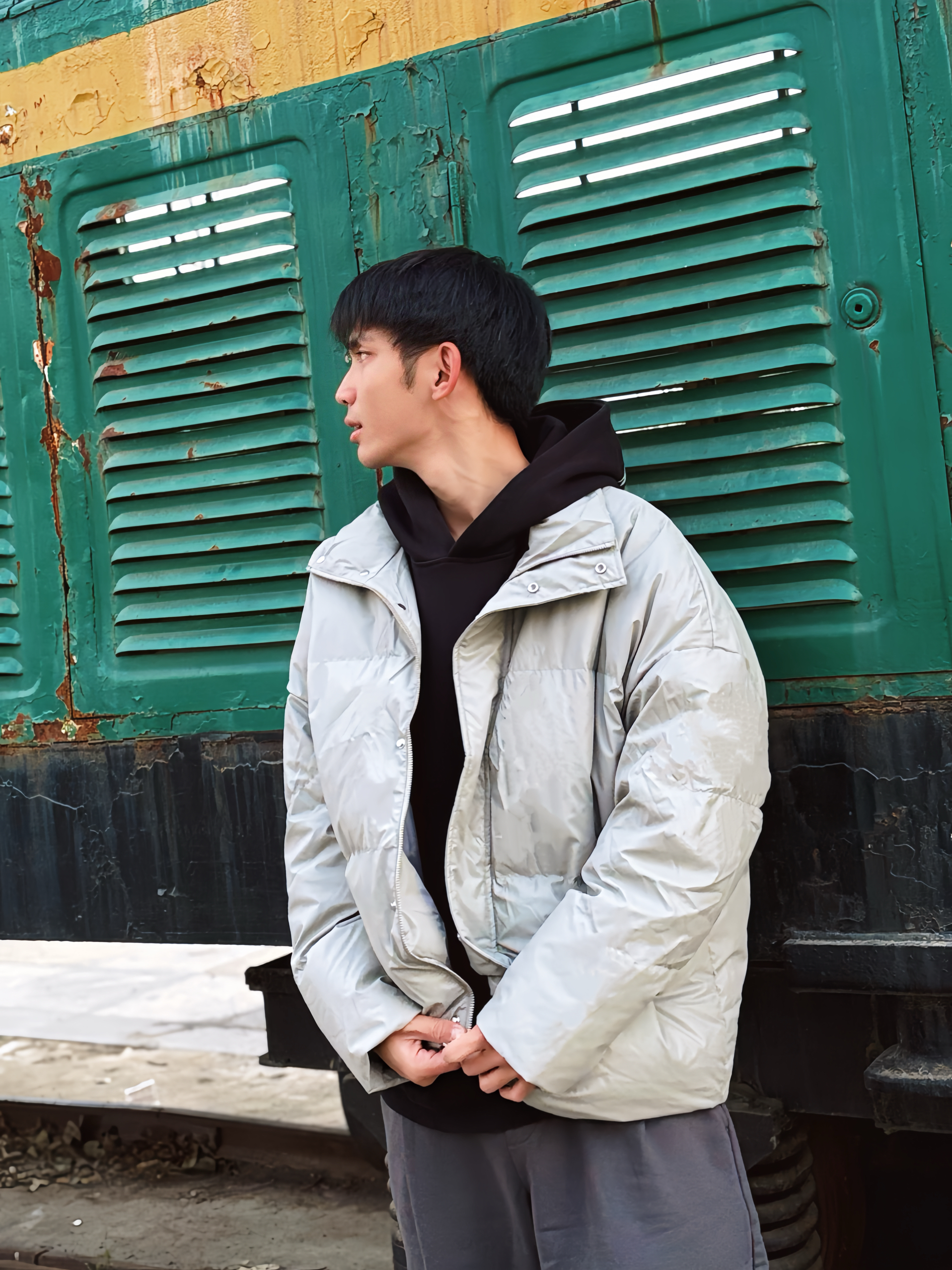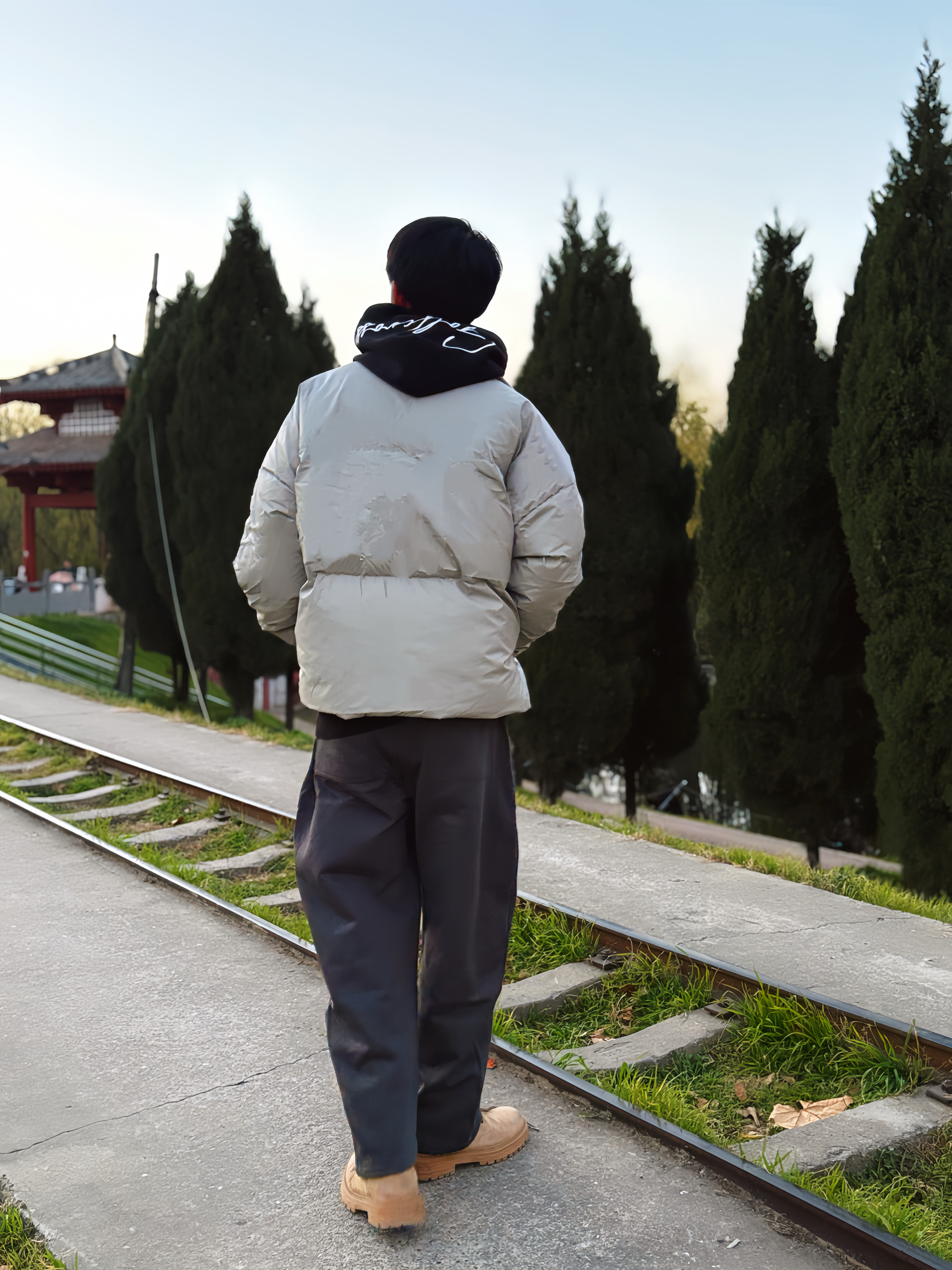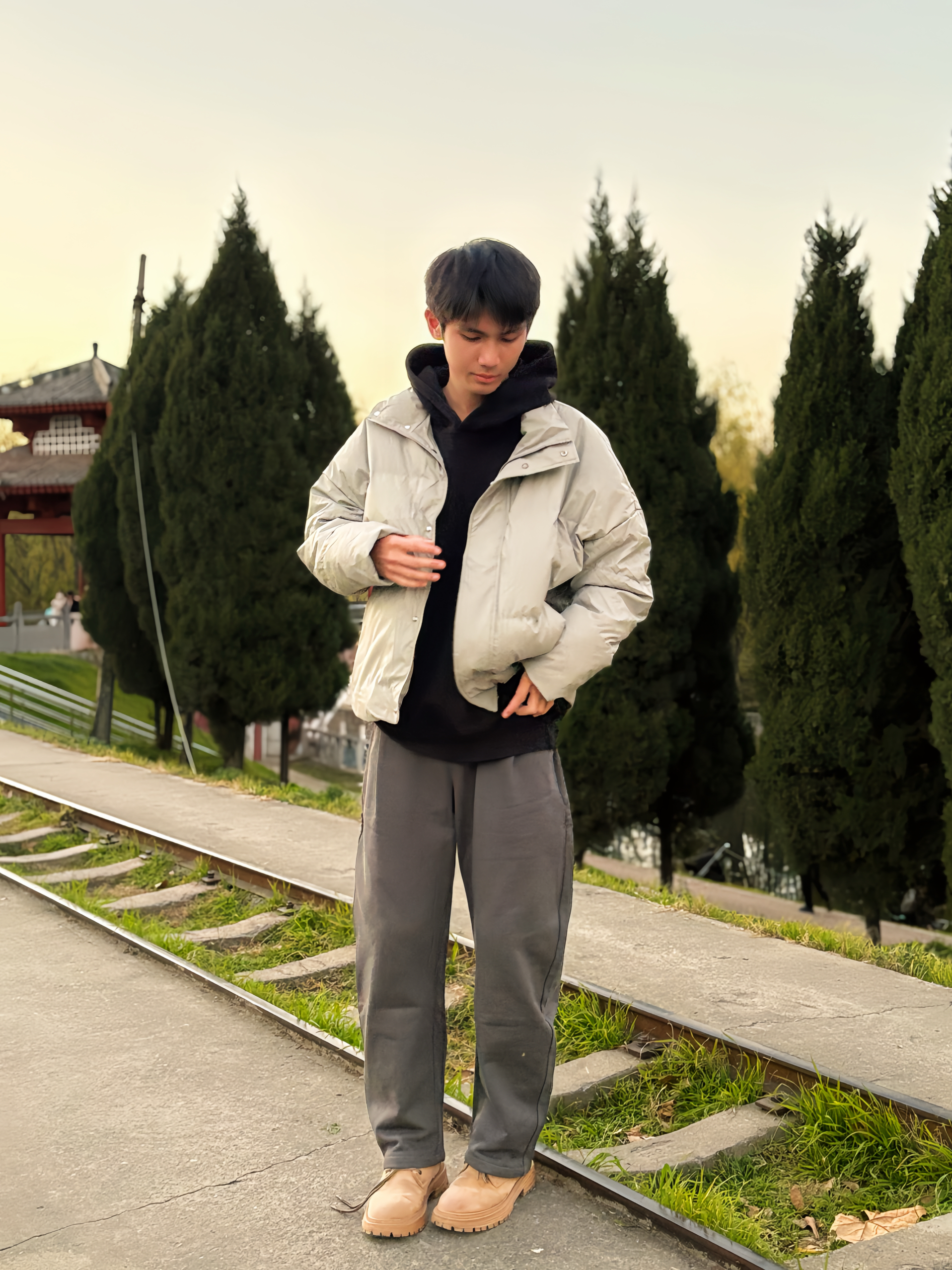 今早出门我套上了CHINISM这件太空灰羽绒服✌️。立领拉到底,冷风一点都钻不进来,90%鸭绒填充在身上暖呼呼的☀️。 我的搭配: · 外套:宽松的太空灰羽绒服,版型挺括不臃肿,分格充绒很均匀✨✨ · 内搭:叠穿了黑色连帽卫衣,增加层次。 · 裤子:深灰色弯刀裤,针织面料垂坠又保暖,活动起来很方便。 · 鞋子:一双厚底马丁靴,和裤子顺色,拉长腿型还防风。 💡 通勤体验: 挤地铁不觉得束缚,到...