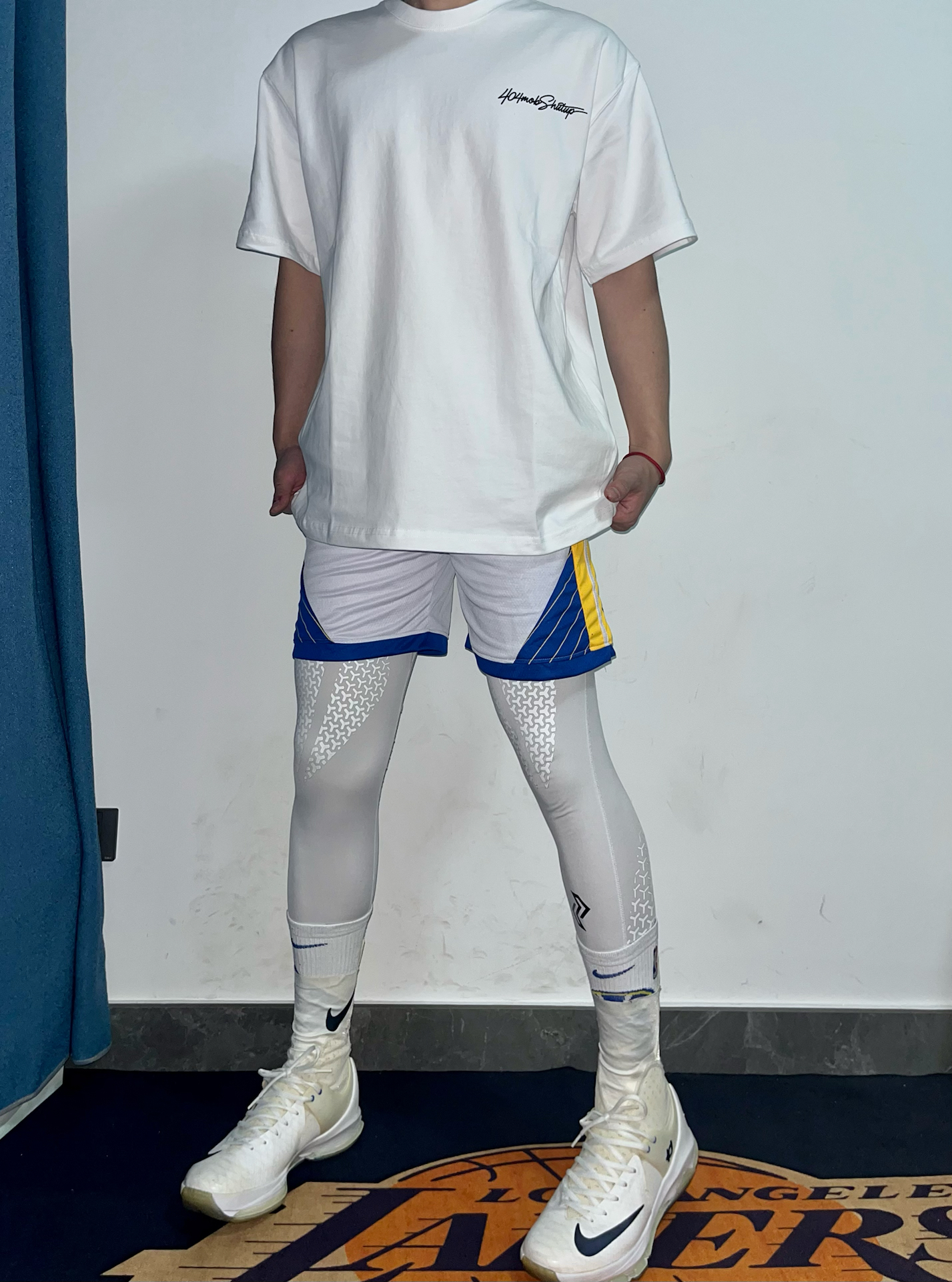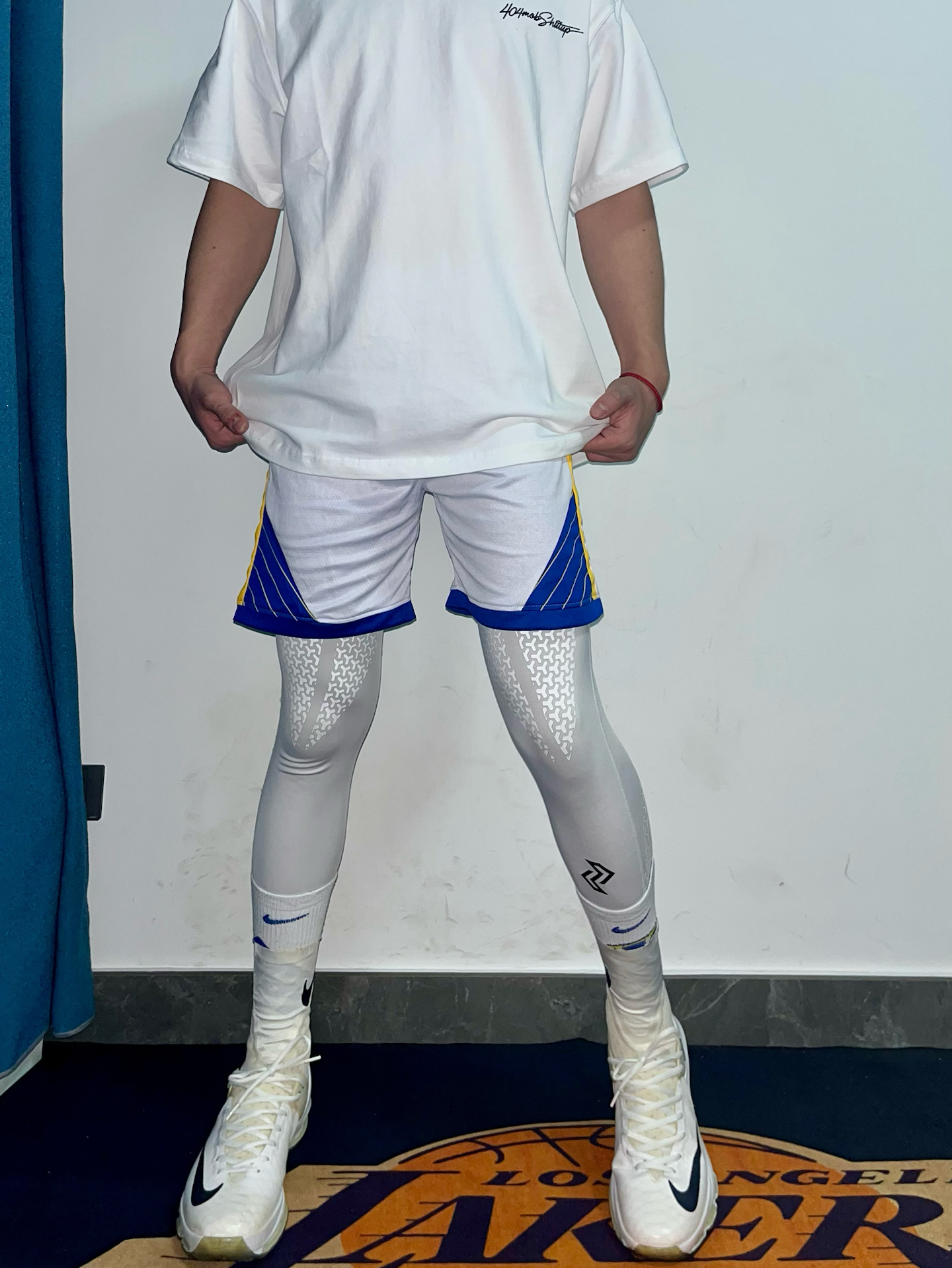 一身纯白搭配蓝黄细节, 是阳光少年的味道 简单的白T配上同色系篮球短裤和护膝 #白袜体育生穿搭 #白袜高弹体育生 #分享体育生穿搭 #冬季体育生穿搭 #体育生穿搭日常