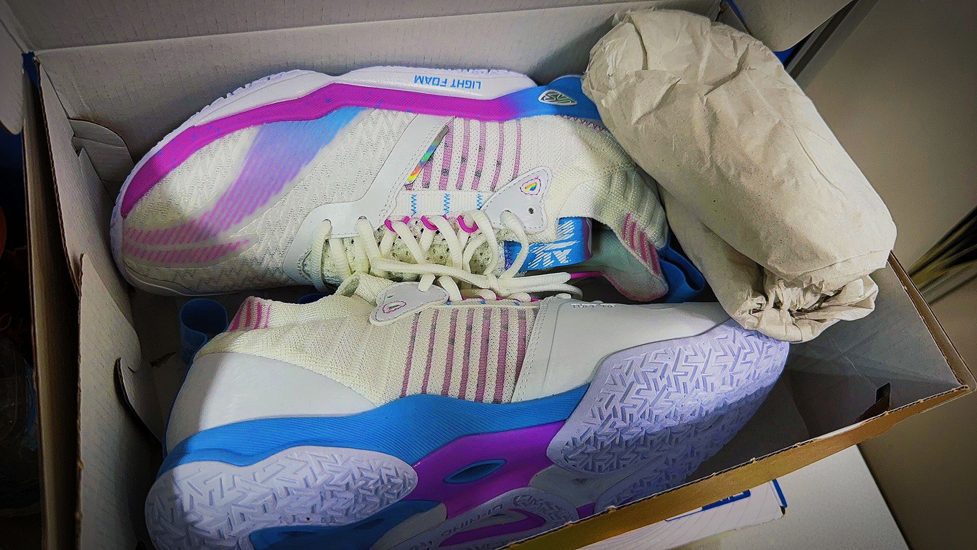 这双鞋子👟到手真的太戳我了👇,经典蓝白配色搭配非常好看,比传统的运动鞋颜值更高,还发现搭配各种衣服👚都有时尚潮流感,自带一点增高哦! 更重要的是⚠️这双运动鞋👟上脚真的超级舒服,打羽毛球🏸几个小时完全不觉得累。羽毛球🏸️拍的颜值也超高哦,打球也是简单好用易上手!