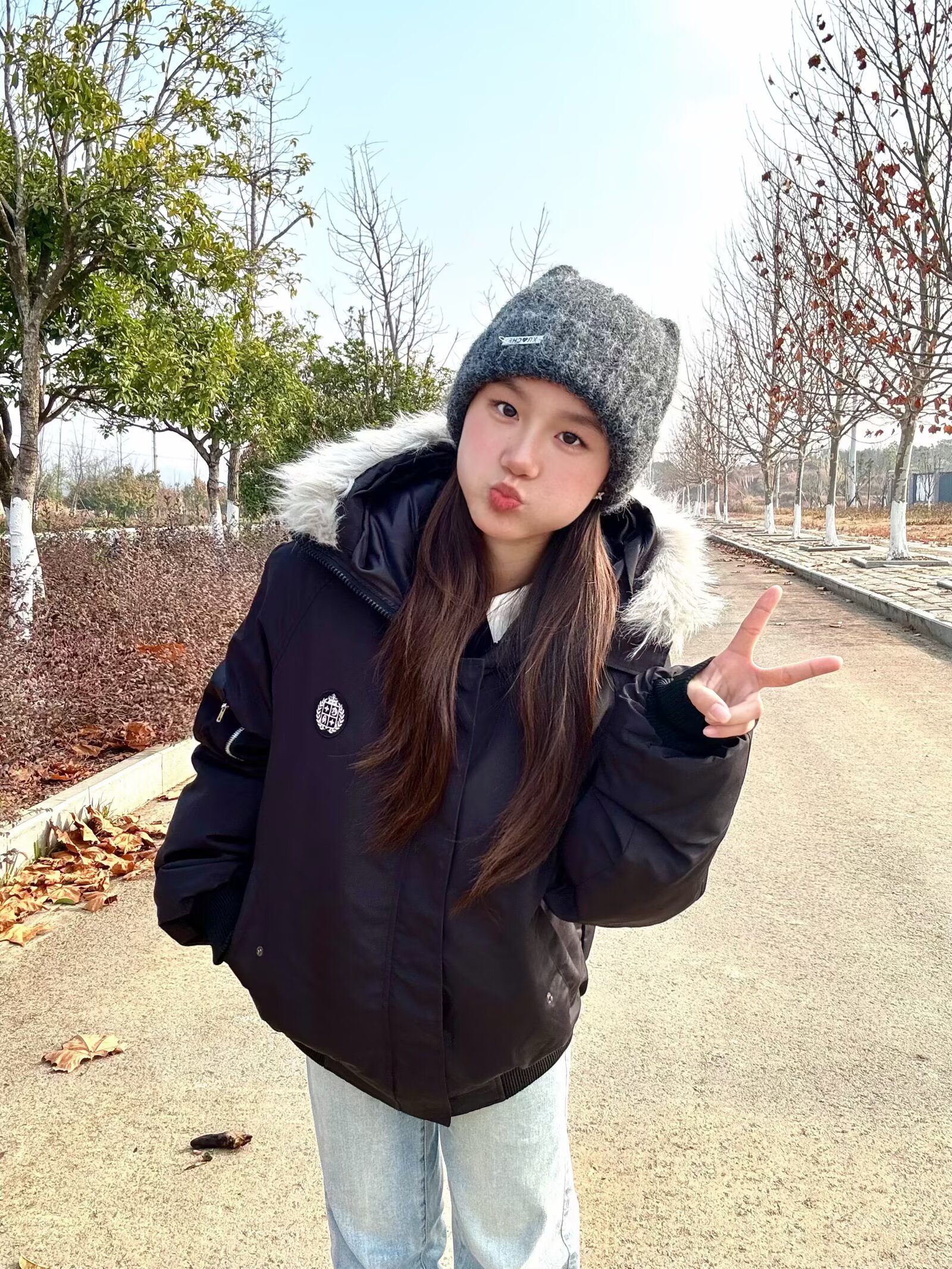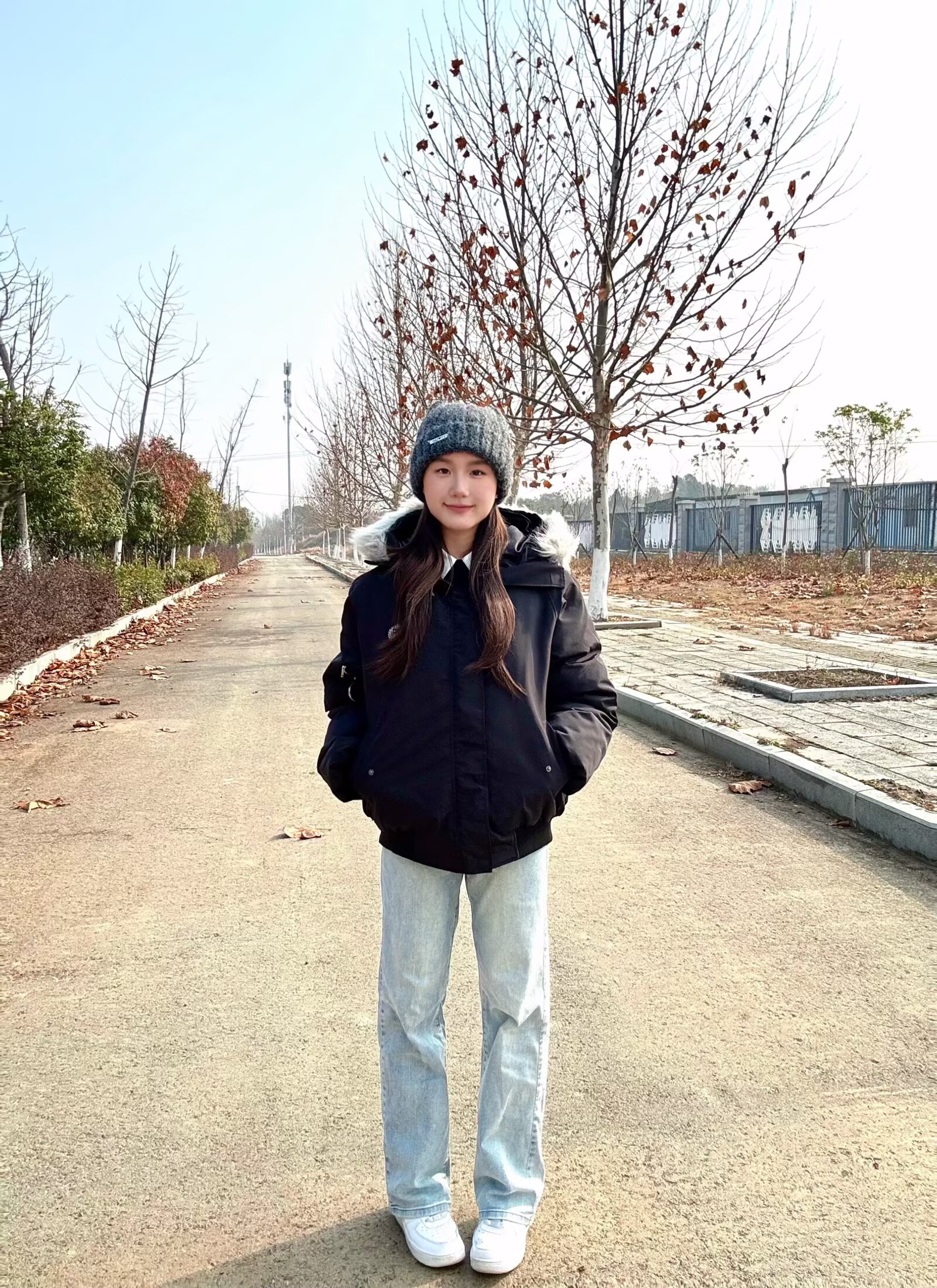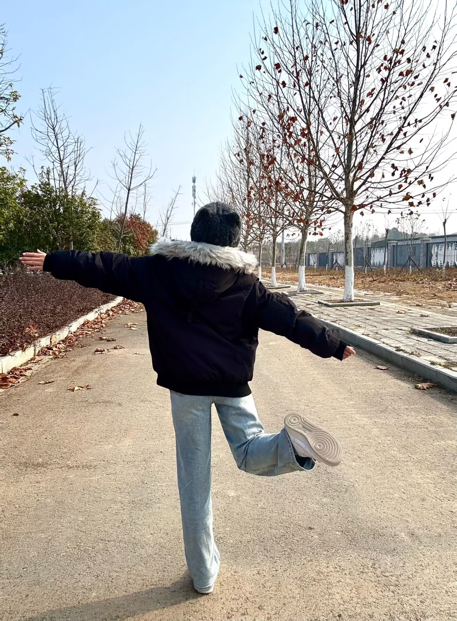 今天穿的是黑色复古美式棉服,下面搭一条牛仔裤和小白鞋就很有潮酷的氛围感啦😉版型是那种宽松的,里面塞毛衣、卫衣都完全不勒☑️我160的个子穿起来贼显腿长😆面料摸起来滑溜溜的,刮风天穿也不灌风,口袋还深,揣手机钥匙超方便🤩衣服的袖子上还有拉链,胸口处也有徽章标志,美式超酷一键get!🥳