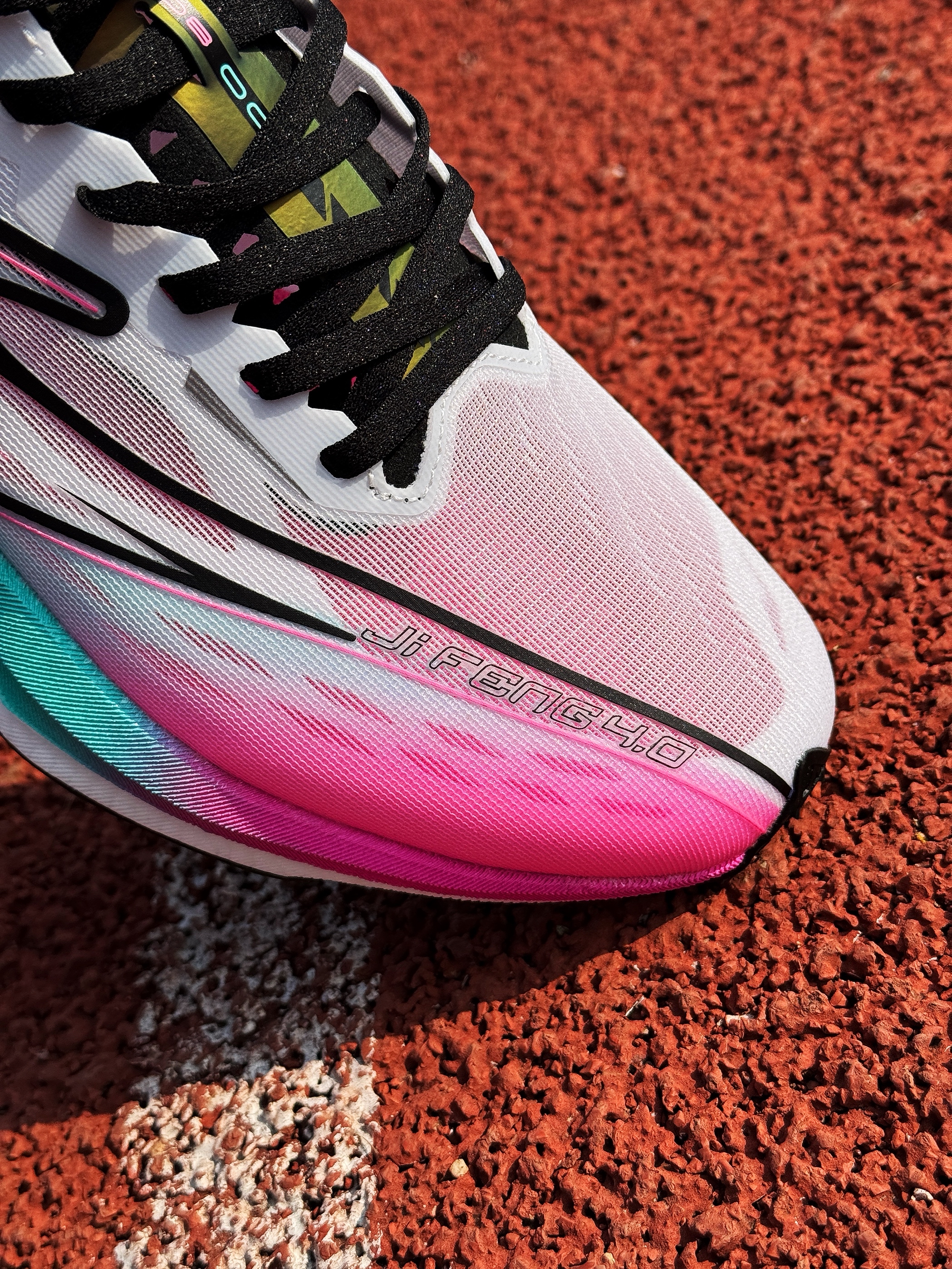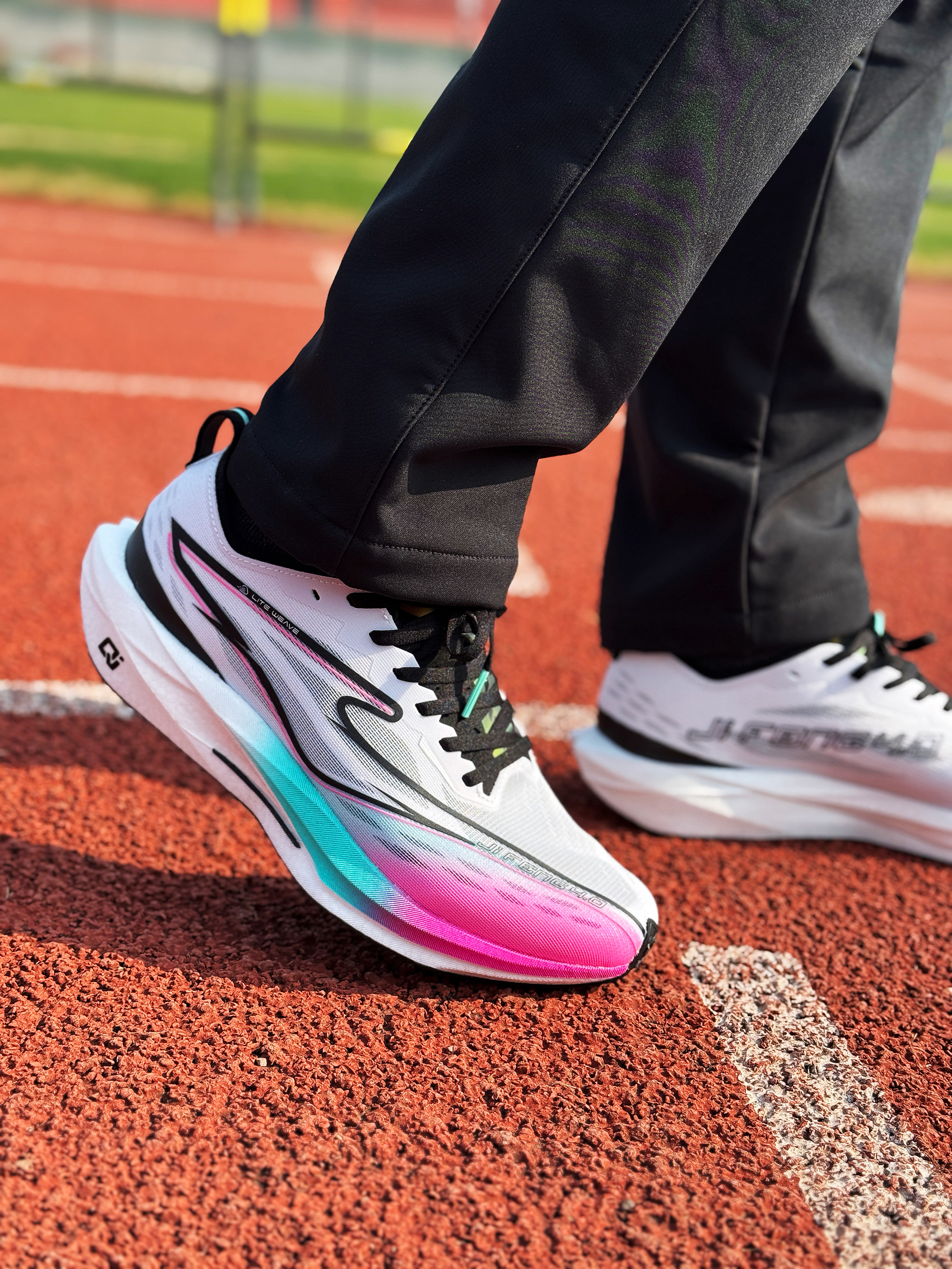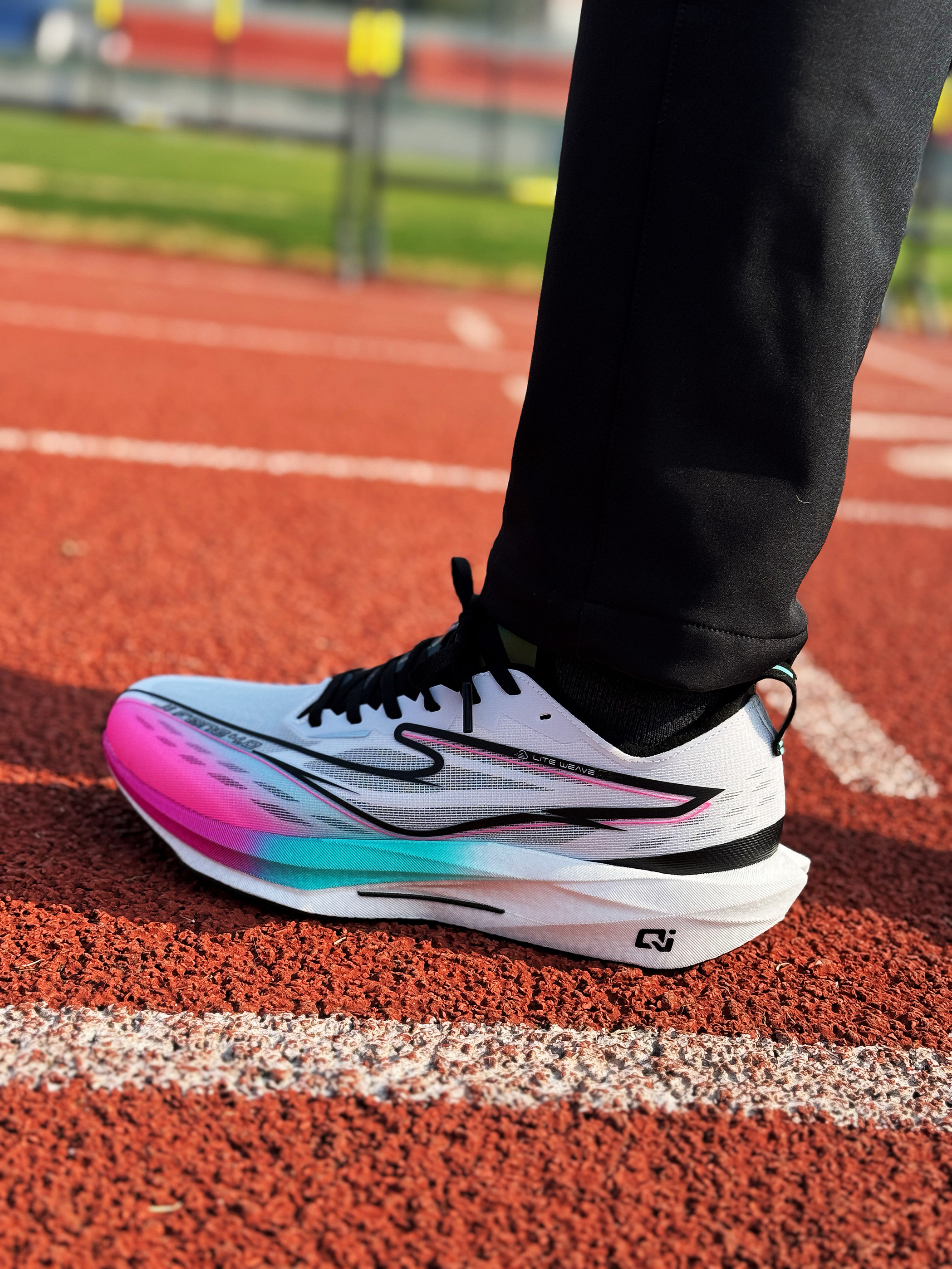 尔克家的极风系列应该都不陌生了吧 可以说是体考体测专业户了!即将发售的极风4体验下来 还真有点东西! 这双追光者配色颜值在线 外观看起更加犀利修长 上脚效果确实还不错! 绞综鞋面轻薄透气 中底采用全掌炁科技+玻纤片的组合 脚感韧弹 非常轻巧!整体比较好驾驭 跑跳过程中也能感受到不错的助推感! 值得一提的是它的KPU橡胶大底 布满碎钉齿花、尖刺 不仅增强了鞋子的抓地力 防滑效果也还不错!鞋子足以应对...