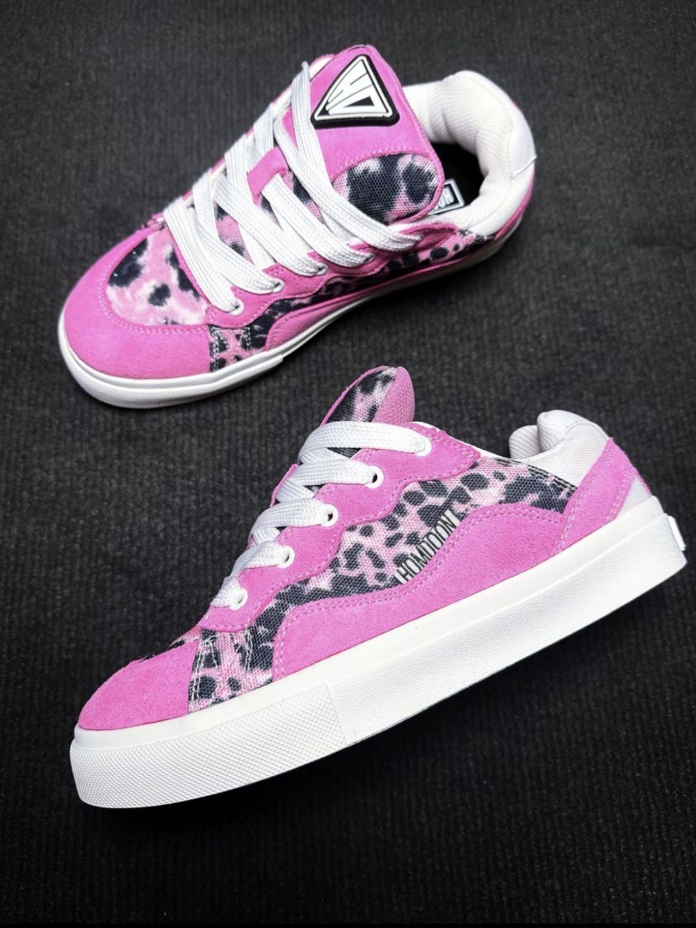 鞋子实物一眼少女心爆棚 整体粉色十豹纹皮革 拼接又甜又飒 细节拉满 上脚一整个心动住!? 鞋面是皮革和翻毛皮拼接设计柔软细腻 层次感 和质感都不错 橡胶鞋底防滑耐磨也不错 上脚我能明显感到包裹感!? ?透气性也不错穿一整 天也不会觉得闷脚 整体穿下来给我的感觉蛮舒 适轻盈的 但需要注意的是!?鞋面皮革翻毛皮材质避免湿鞋 刷直接刷或者水洗、水泡以免出现掉色情况 板鞋整体穿下来给我的感觉蛮舒适轻盈的 ...