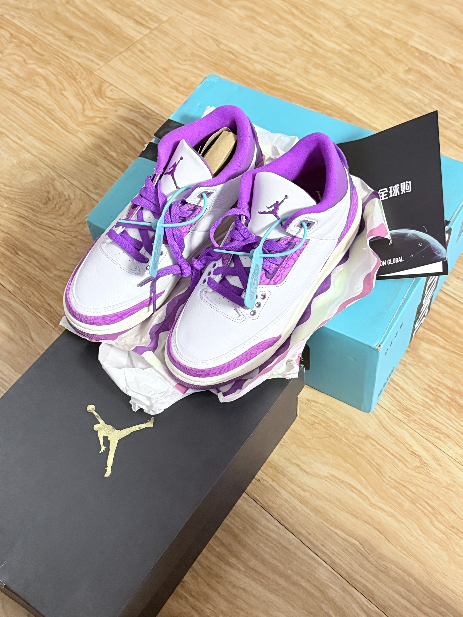 这双aj3好看死了!嘻嘻 是我最喜欢的紫色💜这个价格也是很有性价比了的 非常满意!