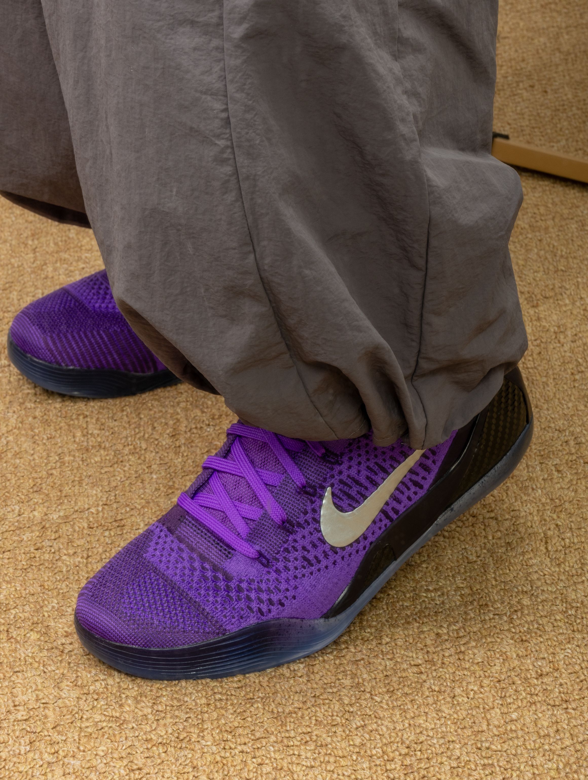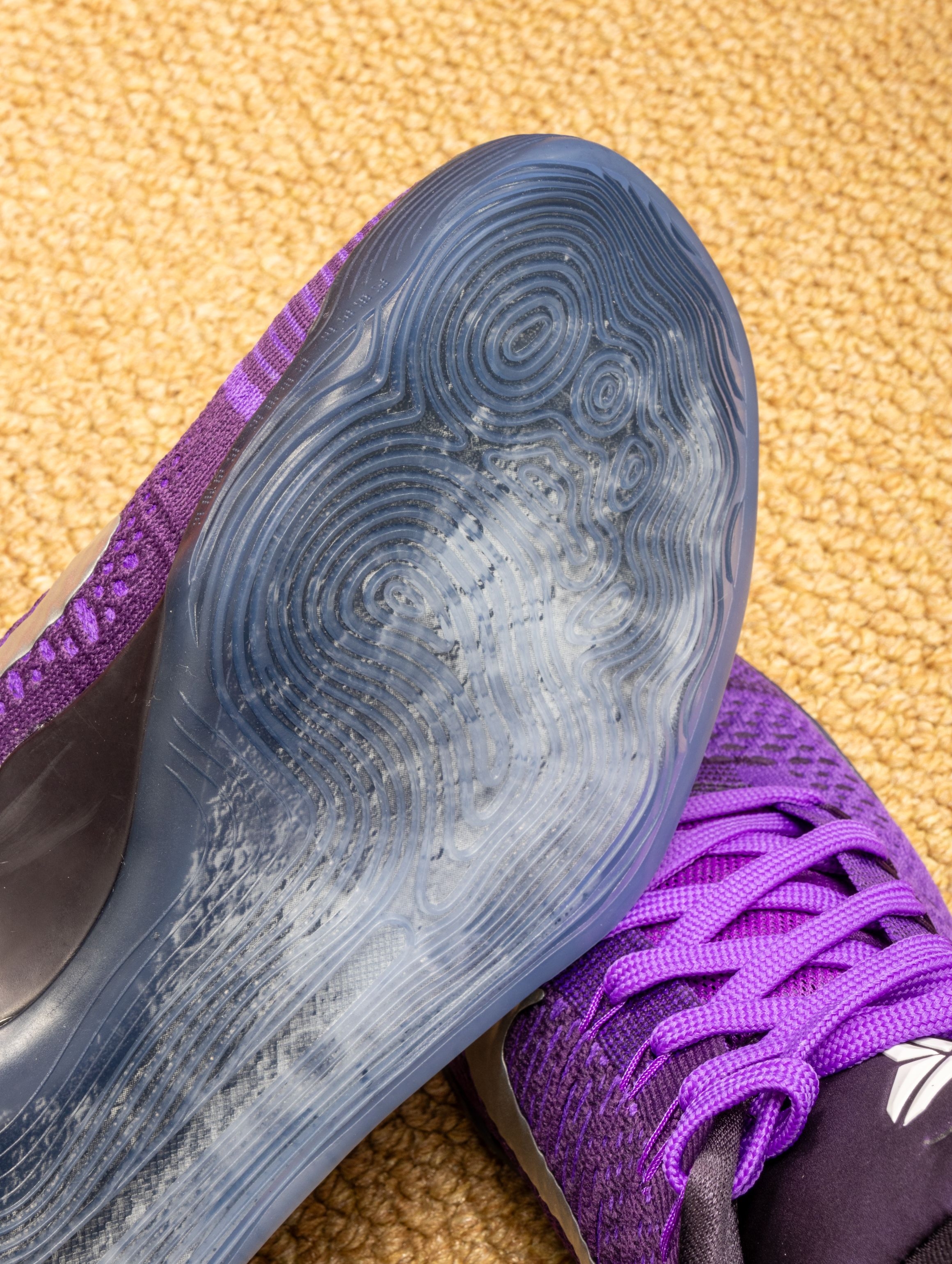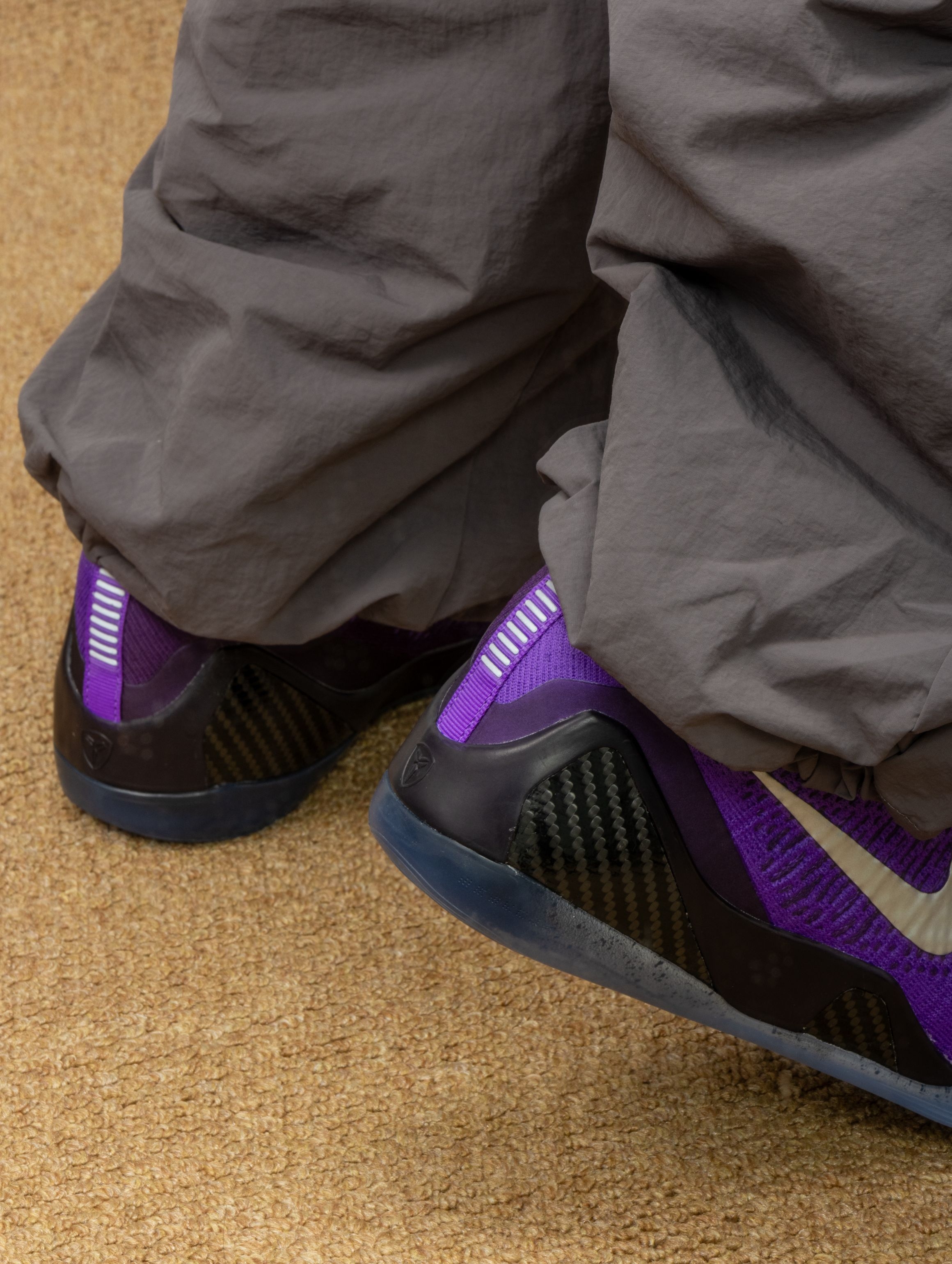 这双Kobe 9的淡紫色实物,美到失语!像月光洒在冰川上折射出的极光残影,Flyknit纹理在光下会泛出细腻的珠光。 上脚的第一感觉是:轻到不可思议!低帮设计让脚踝完全自由,后跟Zoom的配置,走起来既有云朵般的柔软,又有清晰的回弹反馈。穿它实战,变向时感觉鞋像是“长”在脚上,抓地力在木地板上吱呀作响,每一步都踏实又迅猛。 它成了我的训练日常鞋,搭配灰色系运动服,紫色在步伐间若隐若现——它不说...