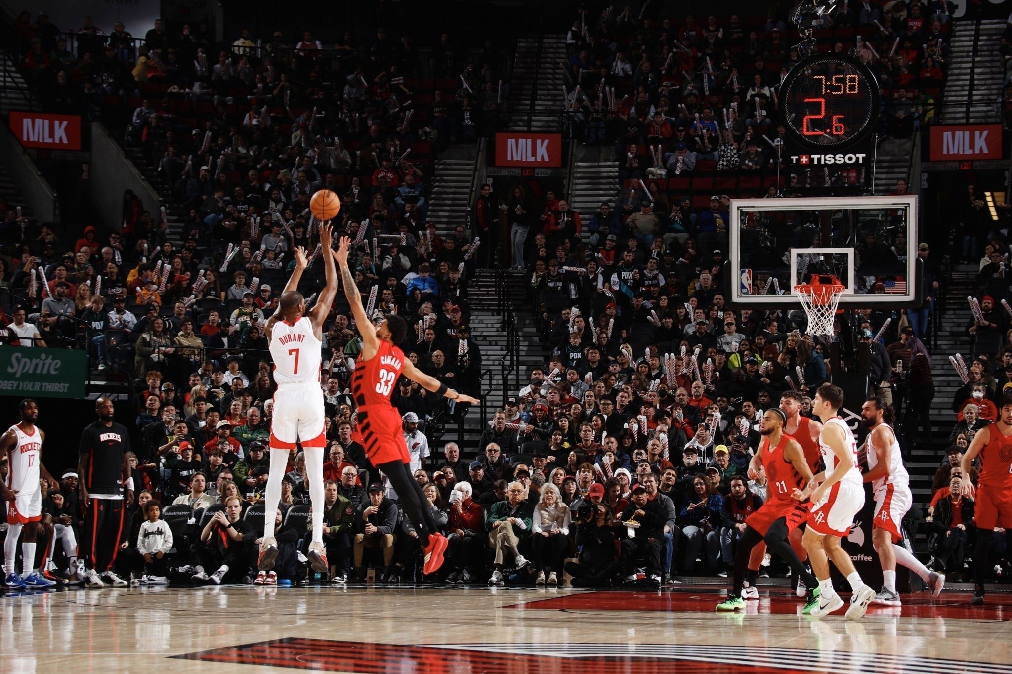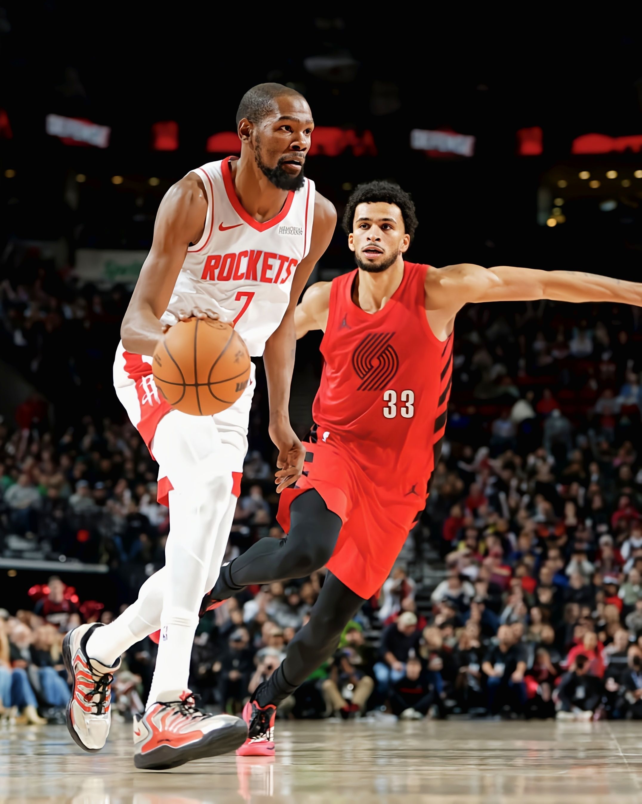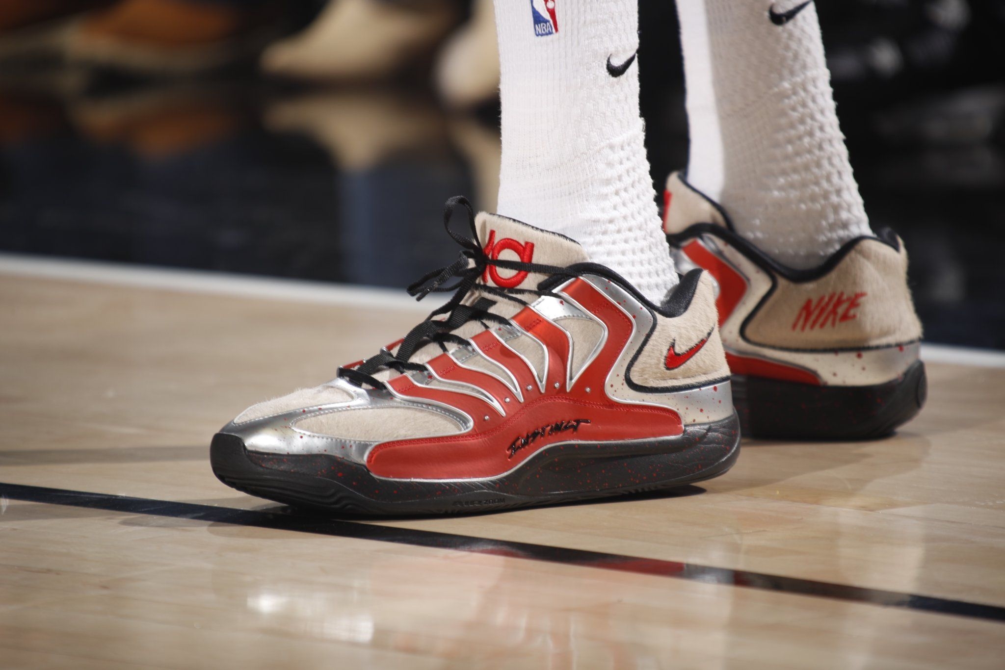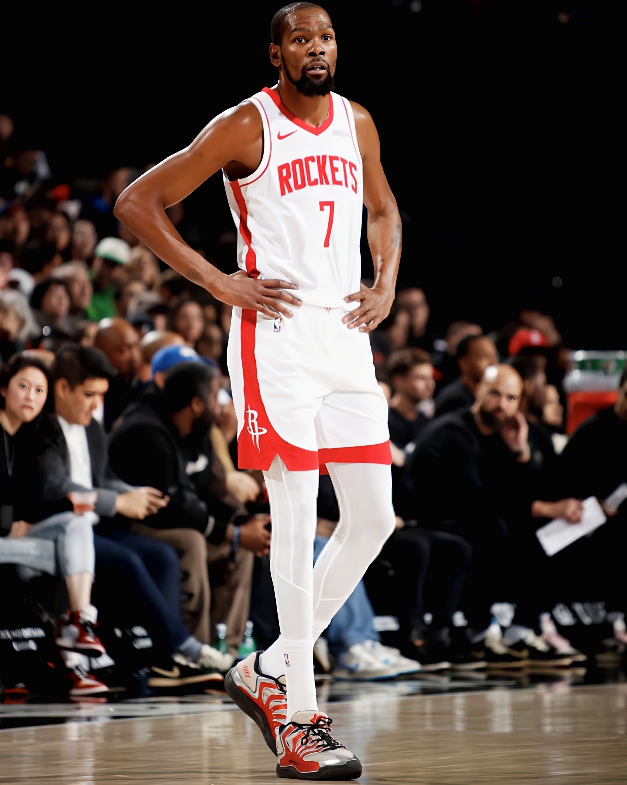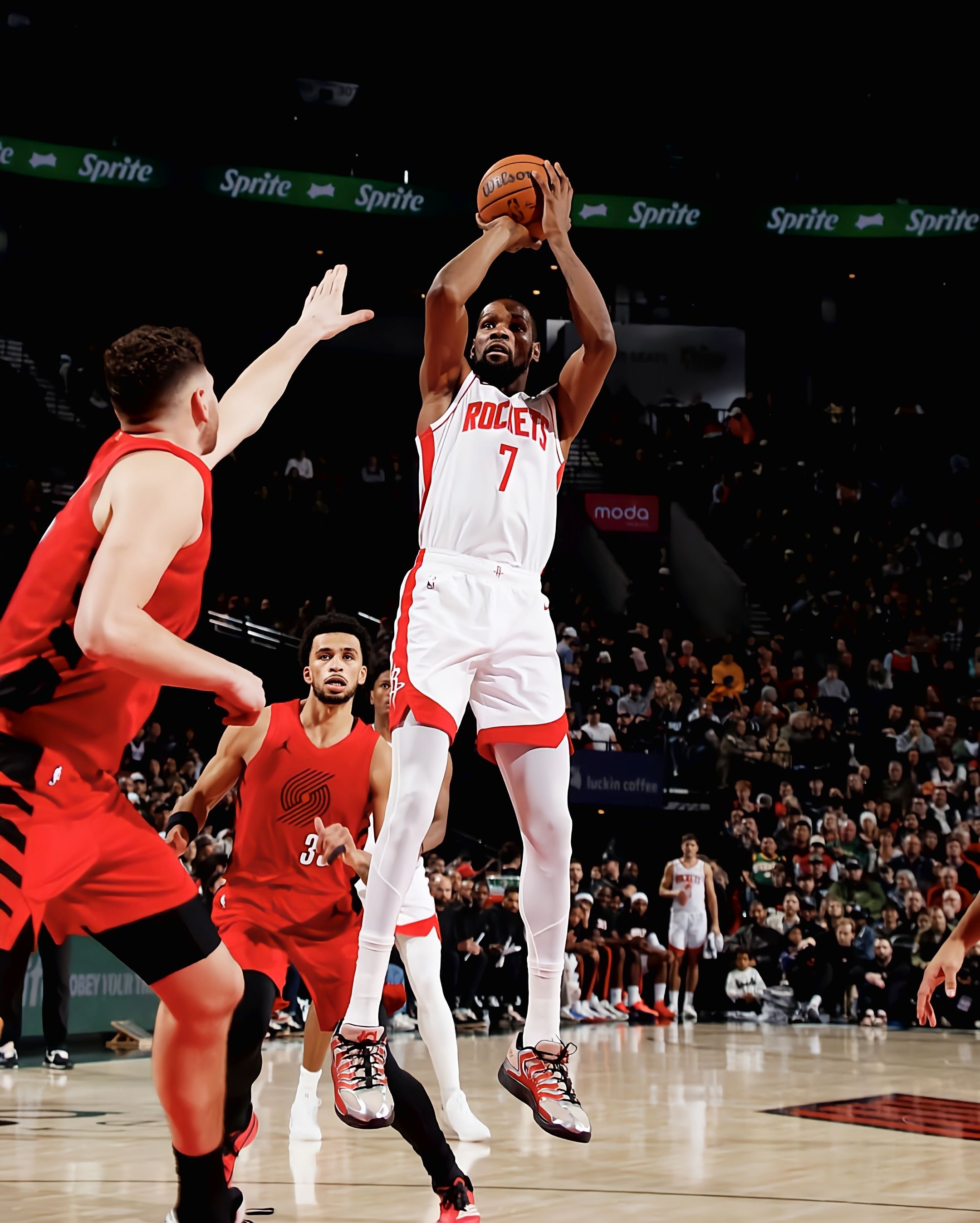 今天火箭105-111不敌开拓者的比赛里,杜兰特又一次上演了“空砍”戏码——39分钟20投11中轰下30分12篮板4助攻2盖帽,可球队还是没能拿下胜利。但这场比赛的意义,早已超越胜负本身:一记标志性的干拔三分,让他的生涯总得分定格在31422分,正式超越张伯伦的31419分,跻身NBA历史得分榜第七位。 而陪他完成这一里程碑的,是脚上这双Nike KD18 PE。米白拼接酒红的鞋面,搭配银色电...