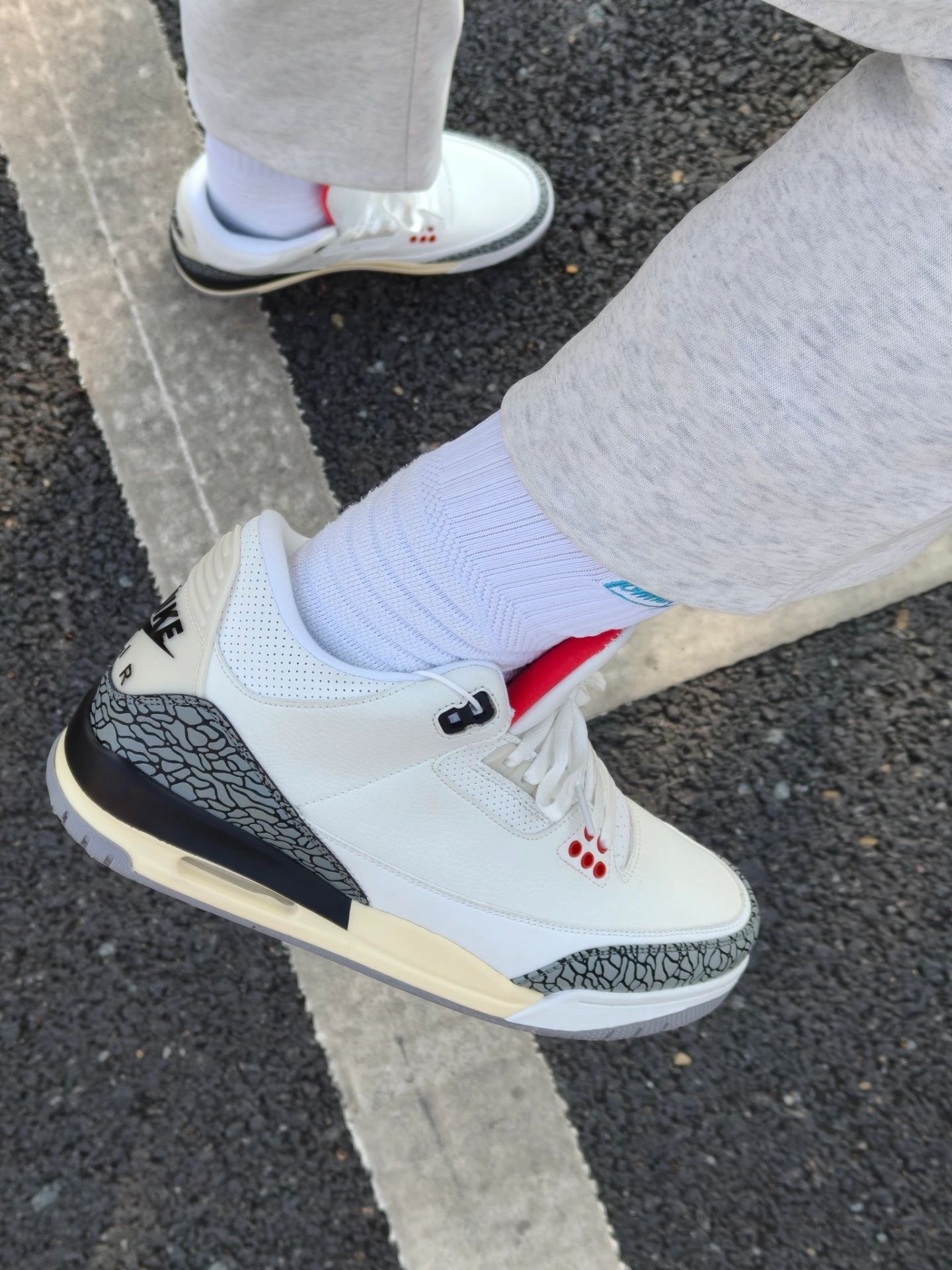 穿久容易氧化?【AJ3白水泥】|||👟 : Jordan Air Jordan 3 White Cement Reimagined 白水泥 🔍经典白水泥裂纹+做旧中底,还是标志性飞扣,纯纯情怀杀! 皮革鞋面摸着手感软乎乎的,也不容易沾灰,打理起来挺方便[强_blue] 内置气垫太友好了,日常通勤走几个小时也不会累脚,偶尔打打养生球也没啥问题👌 网上大部分朋友都说氧化严重,个人感觉只要平时注重打理...