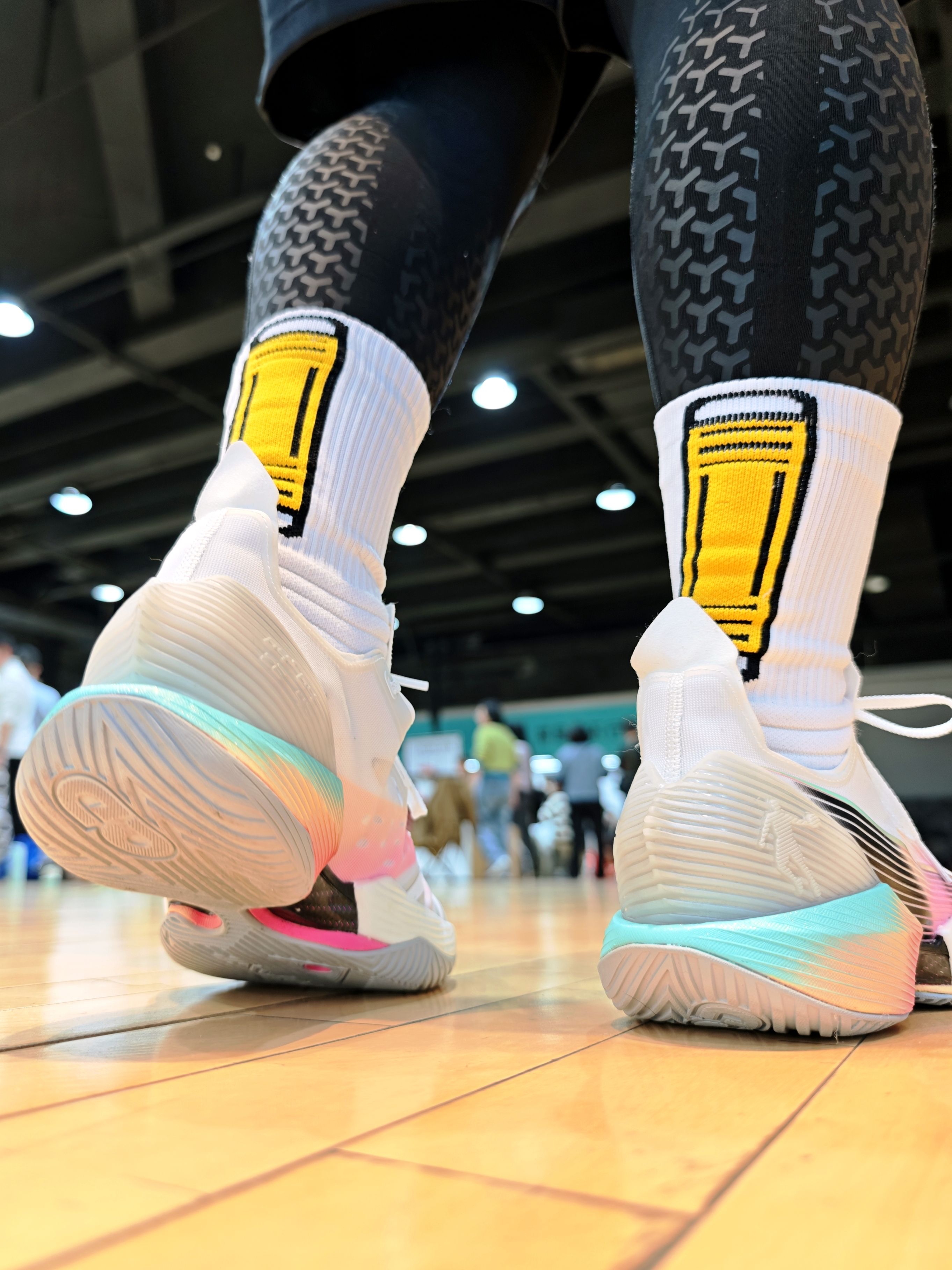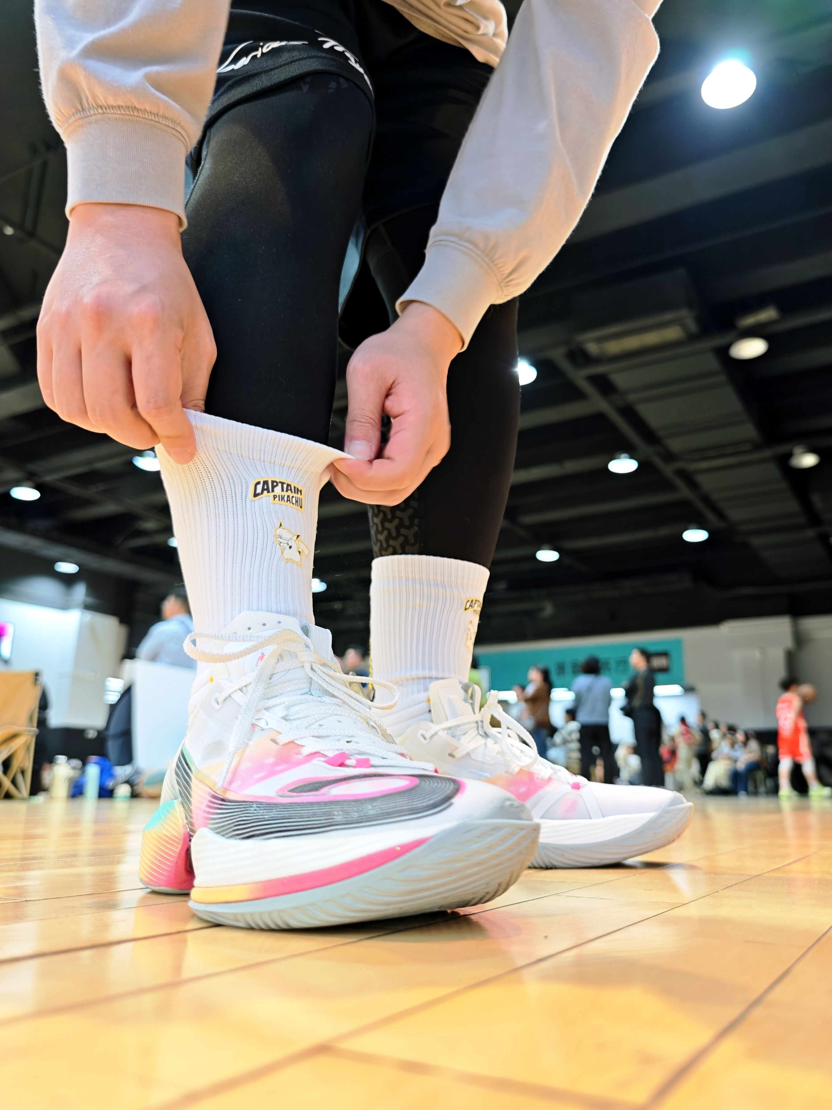 白黄黑的皮卡丘联名配色太戳审美了!袜筒上的船长皮卡丘贴标立体又萌,搭白黄实战鞋上场,野球局刚掏出来就被队友追着问链接✨。高弹袜口扯一下立马回弹,跑满全场都不往下滑,加压袜筒裹着小腿,变向时肌肉被稳稳兜住,脚底双层防滑纱像粘在鞋里,急停蹬地完全不打滑。 脚踝保护区的弹性编织把脚踝锁得稳稳的,大幅度变向也不怕崴脚;脚背透气网纱一直透着凉气,连打两节脚还是干爽的,无骨缝头磨了一下午也没硌脚💛。强烈推荐...