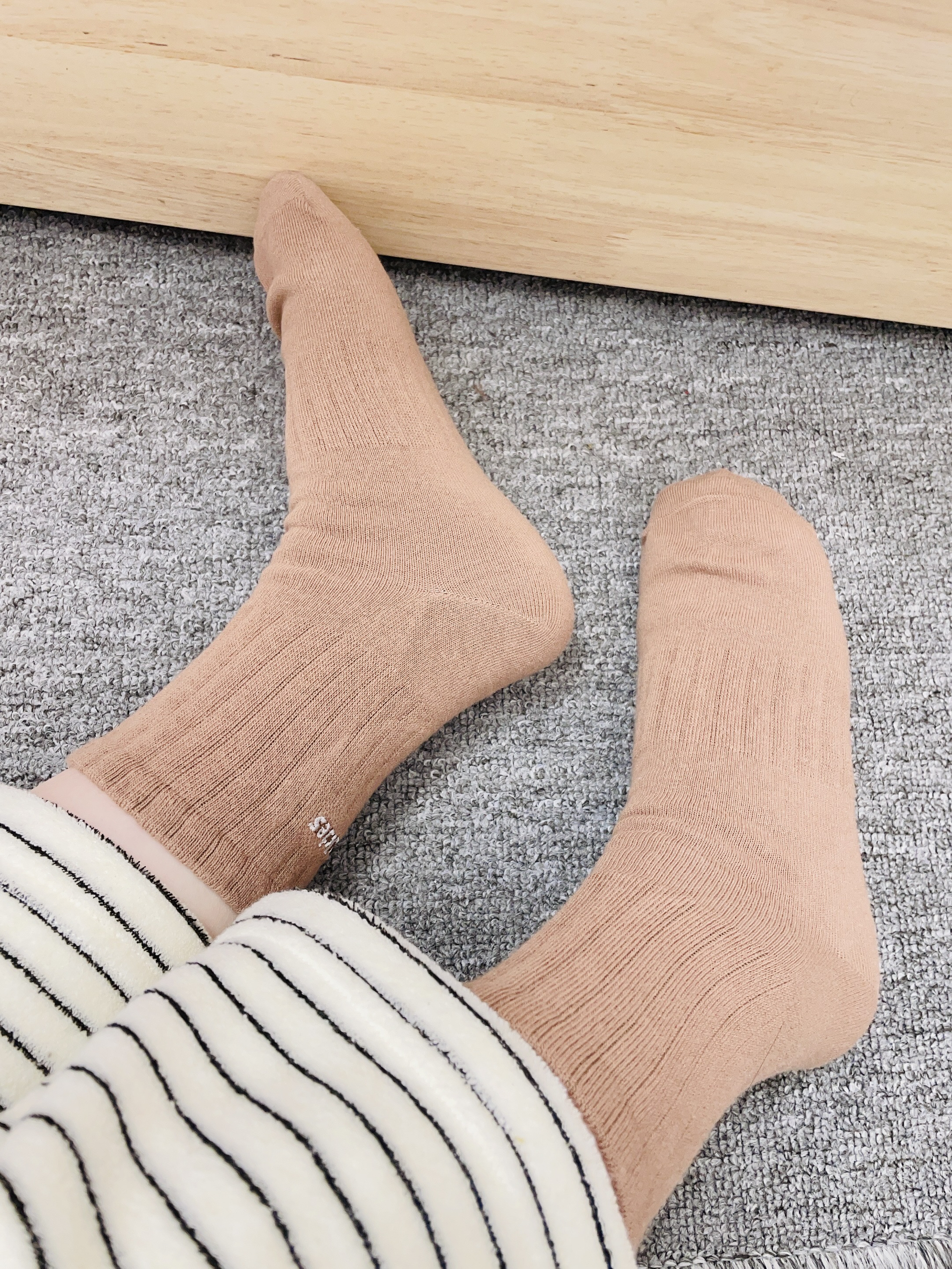 嘿嘿下个月就是一年一度的春节啦过年咯 我给自己安排了新的袜子 这款袜子配色好好看啊 我摸着面料柔软舒适 细节做的可以没有多余线头 我上脚穿了感觉蛮舒服的 也不会勒脚闷脚 新年穿着随便搭鞋子都可