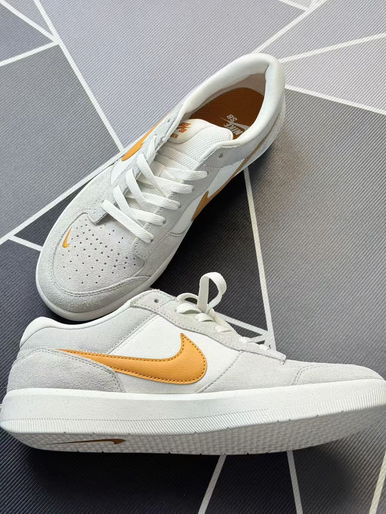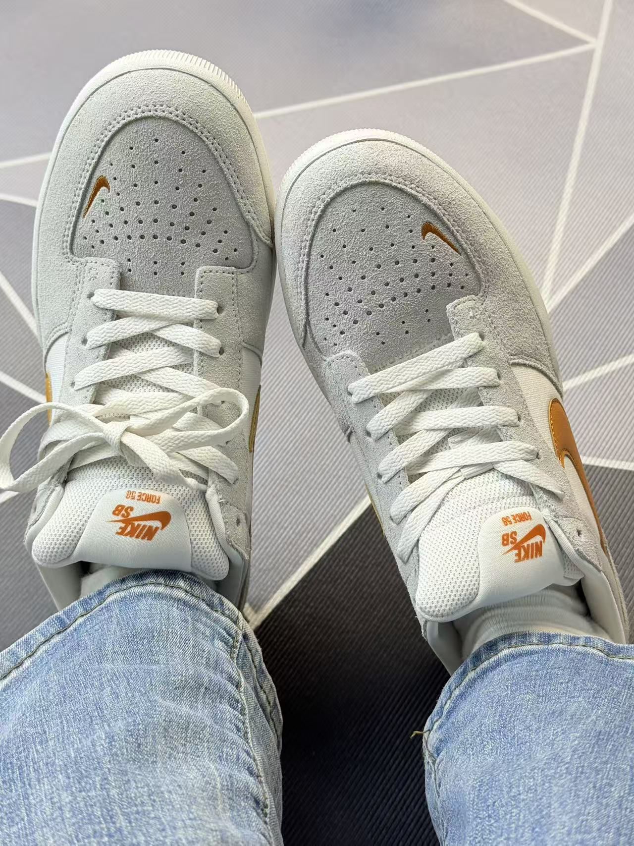 分享下这双Nike SB Force 58的上脚感受吧🧦 鞋面是翻毛和网布拼接的,摸着手感软乎乎的,透气度还不错,日常走路脚面不会闷得慌。鞋型偏低帮,搭配牛仔裤或者运动裤都挺顺的,浅灰配焦糖勾的配色也不挑穿搭,出门随便搭都不违和。 脚感方面,中底的缓震属于适中的程度,日常压马路足够用,走个万把步脚底板不会酸。鞋楦宽度对我这种正常脚型很友好,不挤脚也不晃。 缺点也得说下😮💨翻毛材质特别容易...