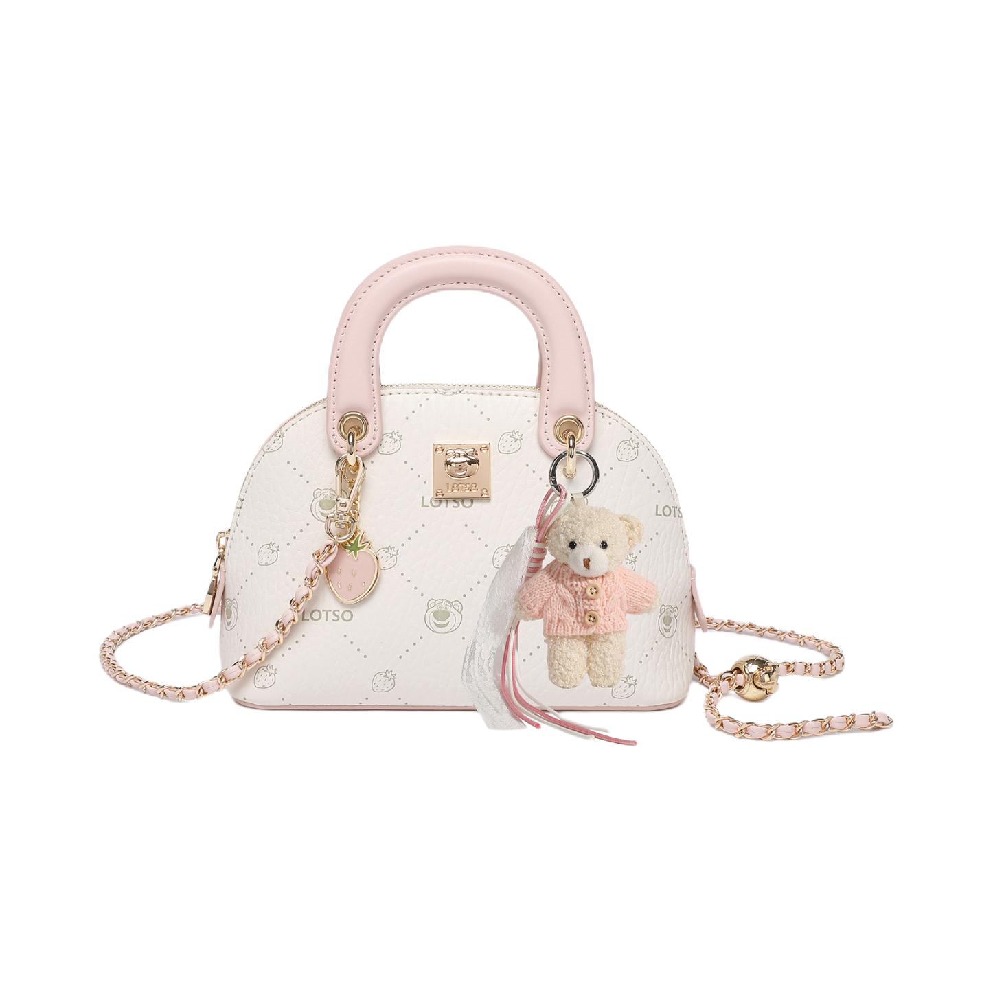 我挖到迪士尼草莓熊贝壳包啦! 奶白拼粉的配色超嫩,印满的草莓熊图案+草莓吊坠,细节直接拉满~ 手提斜挎都能搭,我早八塞个手机口红完全够装,软乎乎的皮质还不磨肩。 礼盒包装超精致,送闺蜜当礼物也超有面儿,甜妹选它准没错👍