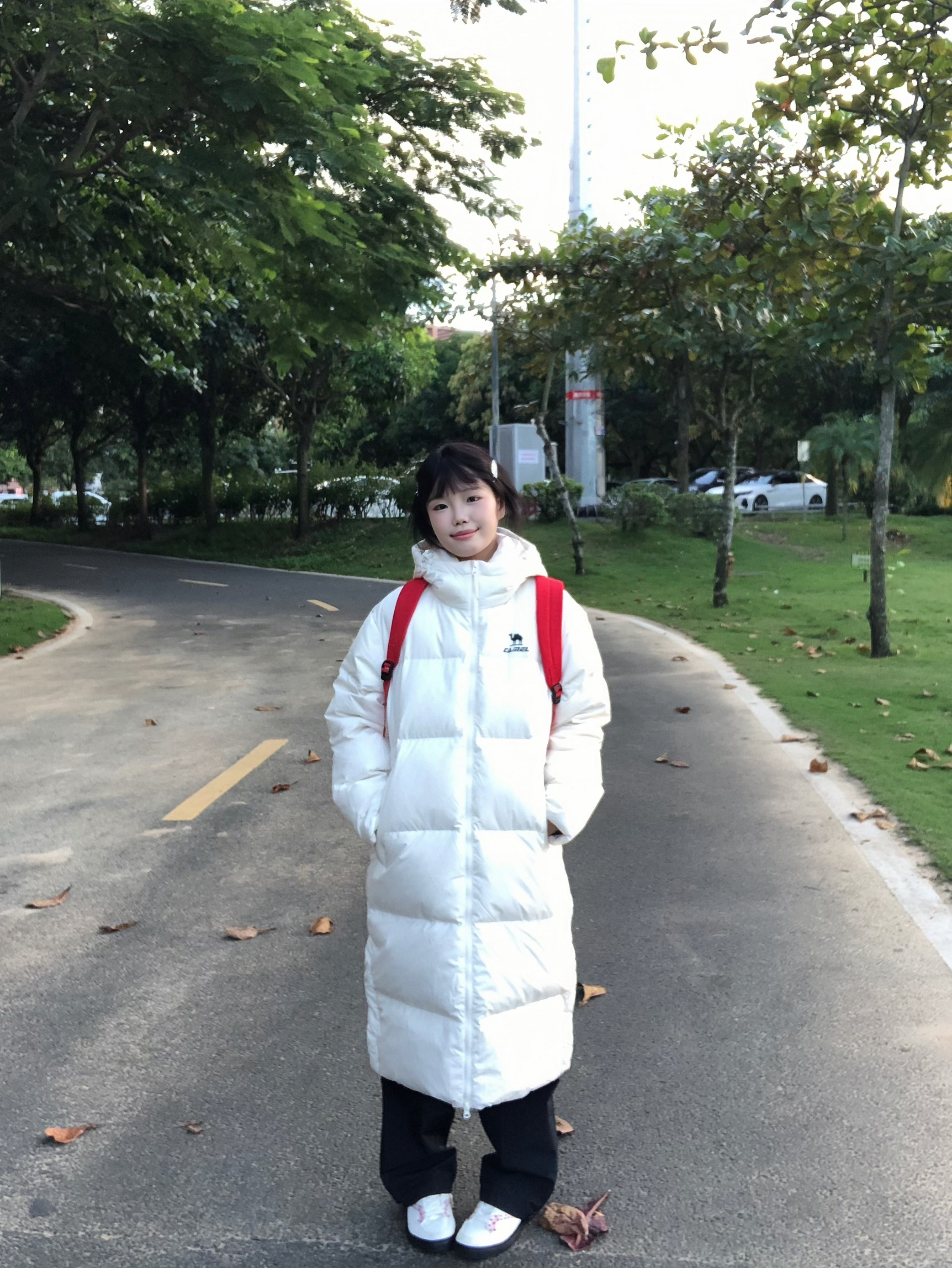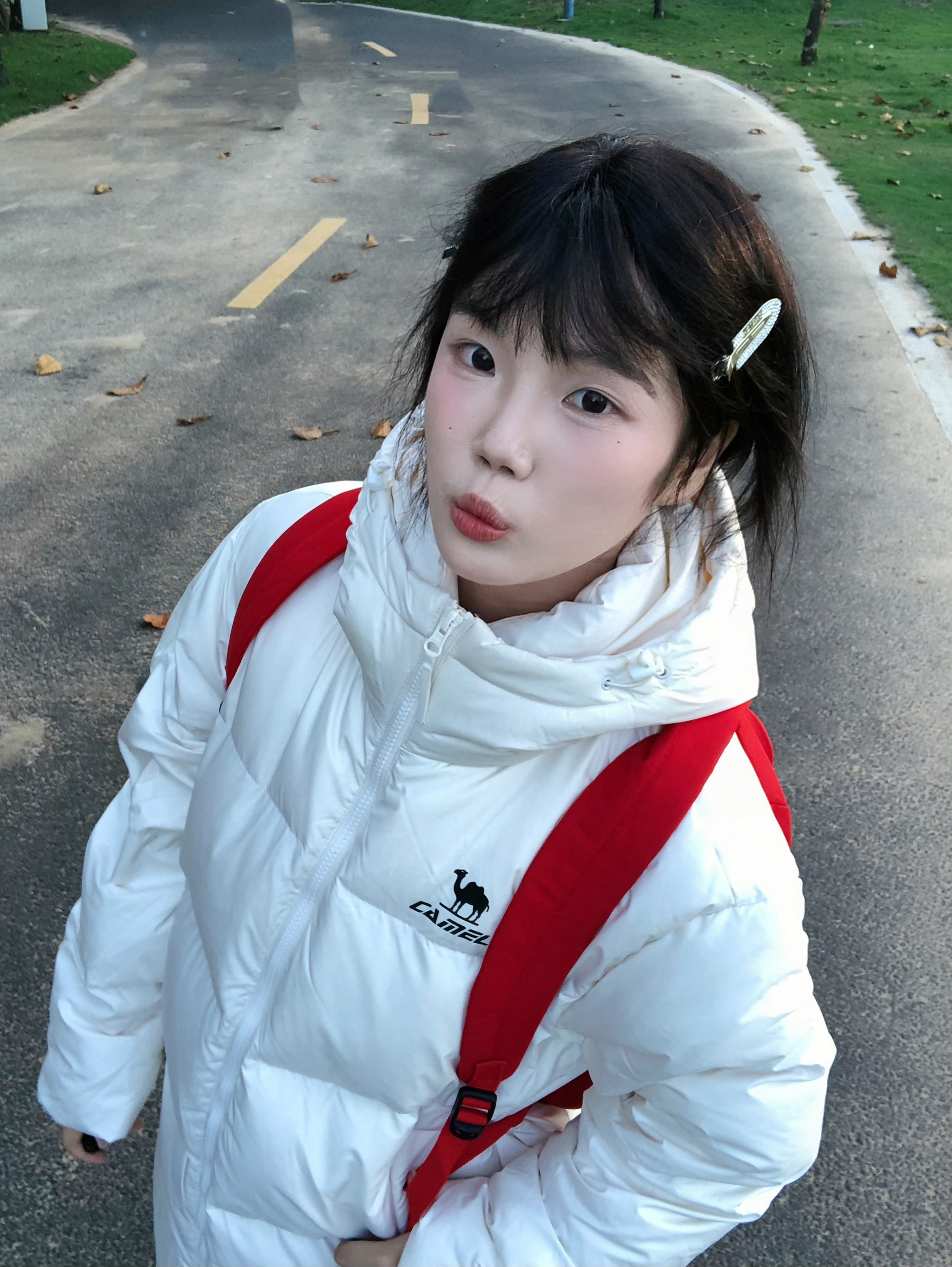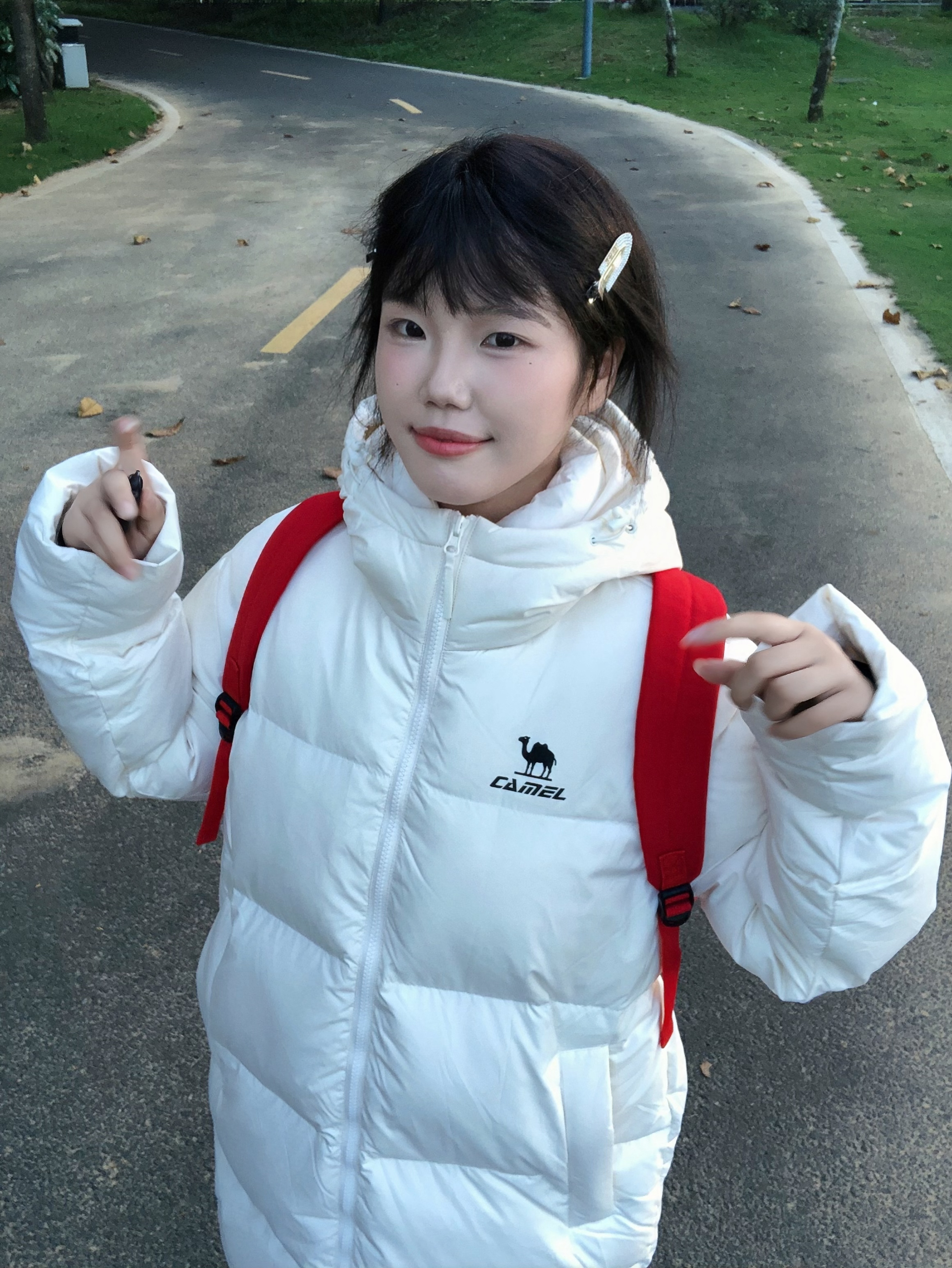 这件白色长款羽绒太可了 上身超级暖和 白色特别衬肤色 感觉雪景也非常出片 163/100M