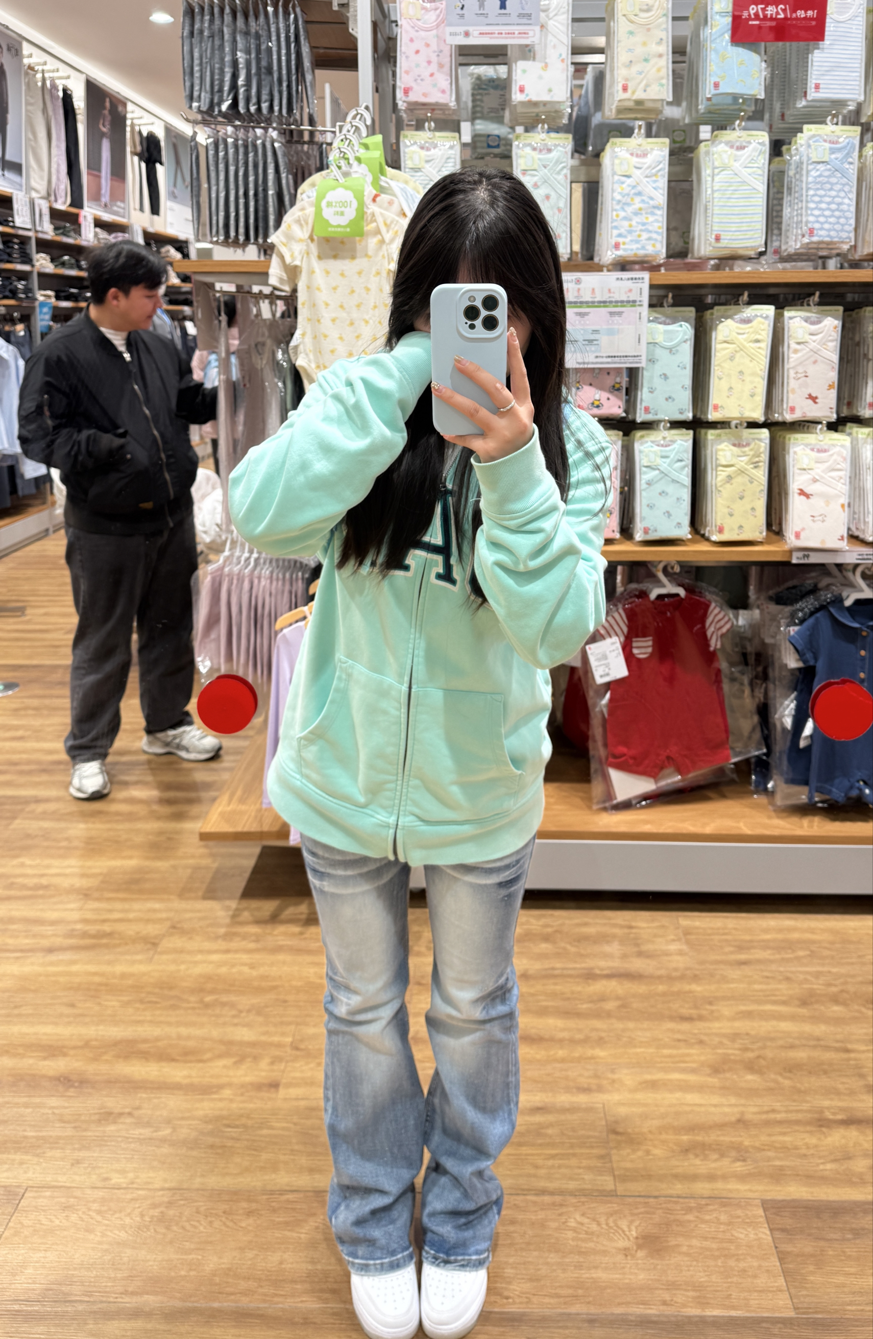真的很喜欢这件浅象牙白金标!! 我的这件是8码的感觉会偏宽松🎧 很喜欢这种慵懒松弛的感觉 里面穿的是白色t恤 金标➕金拉链真的很好看很喜欢 浅象牙白这个颜色也很百搭经典呢 搭配了迷彩工装裤 很时髦的感觉呀✨ 168 90斤 8码 宽松~