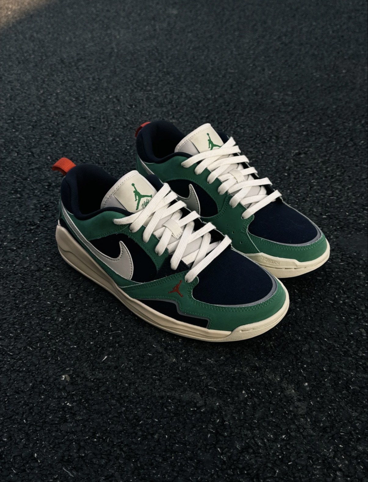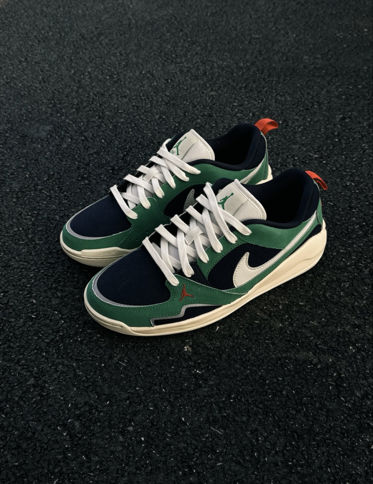 真的被这双Jordan CMFT Era的配色拿捏了! 复古红白绿搭配在一起意外和谐 尤其是侧面的绿色拼接 低调又有细节感 包裹性确实不错,鞋型也显脚瘦 但底子属于偏韧的,不属于“踩屎感”那派 走久了前掌会有点酸 建议先穿厚袜子磨合一下 搭配方面几乎没难度 我试过配牛仔直筒、运动束脚裤 甚至混搭西装外套也不违和 秋冬用来提亮一身暗色系穿搭刚刚好