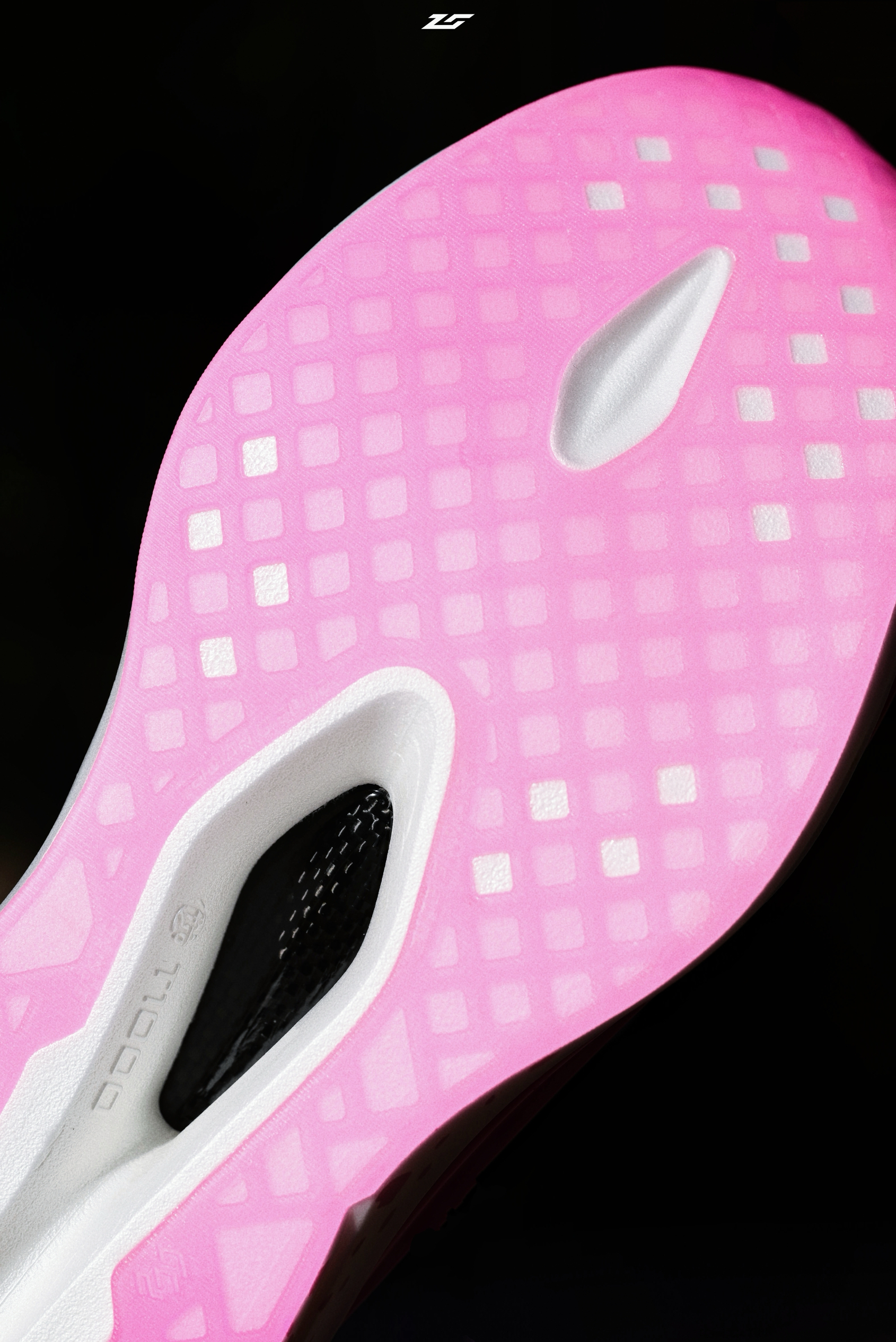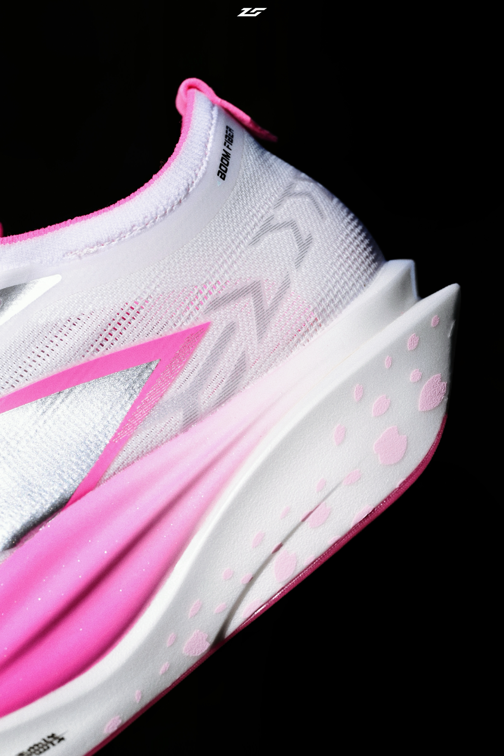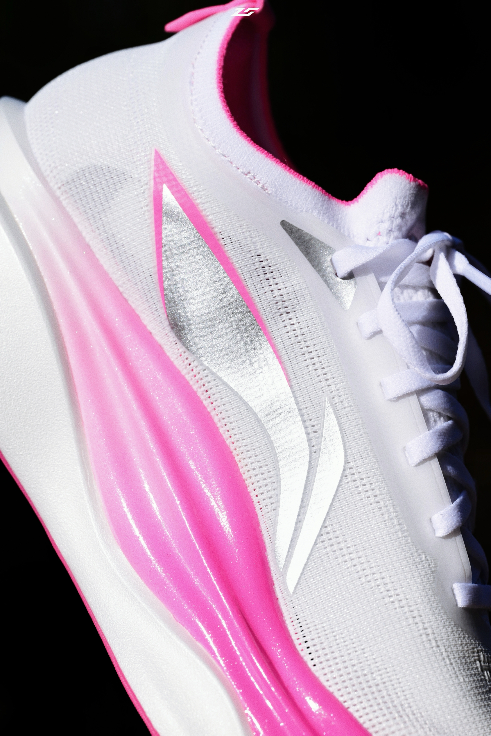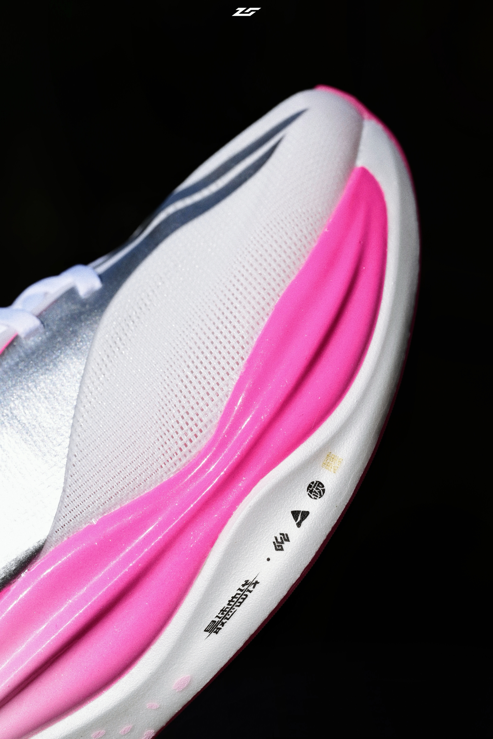 上年锡马没中签,5e还在家躺着,今年和婚期撞车,直接没报名,但是还是忍不住想入,粉色对我诱惑力还是太大了。 拍它属实是困难,这代李宁LOGO放置方式侧面看真的是败笔,只能从正侧方去看才顺眼点,再加上这个配色LOGO是银色的,太反光了,简单拍拍吧。 试了试脚感,超䨻胶囊目前当之无愧国产T0吧,简直是脚踩大皮球,弹弹乐,这份体验,想必下一年其他配色四开的时候我会多入几双的。