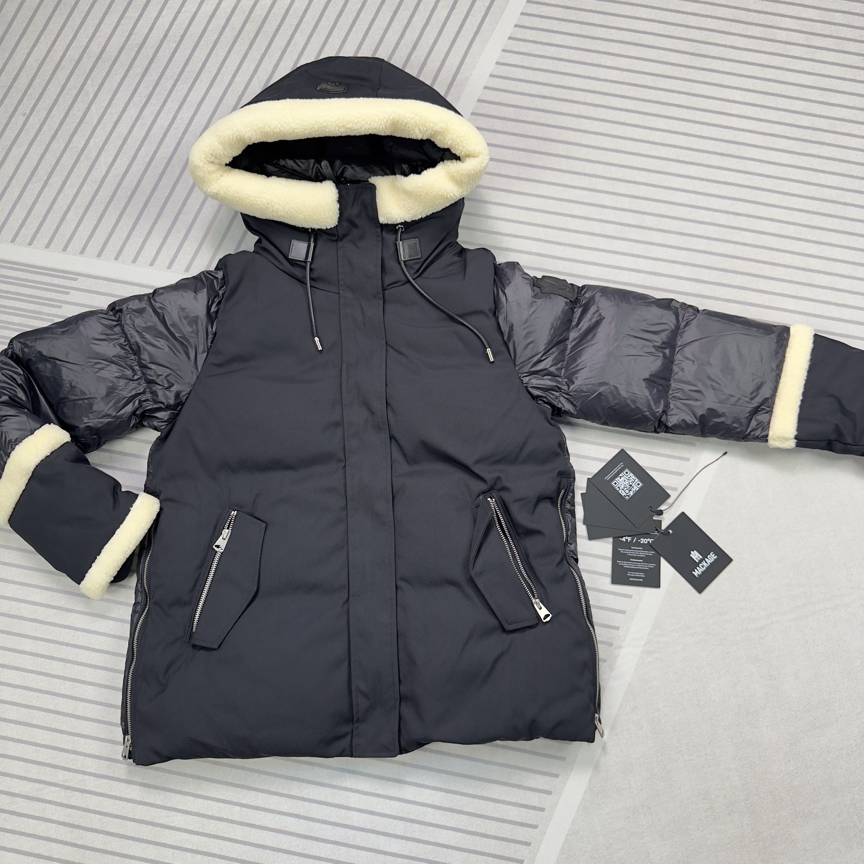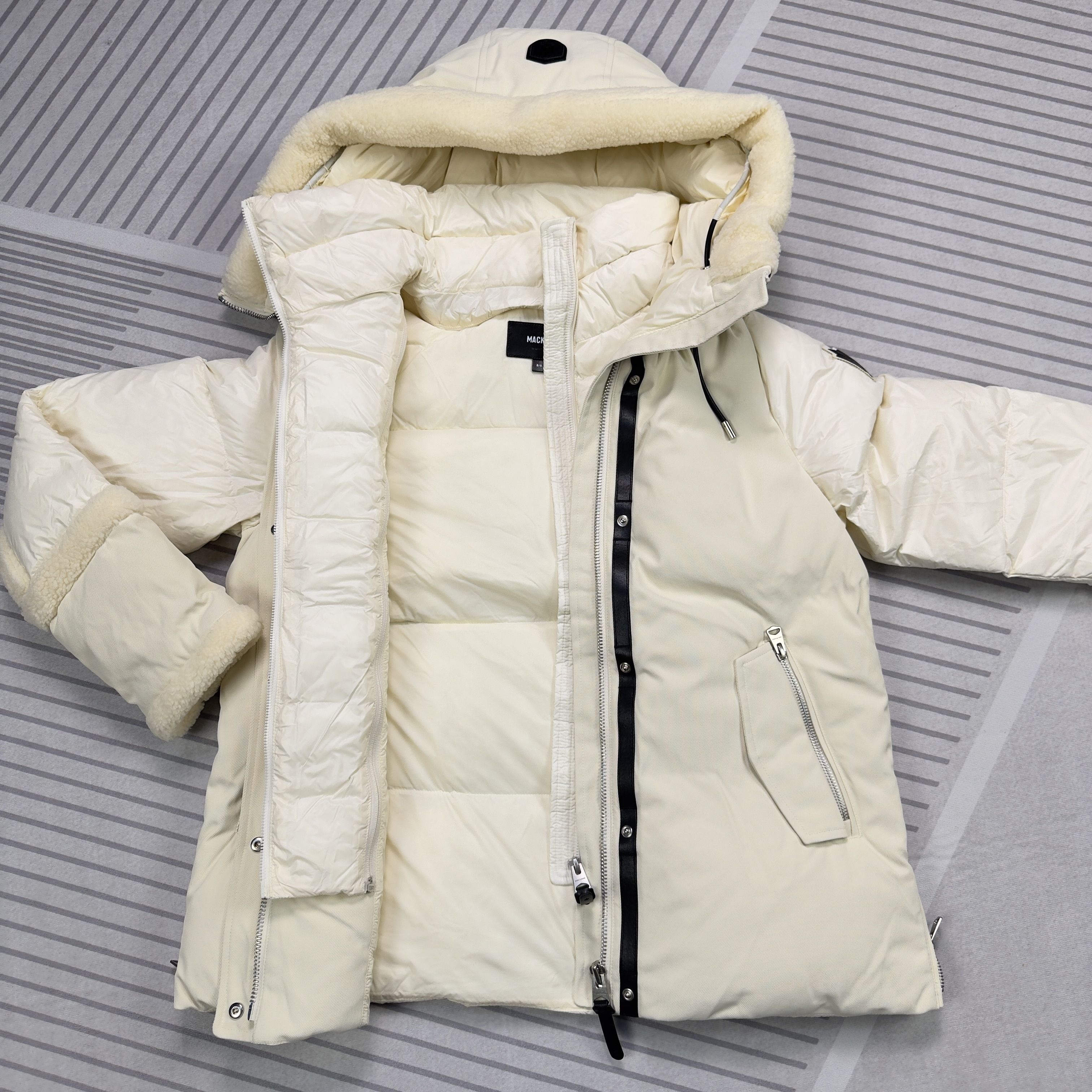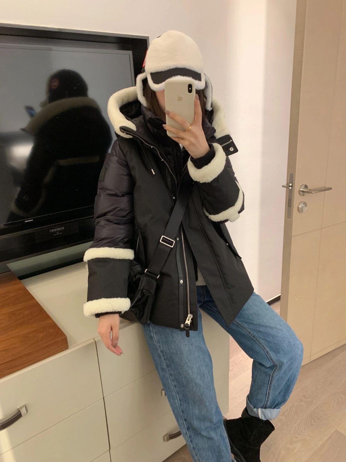 直到我在常逛的识货APP,看见了它。一件米白色的短款外套。第一眼吸引我的,是它身上那种奇妙的“拼接”感。主体是带着独特斜纹肌理的面料,挺括利落。而在连帽的边缘、袖口,却拼接了蓬松柔软的米白色羊羔毛。两种质感——羽绒的帅气与毛绒的温柔——被清晰的缝线区隔,又和谐地融为一体。这是Mackage的新款,还有黑色。我看向另一件,纯黑外壳镶嵌着雪白毛边,冷酷中透着一股暖意。我毫不犹豫地拍下了。