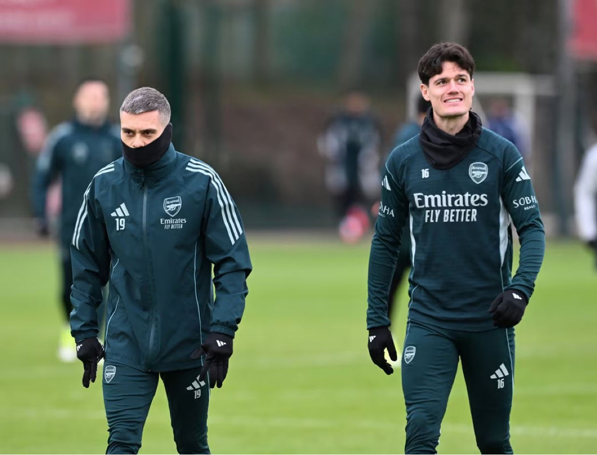 在阿森纳的训练场上,球员们身着深绿色训练服,正为即将到来的关键战役全力以赴。 • 中场大脑:厄德高与若日尼奥两位中场核心并肩交流,他们的经验和技术是球队运转的关键。 • 边路尖刀:萨卡在对抗训练中展现了惊人的爆发力,他的每一次突破都充满了威胁。 • 新援融入:新援赖斯也已经完全融入球队,他的存在让阿森纳的中场更加稳固。 • 后防新星:年轻的中卫基维奥尔和经验丰富的加布里埃尔则在交流中不断磨...