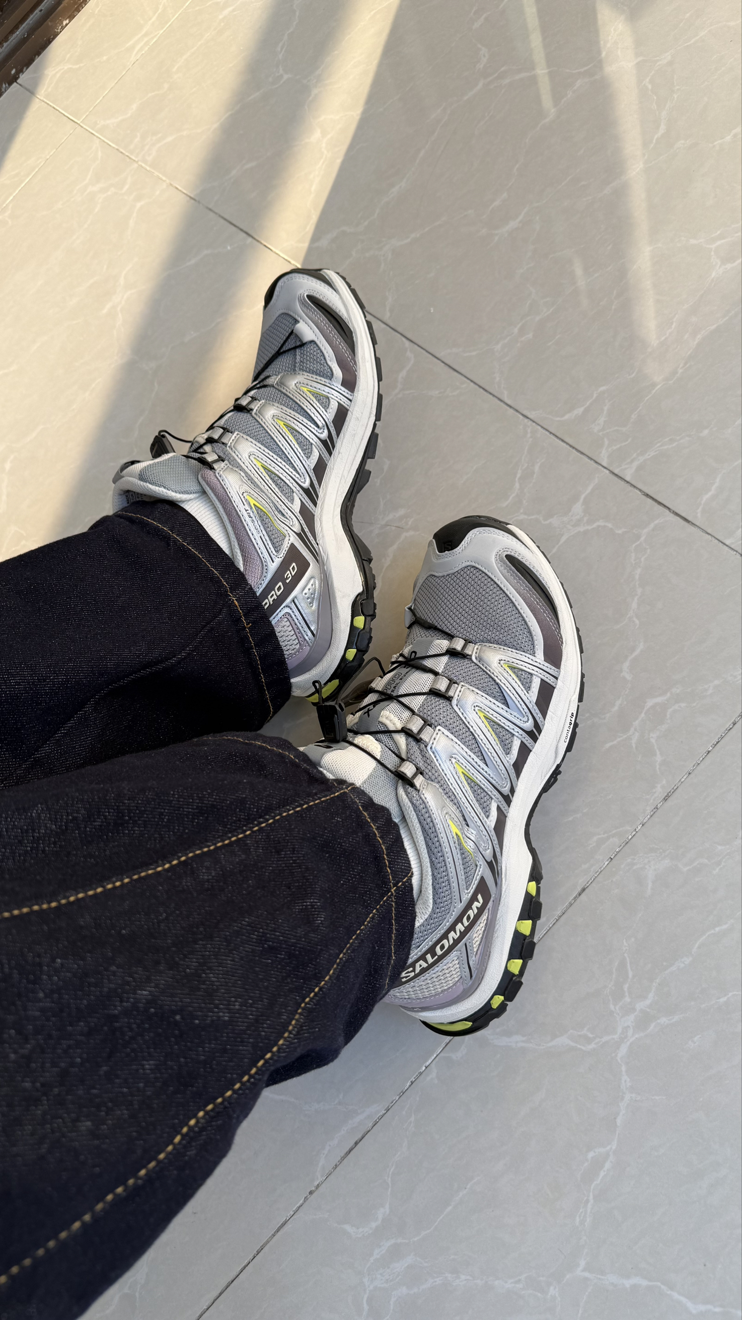 这双“宝藏鞋”XA PRO 3D,尤其沙场灰配色,质感高级又耐脏,日常穿搭也超帅。 它堪称“全能战士”。最牛的是脚下功夫:鞋底的3D高级稳定底盘,走碎石烂路时稳稳“锁”住你的脚踝,防侧翻一流;Contagrip大底像壁虎脚掌,湿滑石面和泥地都抓得超牢。还有Quicklace快速鞋带,一拉一按就收紧,多余鞋带还能藏进鞋舌口袋,巨方便。我平时穿40.5,这双买的41穿上有点大! 当然,没鞋是完美的...