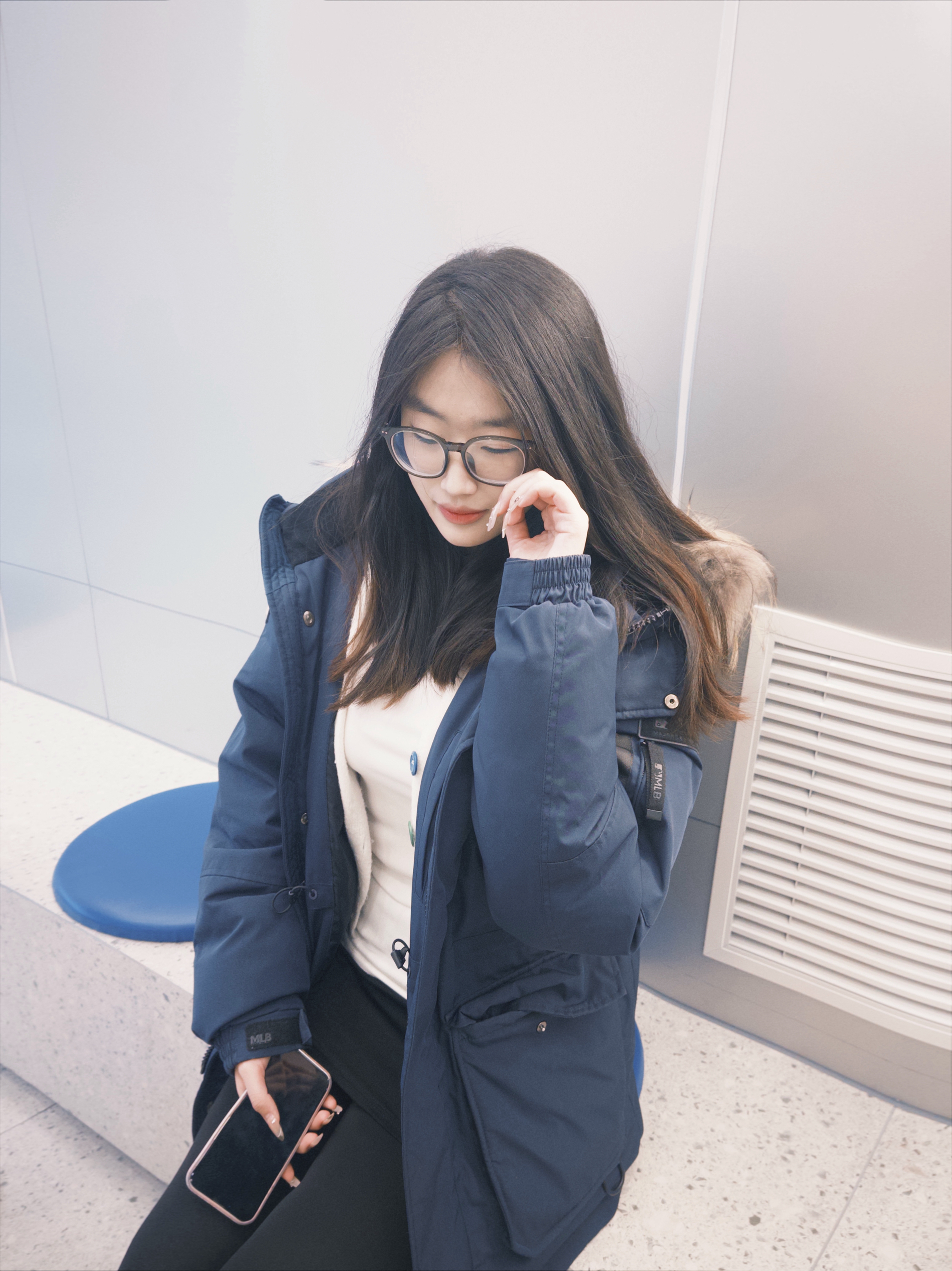 藏青派克棉服也太适合冬日了吧 毛领软乎乎的超有氛围感 内搭简单白T就很有层次 搭配黑裤子+雪地靴慵懒感直接拉满 眼镜一戴韩系学妹那味儿不就来了 随便坐拍都出片的冬日穿搭 藏青色真的巨显白谁穿谁知道 棉服保暖又显瘦完全不臃肿 冬日出门这么穿舒服又好看 随手拍都是韩系画报既视感