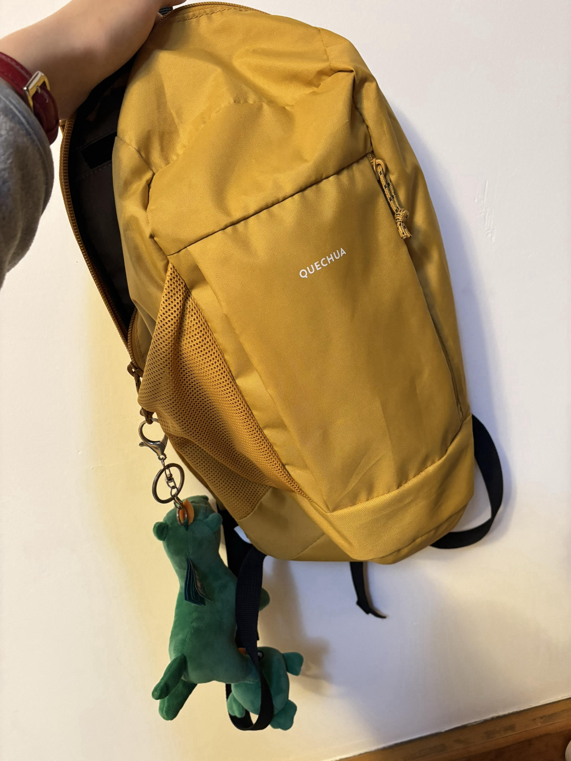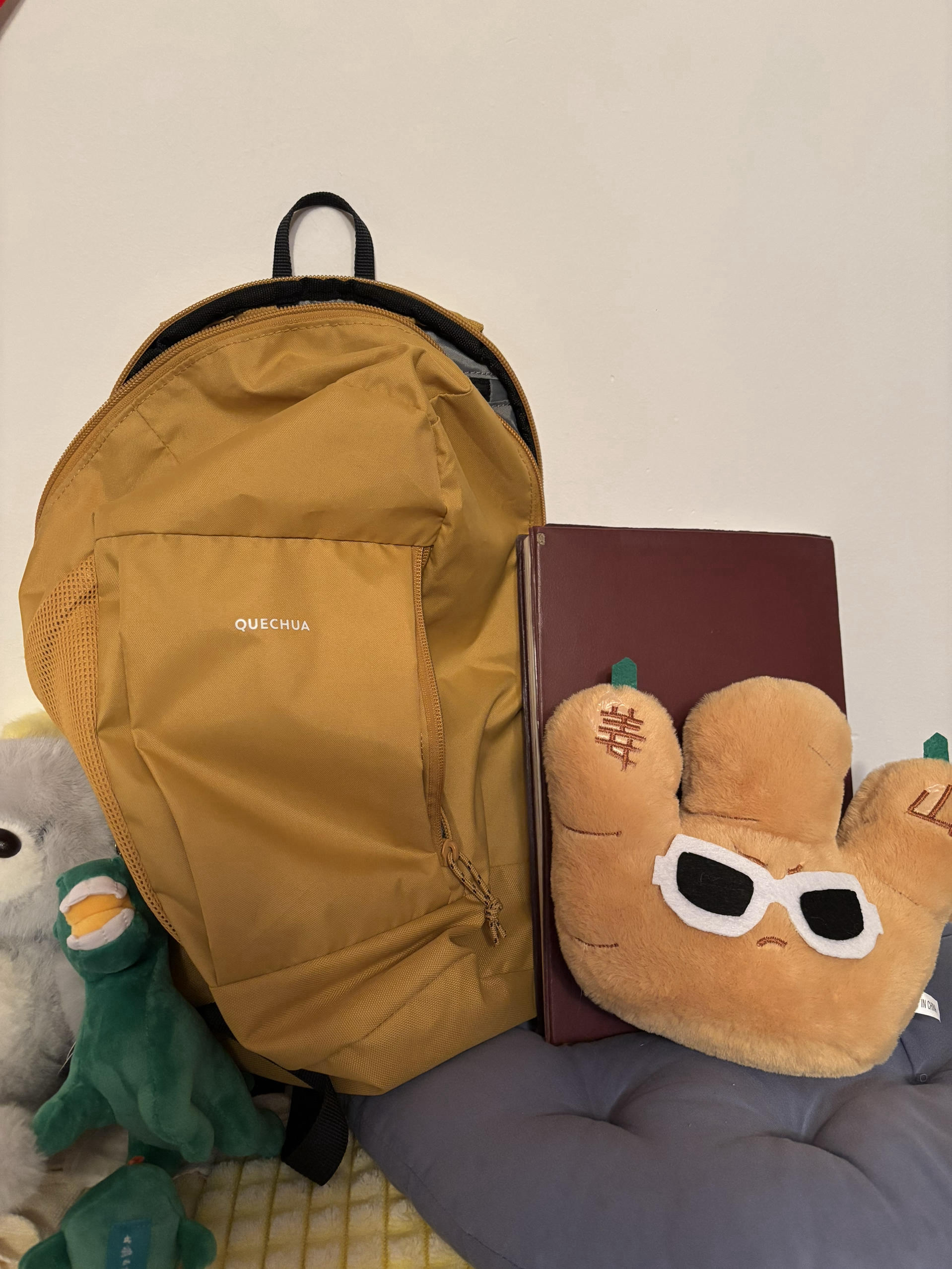 👉 不到百元价位,千元体验 迪卡侬Quechua这款黄色背包,是我今年挖到的最大宝藏! ✅ 容量超大,通勤装电脑、出游装外套都没问题 ✅ 自重很轻,背一天肩膀也不酸 ✅ 面料耐造还防水,日常泼溅完全不怕 ✅ 芥末黄配色超显活力,背它出门回头率拉满,搭配绿色小马玩偶真的超出片