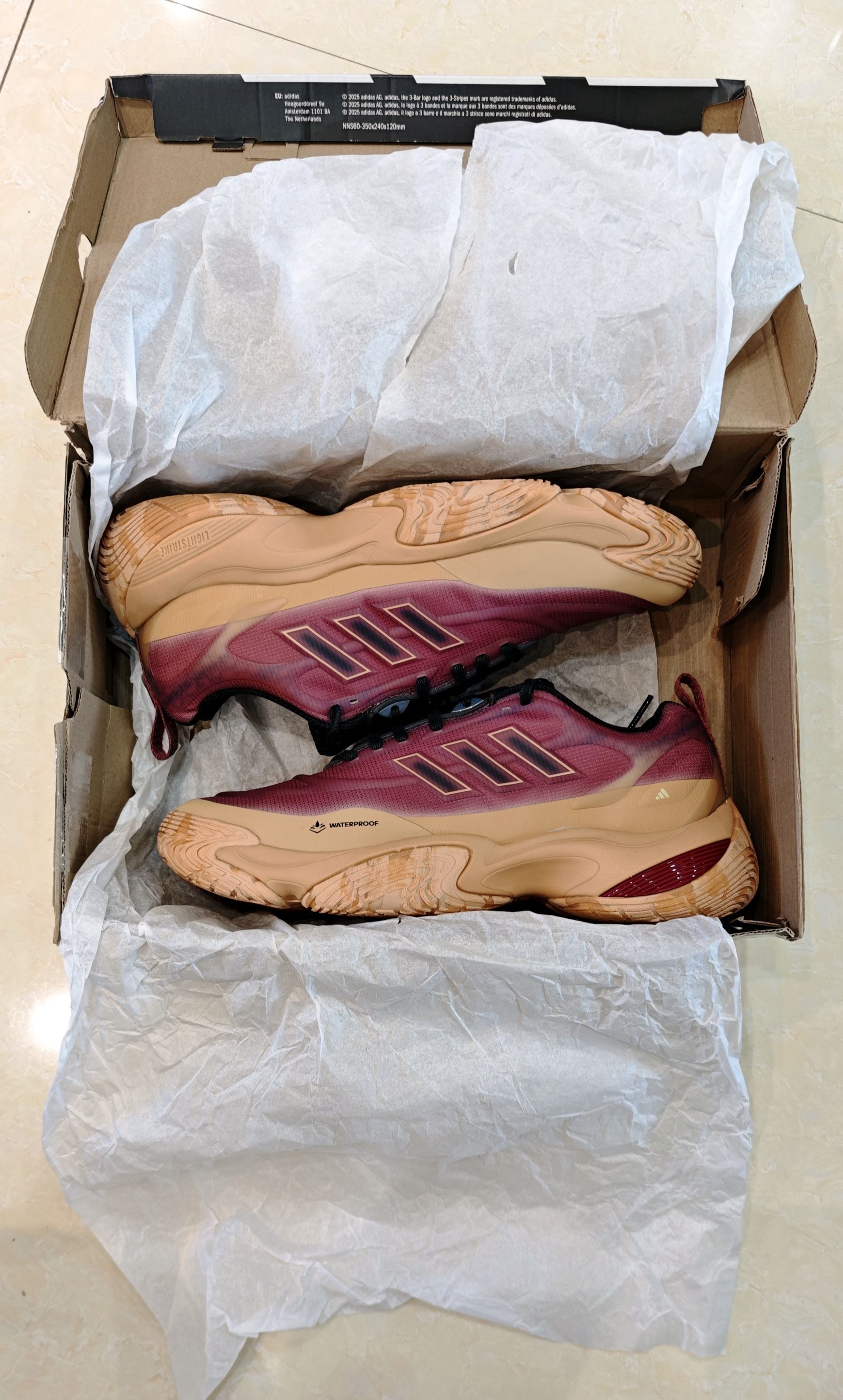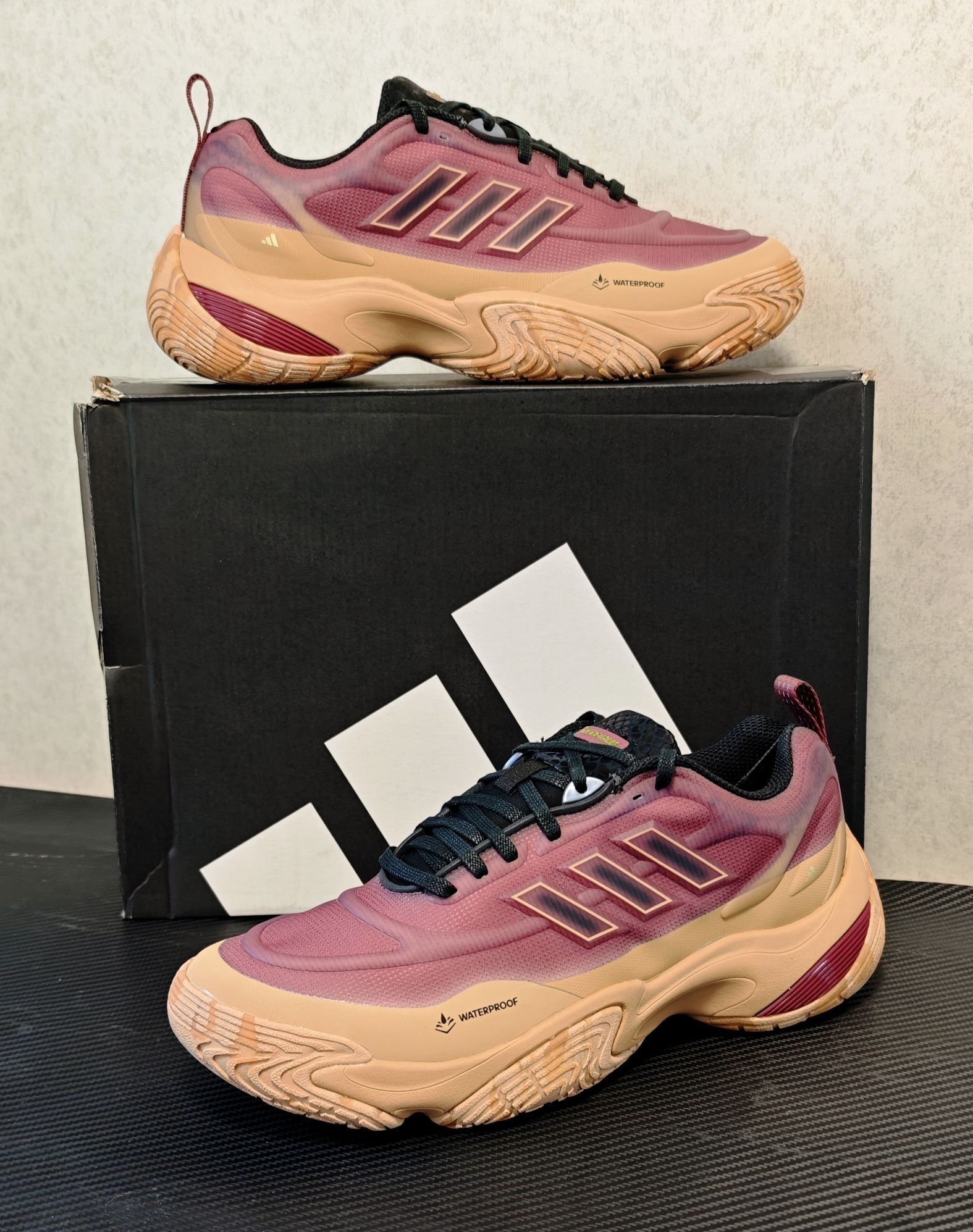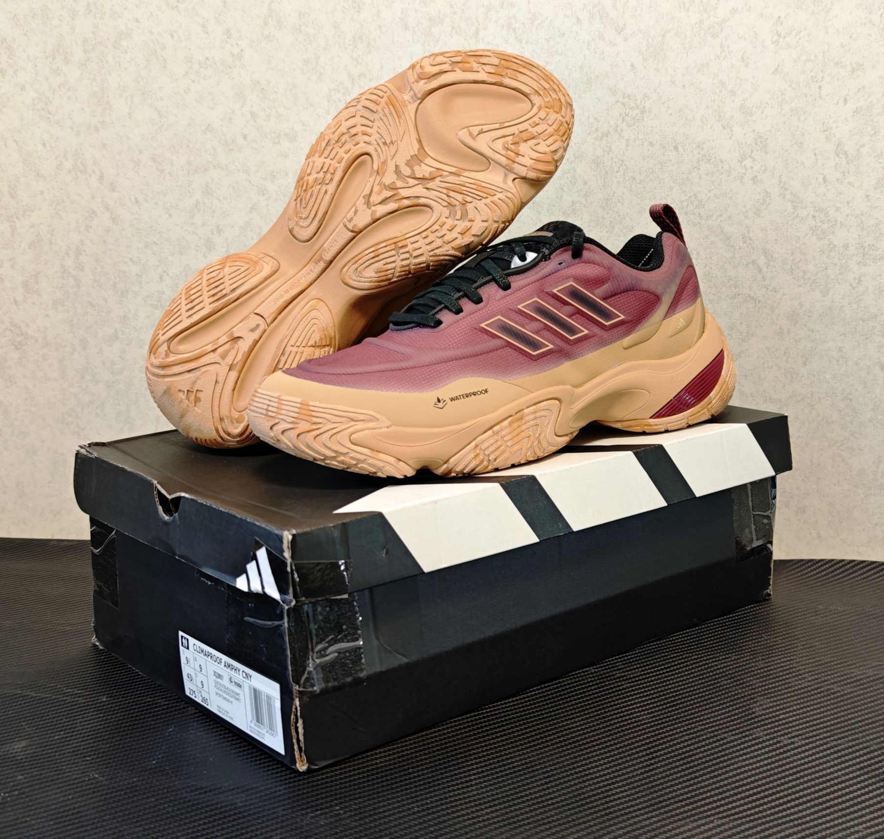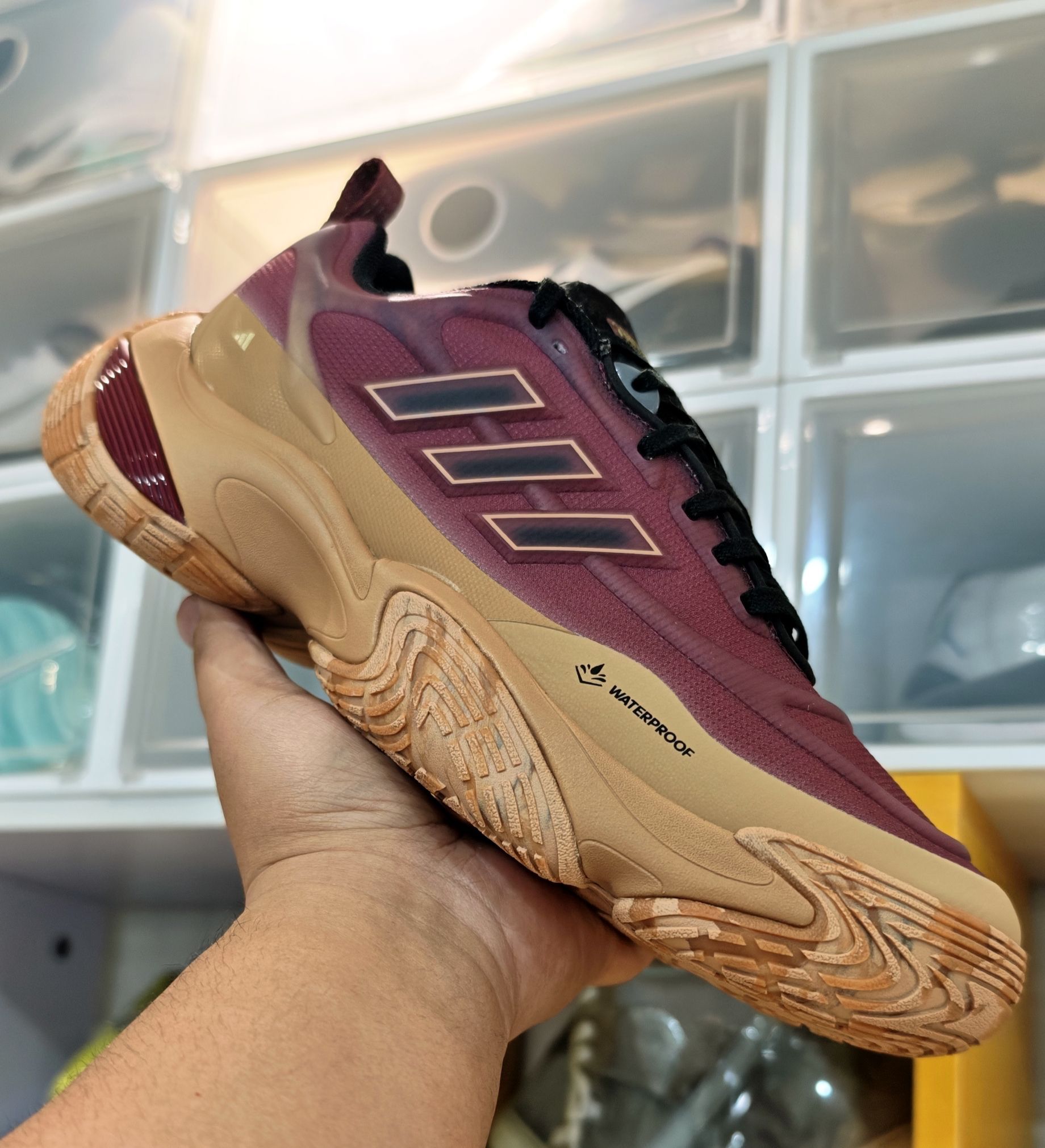 这双Climaproof Amohy就以淡雅深红主色调搭配亮金属铁灰细节点亮了整个空间。深红酒红般的鞋面,如同陈年葡萄酒的色泽,既不张扬又极具质感。黑色条纹与细节勾勒出鞋身线条,而亮金属铁灰的中底与后跟点缀,则如精巧的金属饰件,为整体增添未来感的反差。