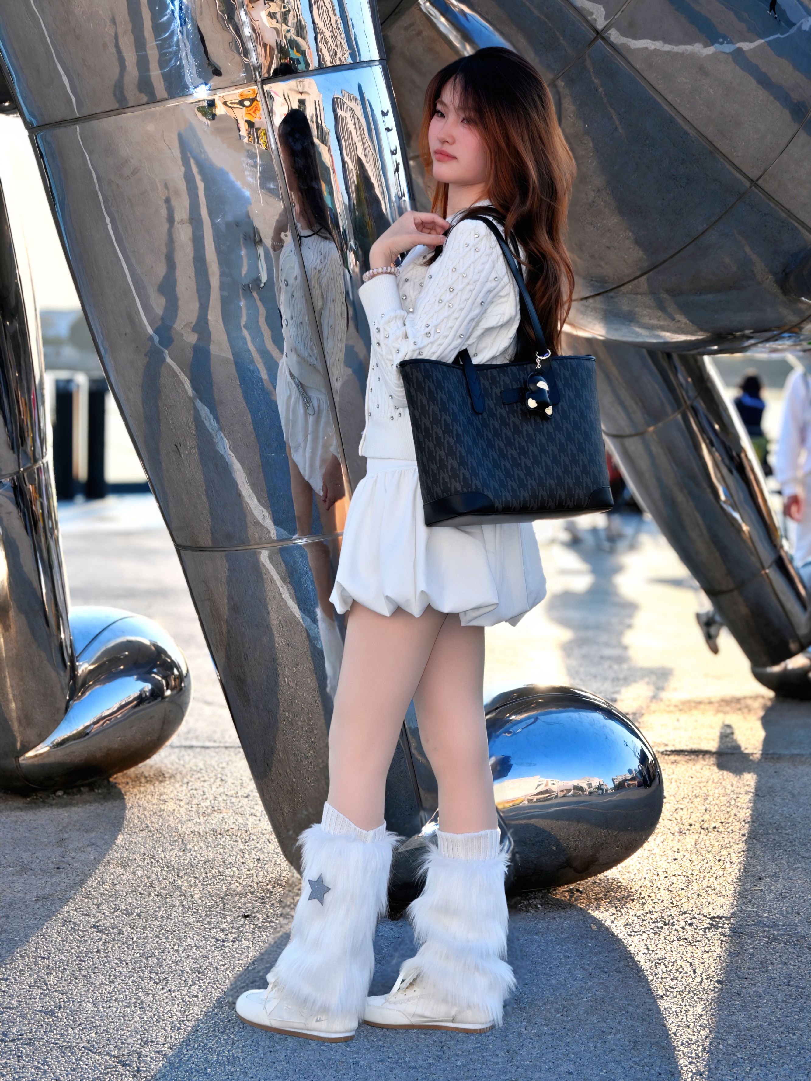 是谁说白色显胖的?明明是纯欲天花板好吗!针织衫的小细节和云朵裙的蓬松感,走在江边回头率爆表👗 对了,这个大包超能装,安全感直接拉满!