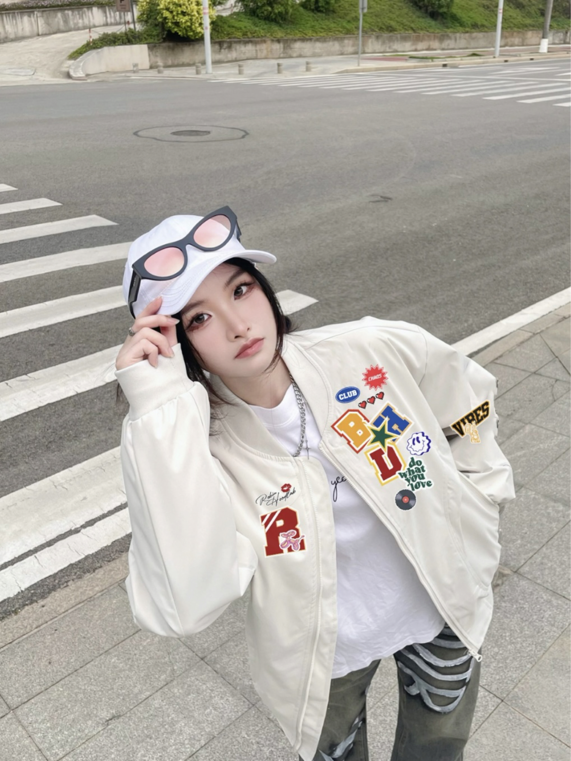 很好看的一件夹克外套 浅色系超级百搭 版型也好 这件是加棉的 厚厚的不会冷~
