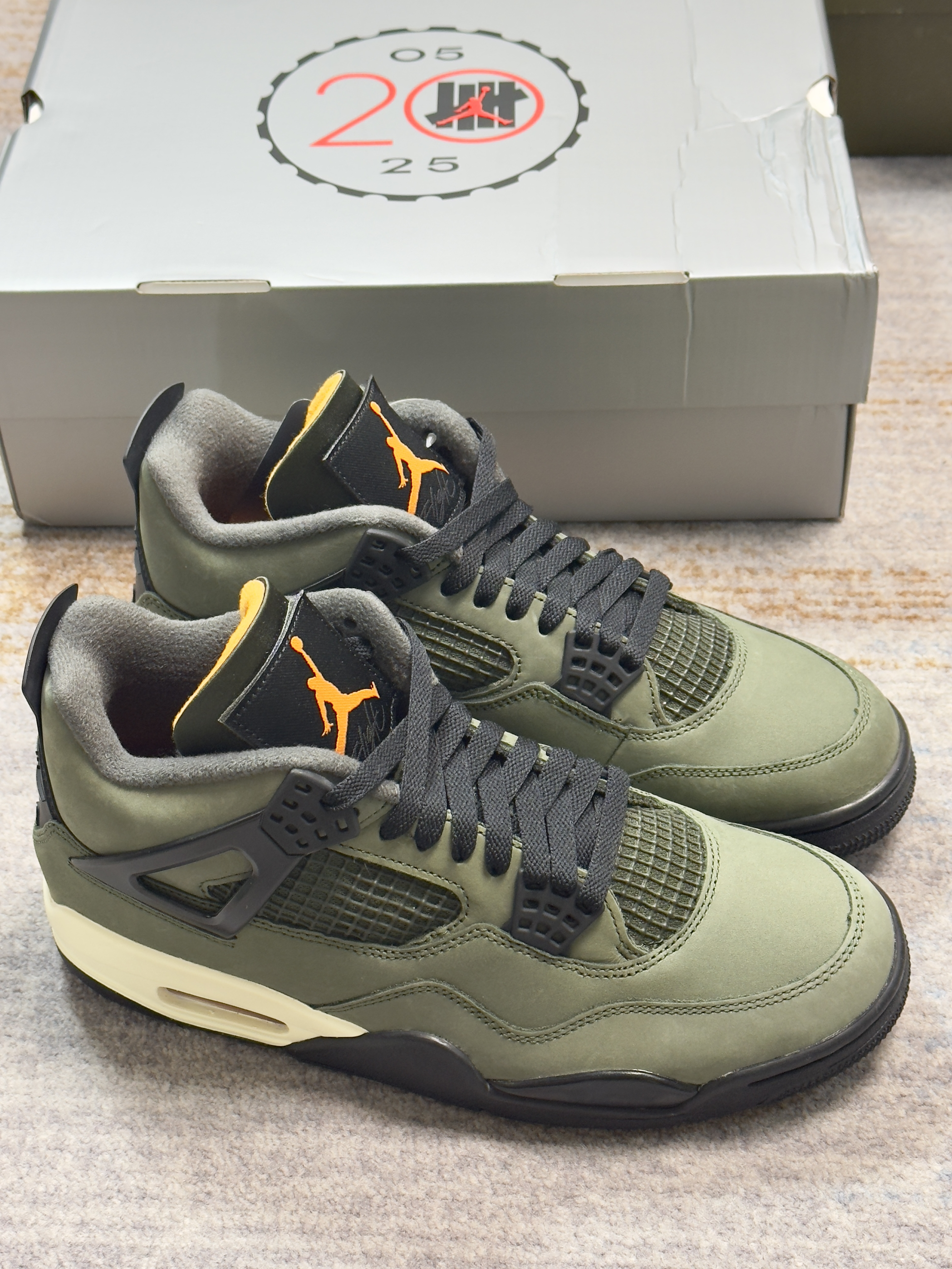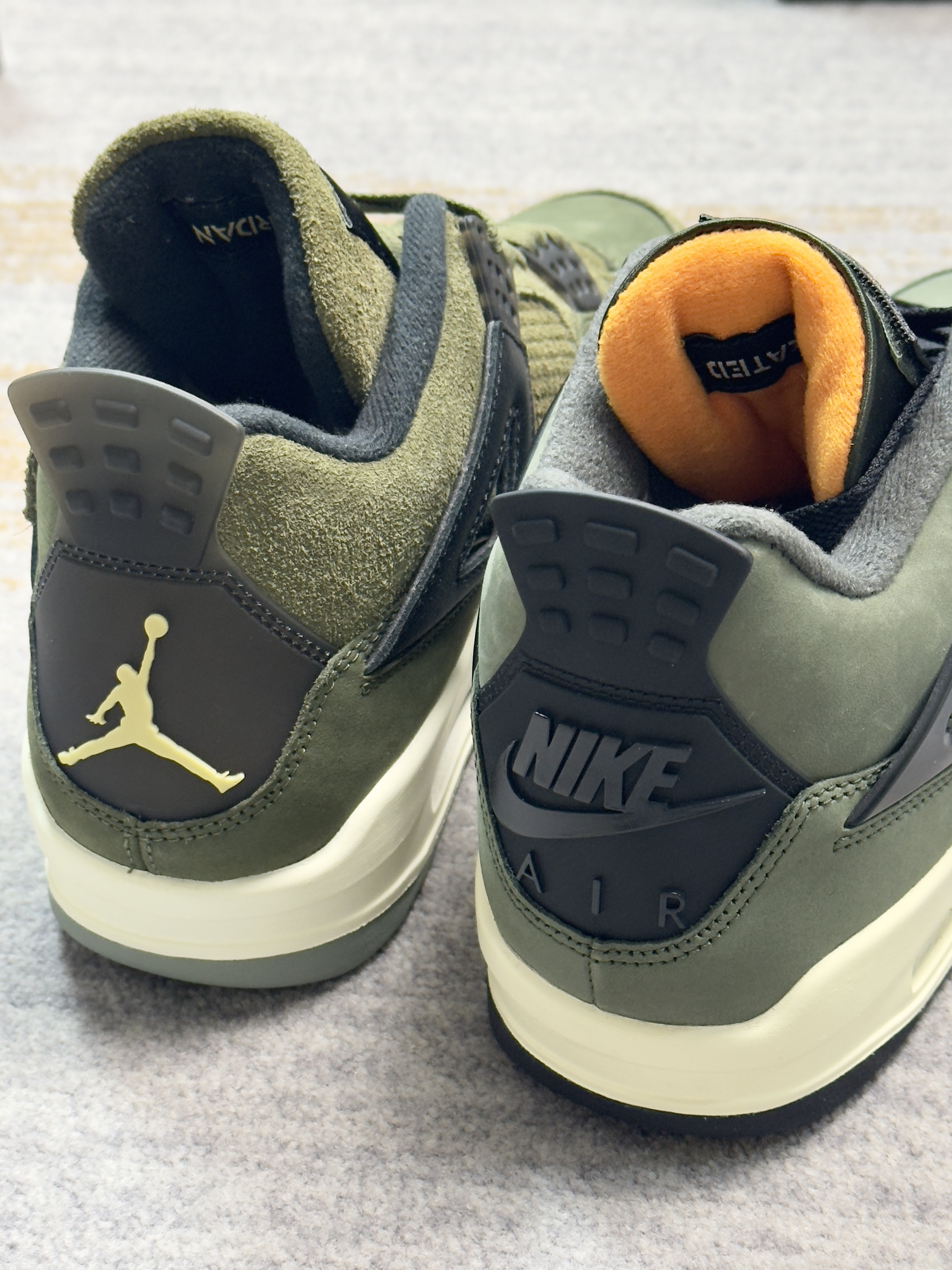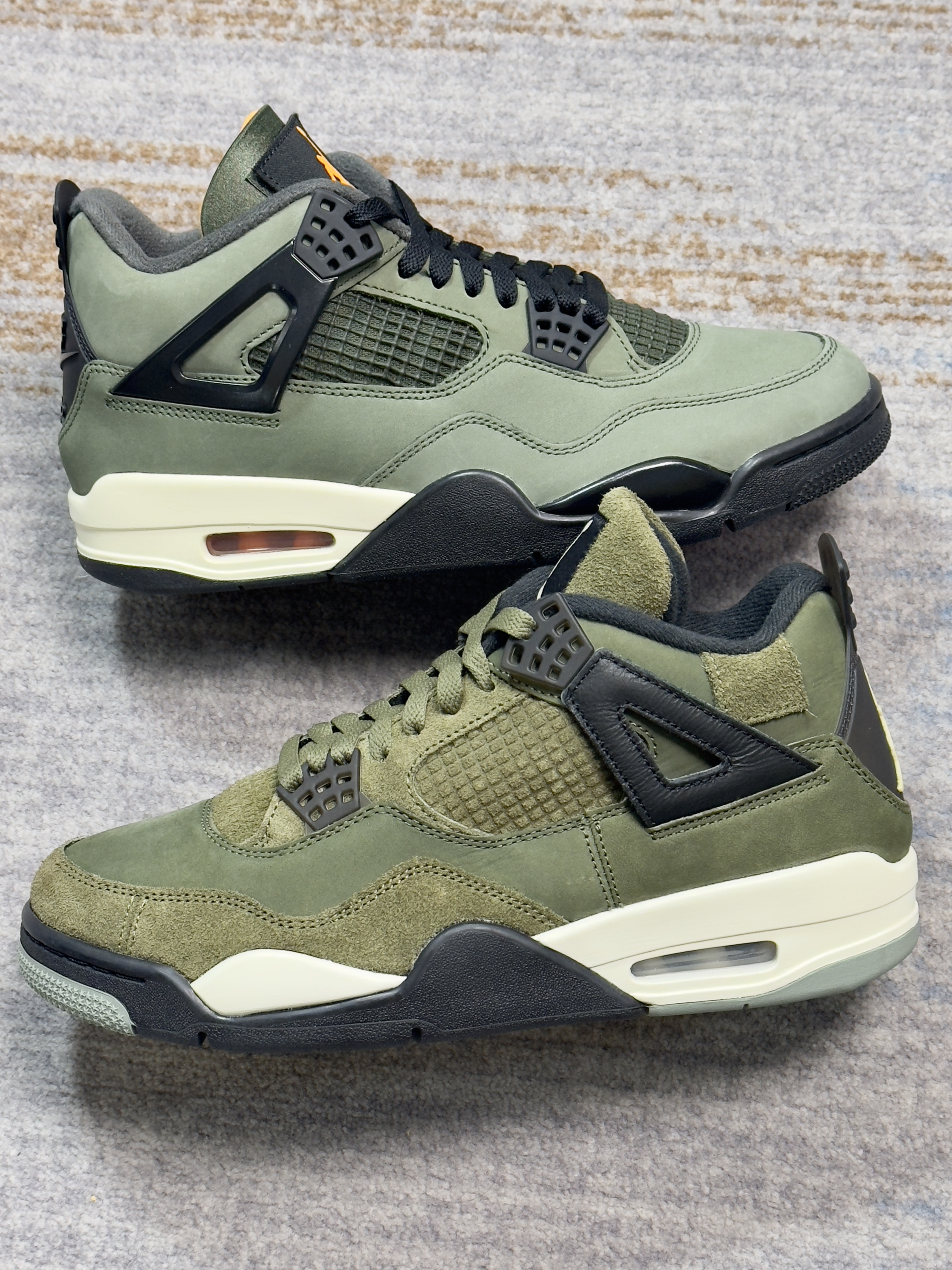 一直有人说这双军绿色AJ4可以平替UND 如今UND联名AJ4复刻了,正好拿来做对比 两双配色仔细看并不算相同,细节材质都不同 UND联名自然是质感看起来更好一些的样子 不过拿一双普款和联名神鞋比,没有可比性的!