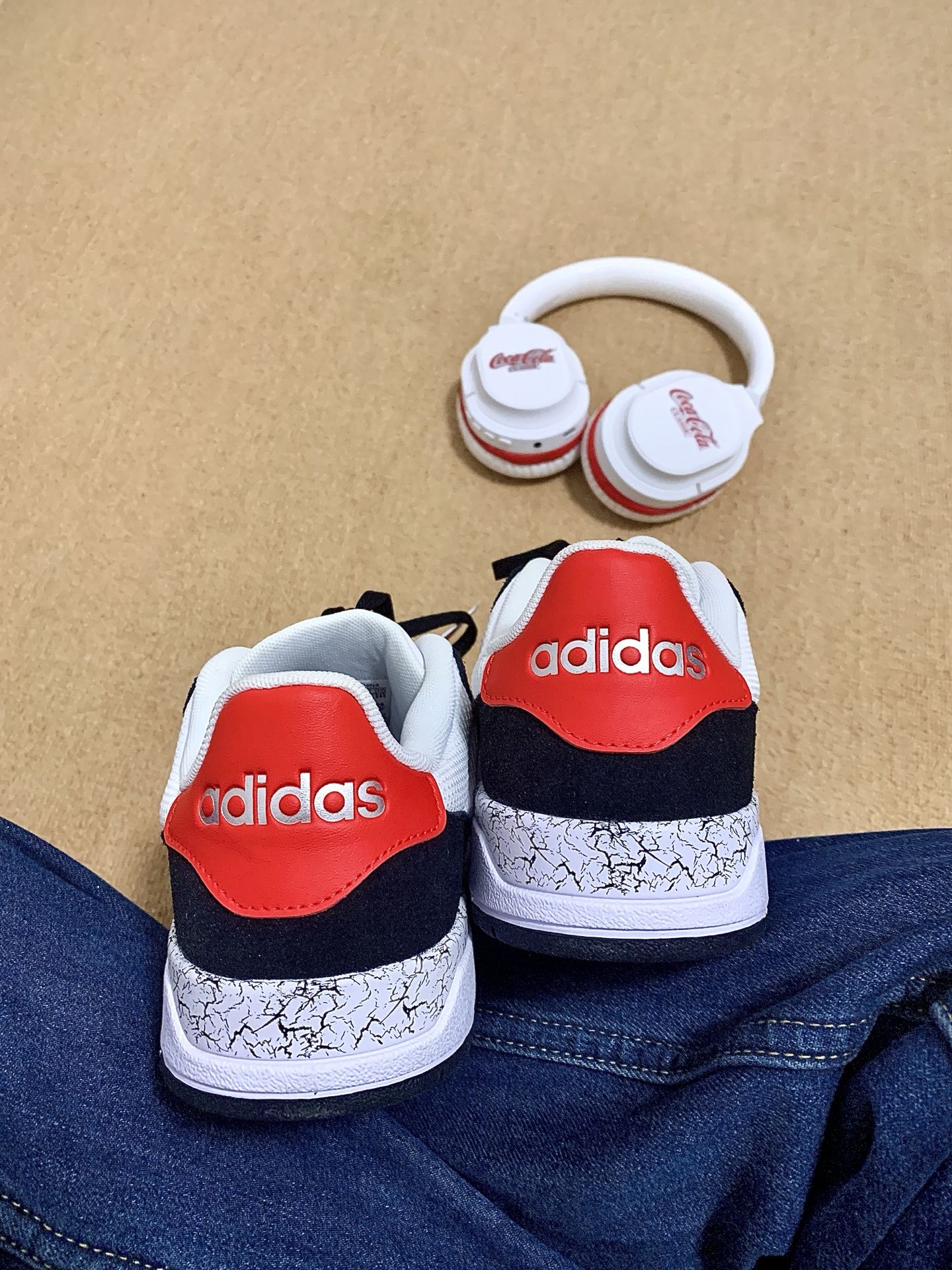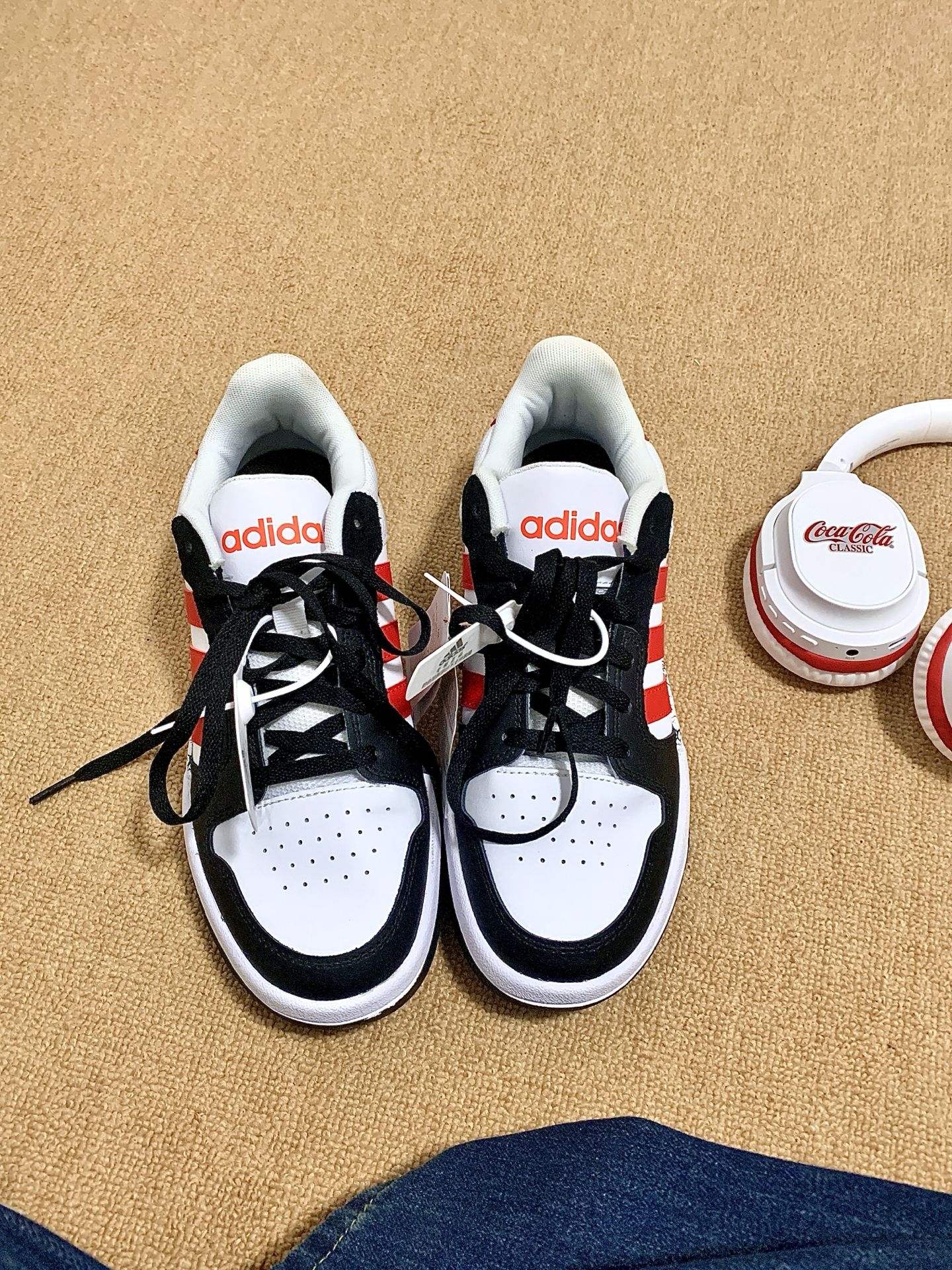 阿迪白红拼色板鞋➕可口可乐耳机🎧🟰快过新年啦🏮|||这个阿迪达斯白黑红拼色的板鞋好好看🌹 和我的红白色可口可乐耳机真的很搭 这一套真的很喜庆,蛮有新年氛围的🏮 鞋子穿着蛮舒服的,耳机音质和续航能力都棒棒哒 #穿搭开红运 #板鞋拿捏秋冬氛围感 #一双鞋轻松拿捏街头潮流 #可口可乐游戏耳机 #送TA惊喜生日礼
