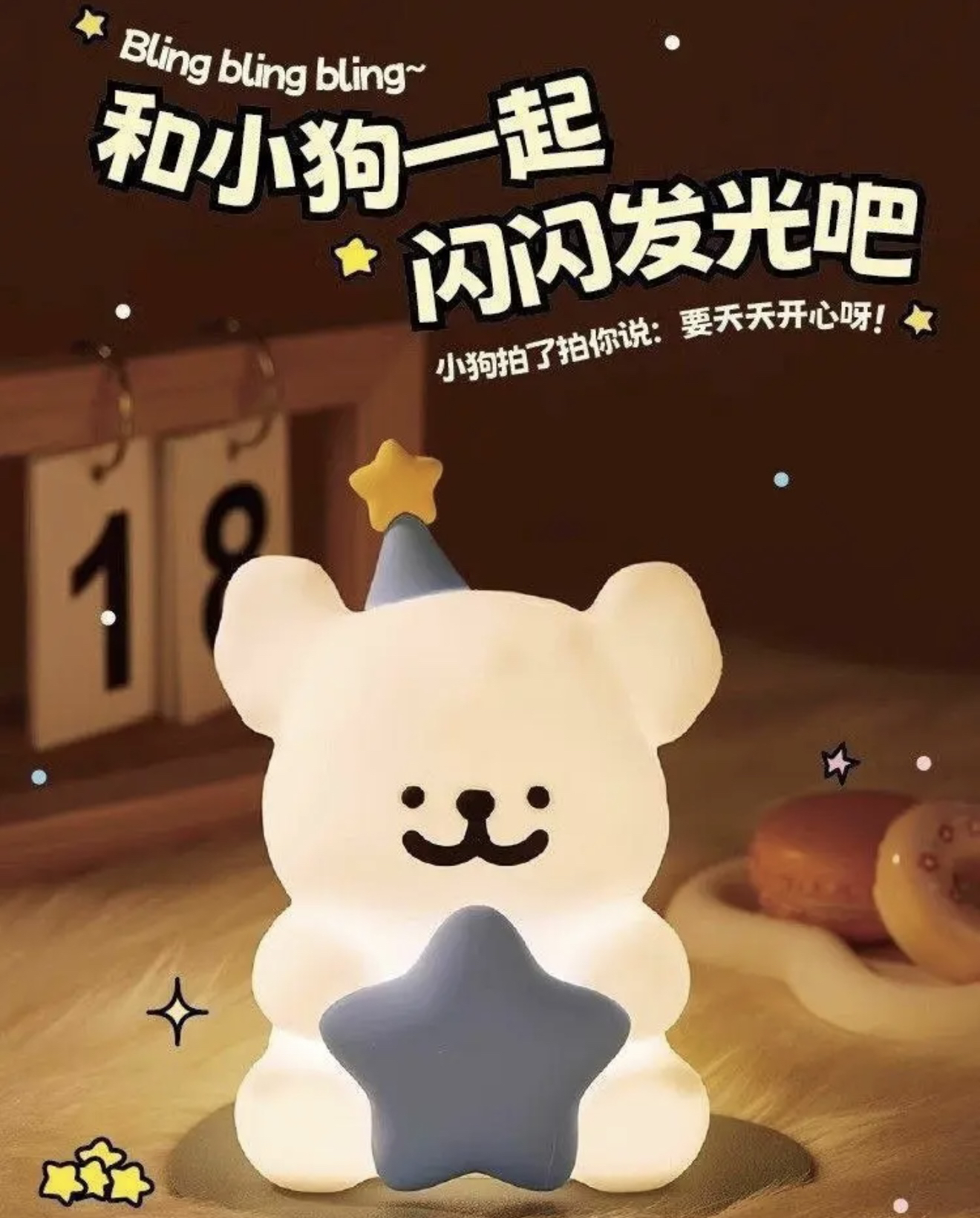 家人们!挖到宝了😭这个快乐小狗星星灯也太治愈了吧! 软乎乎的硅胶材质,摸起来糯叽叽的,晚上打开暖乎乎的灯光,整个房间都变得温柔起来~ 头顶的小派对帽+怀里的星星✨细节超戳,摆在床头当夜灯,半夜起夜再也不怕黑啦,连做梦都感觉甜甜的~ 送闺蜜、送对象当小礼物也超合适,谁能拒绝一只对你说“要天天开心”的小狗呢🥺