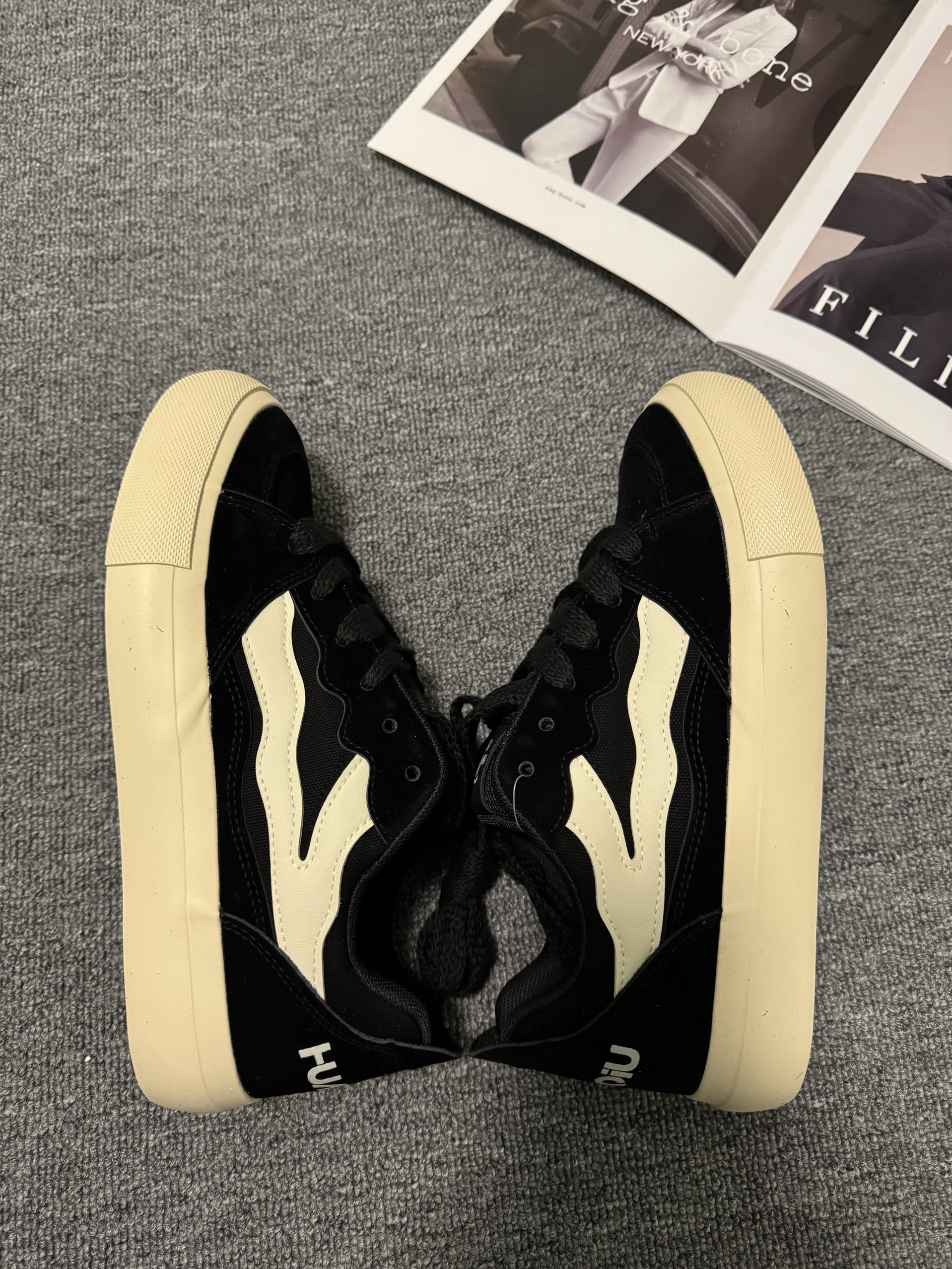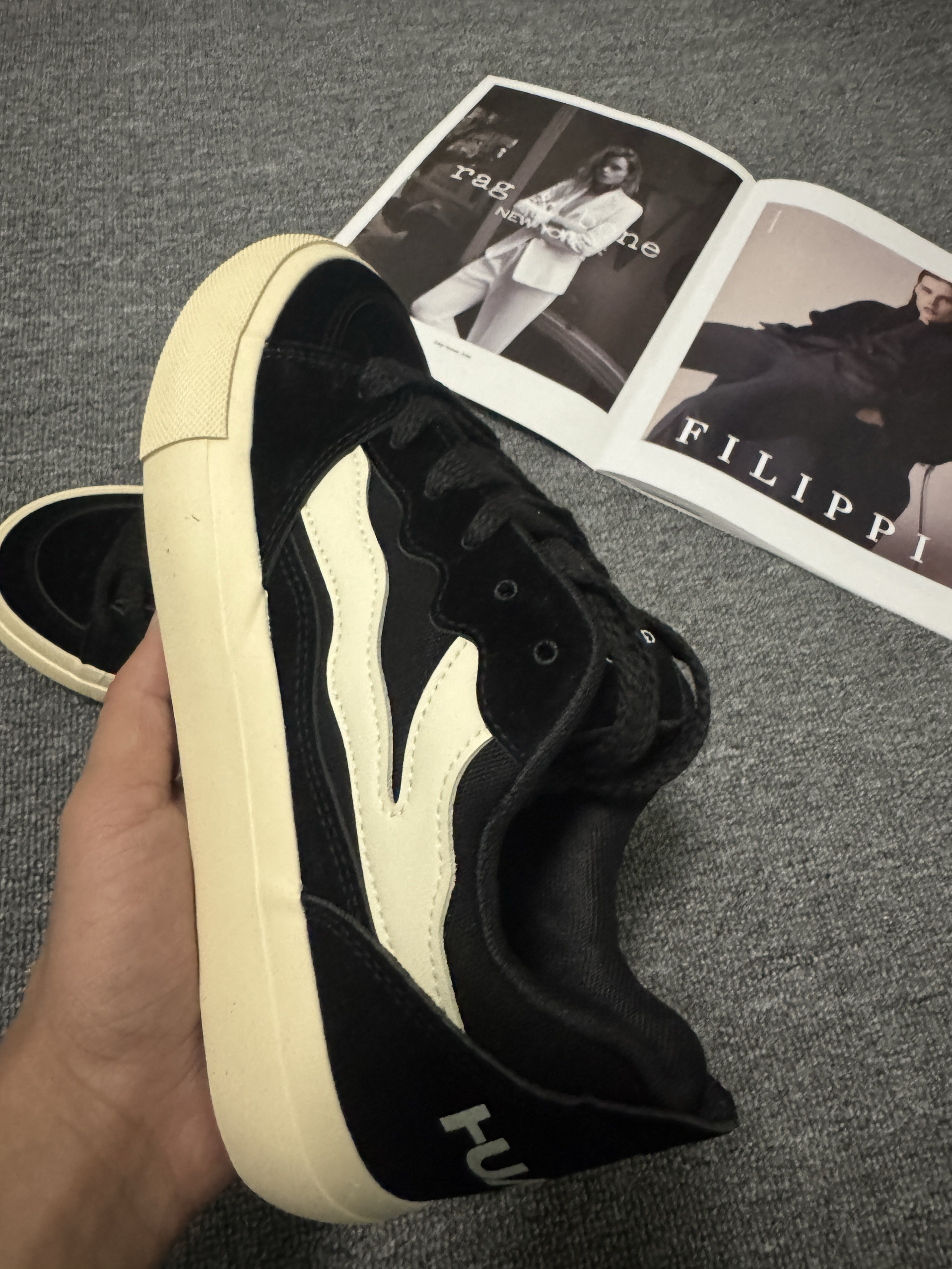 挖到宝了家人们!这双小众板鞋的黑米配色也太顶了⚫️ 麂皮面质感拉满,做旧米白大底中和了纯黑的沉闷,复古街头那味儿一下就出来了 上脚脚感超轻,鞋型还能悄悄显脚小,搭配束脚卫裤/工装裤,街头潮人内味儿直接拉满💨 关键是小众款完全不用担心撞鞋,穿出去回头率超高,潮人必备的宝藏板鞋说的就是它! 📌小tips: • 尺码:正码正拍,脚肥姐妹建议大半码 • 打理:麂皮部分用橡皮擦清洁就超方便
