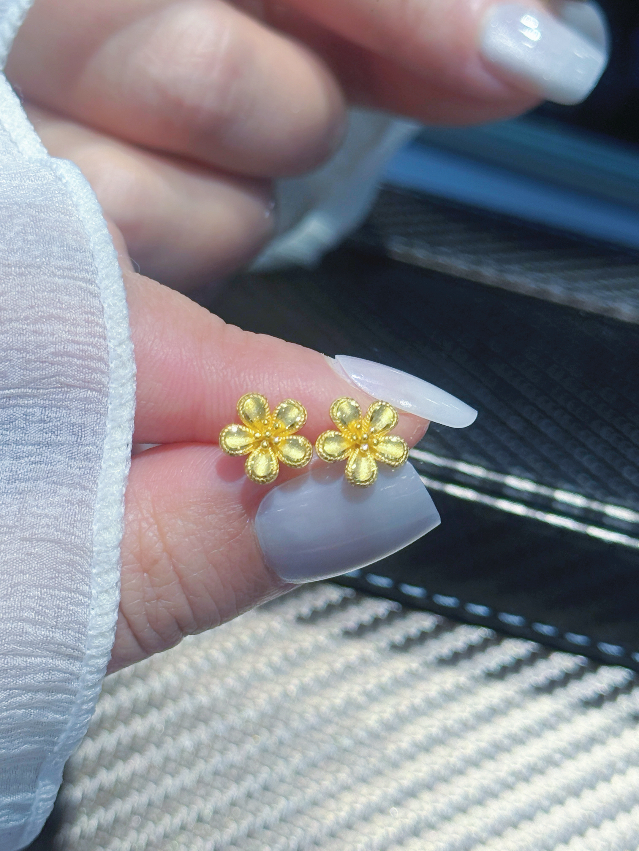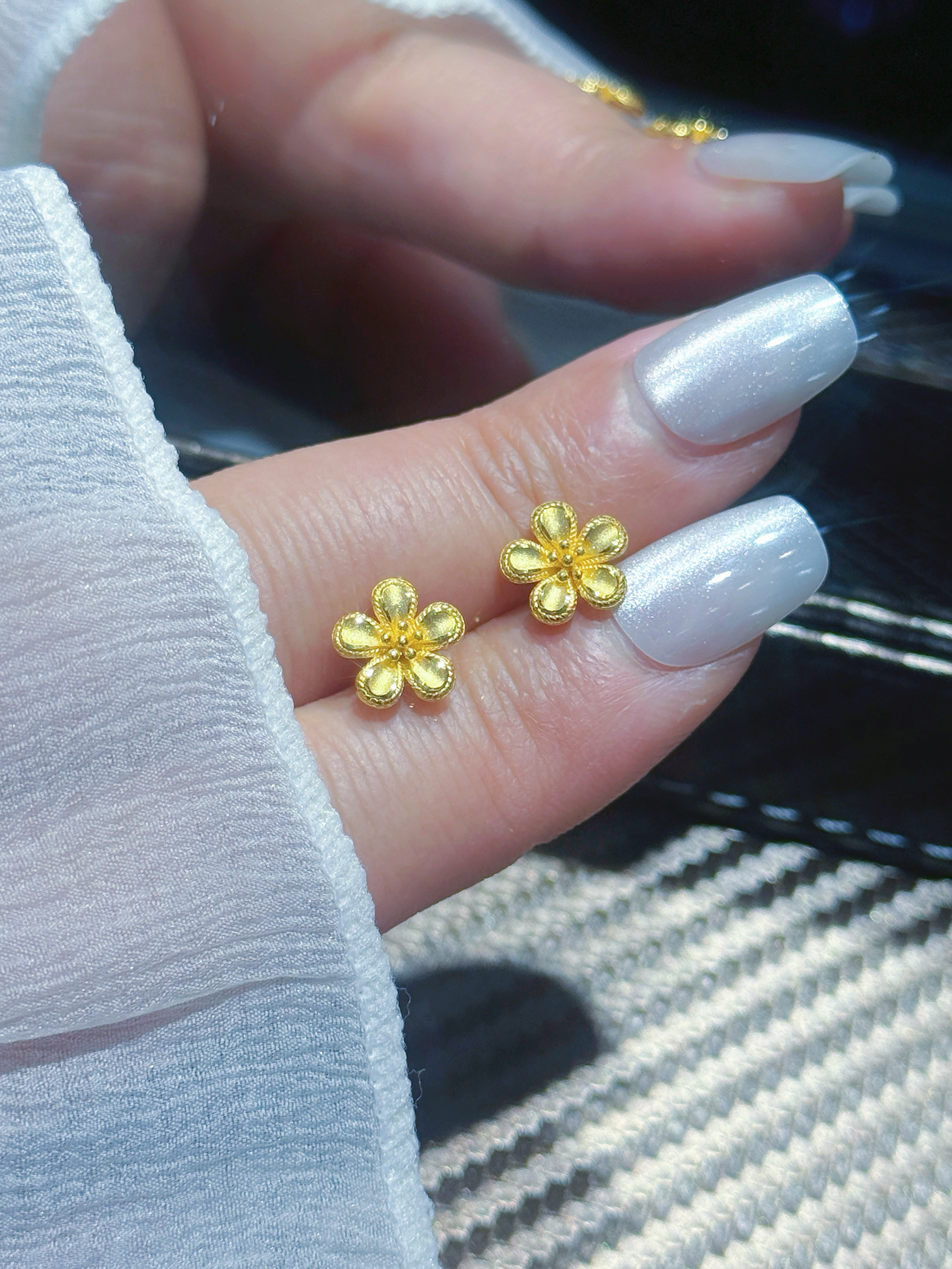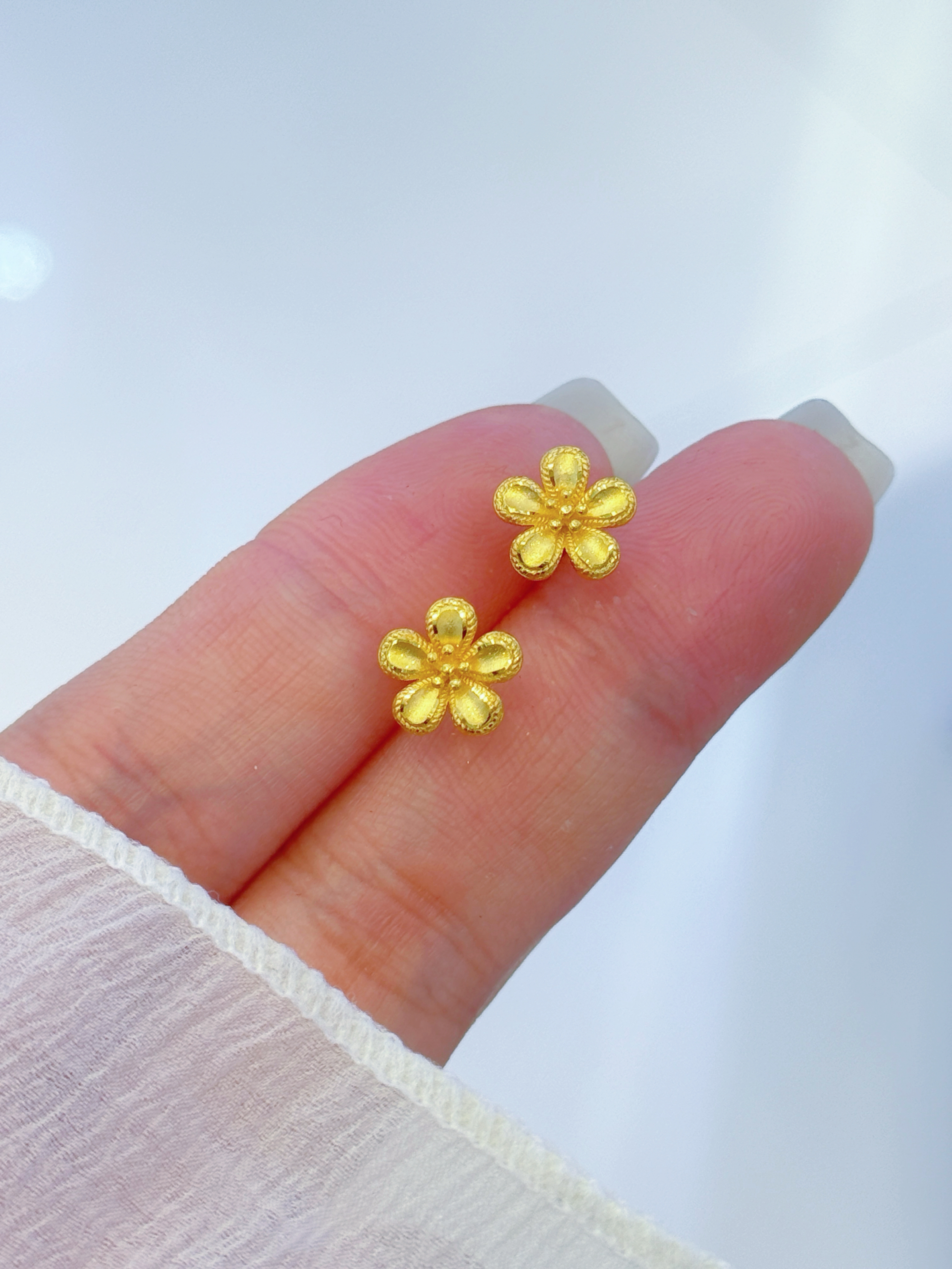 这对黄金小花耳钉,把情人节浪漫焊在细节里!🌼 足金材质质感拉满,五瓣花的纹路刻得超精细,小巧的款式戴在耳上温柔又精致,日常戴完全不挑风格~ 马年情人节送女友、闺蜜都超合适,黄金保值还寓意花开富贵,百元价位就能拿下的浪漫,仪式感直接拉满! 谁能拒绝情人节收到的黄金小花耳钉啊,甜到心坎里了!