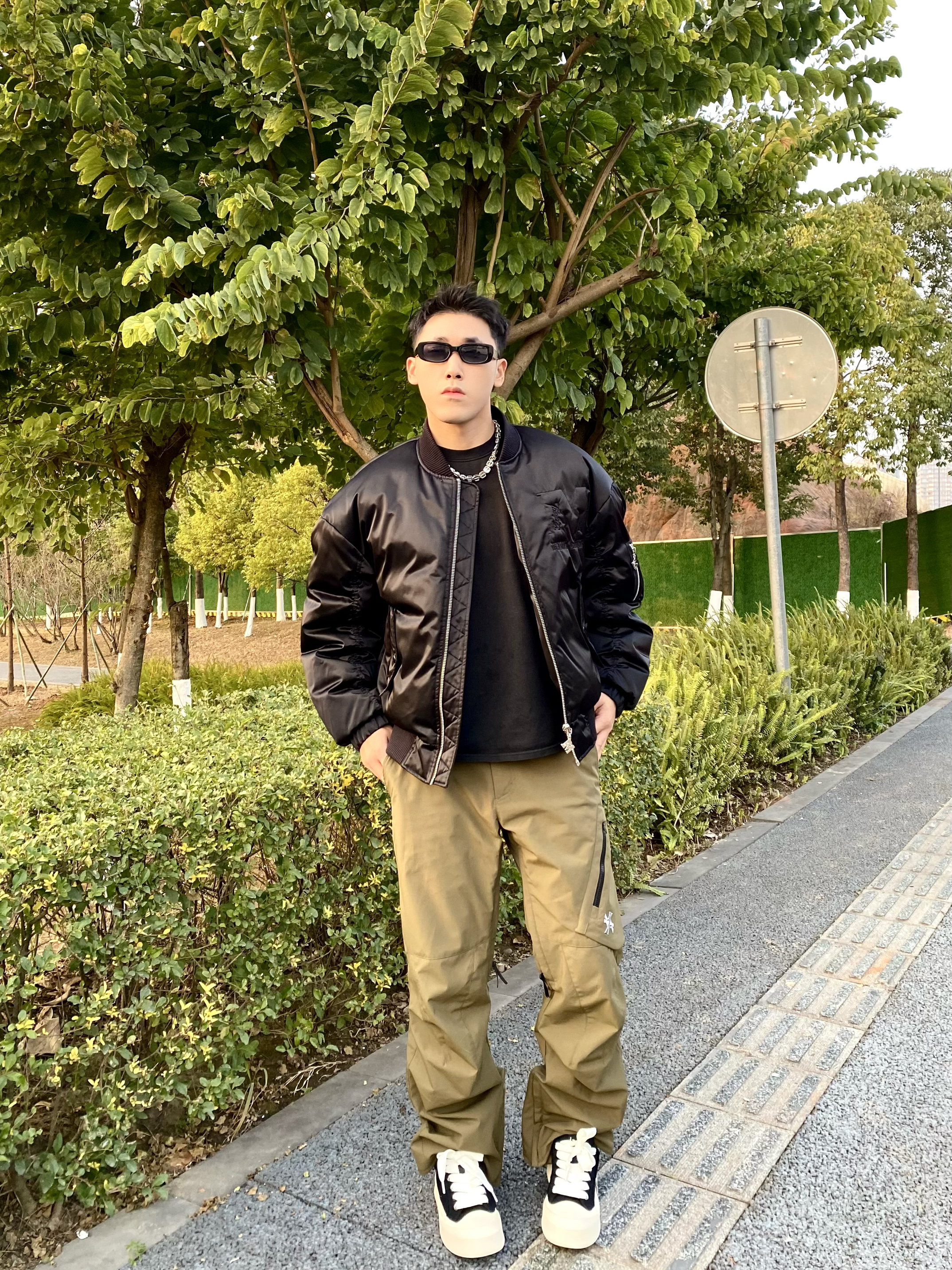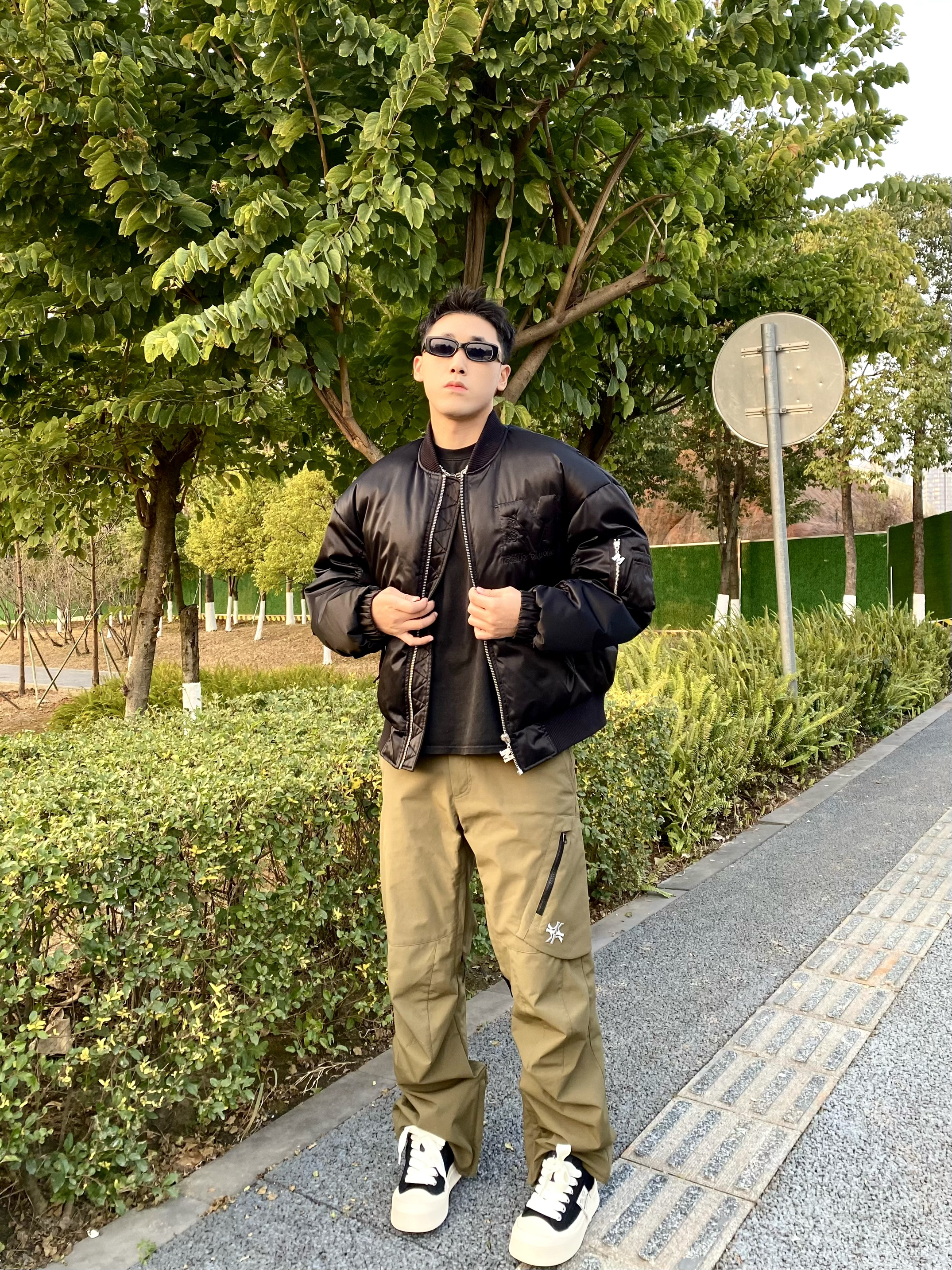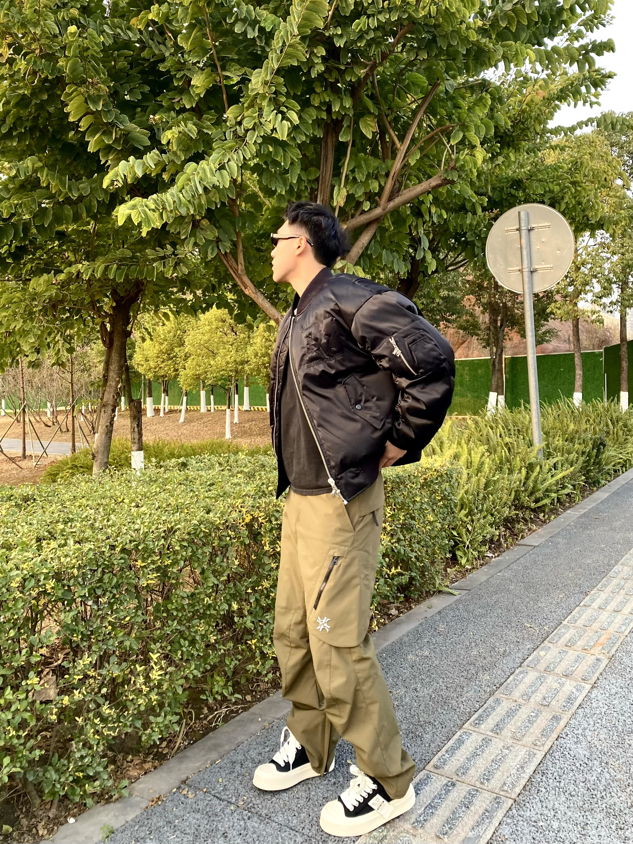hello 这里是小樊~ 鞋子对于穿搭还是起到重要作用✨ 今天上脚帆布鞋🏋️ 小樊平时穿41码穿这个不打脚合适👌 上脚脚感不错轻便没有负担感🙋 黑白的帆布鞋一直比较经典好搭配💖 鞋侧面标签时尚感拉满🤩 上身搭配夹克羽绒服👍 下身选择绿色冲锋裤⚡️ 帅帅气气又是一天😎