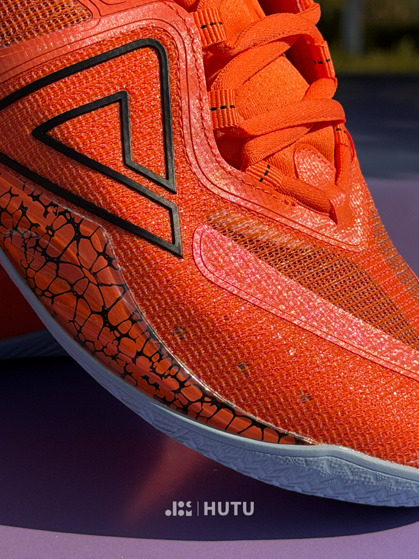 橙色的鞋面配上爆裂纹!一下抓住眼球!态极+轻弹双密度可抽拉中底,让我在突破与跳投间,完美兼顾缓震反馈与场地感;异形TPU抗扭片+外侧张拉膜,大幅提升变向时的足部稳定性;波浪纹叠加人字纹外底,室内实战抓地表现拉满。唯一不足是鞋楦偏宽、尺码偏大,瘦脚的我建议选小半码到一码,宽脚穿它则格外适配。#交出你的实战球鞋报告