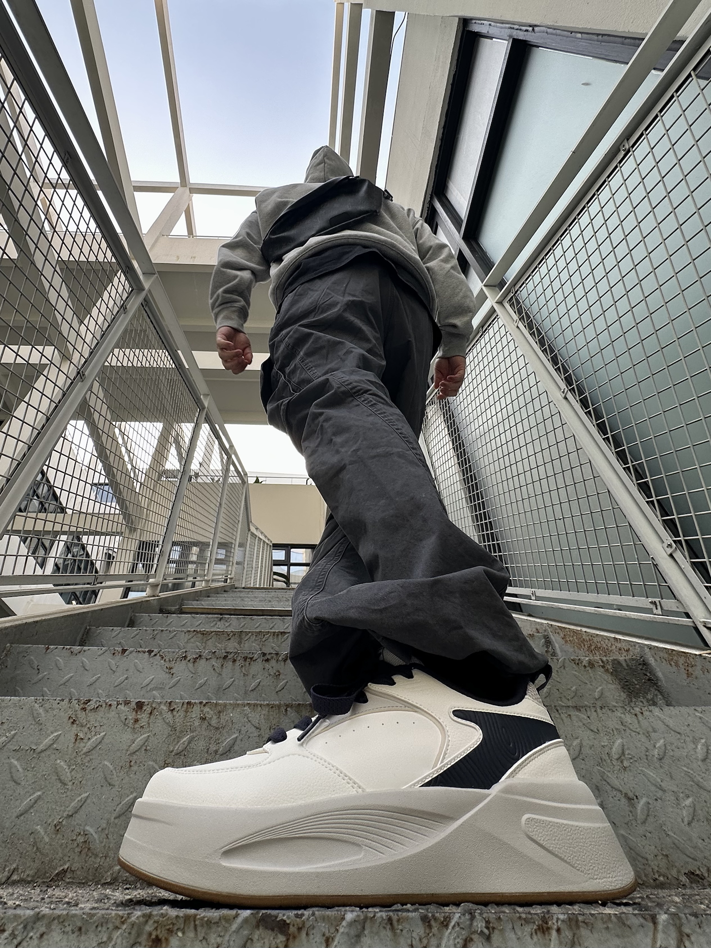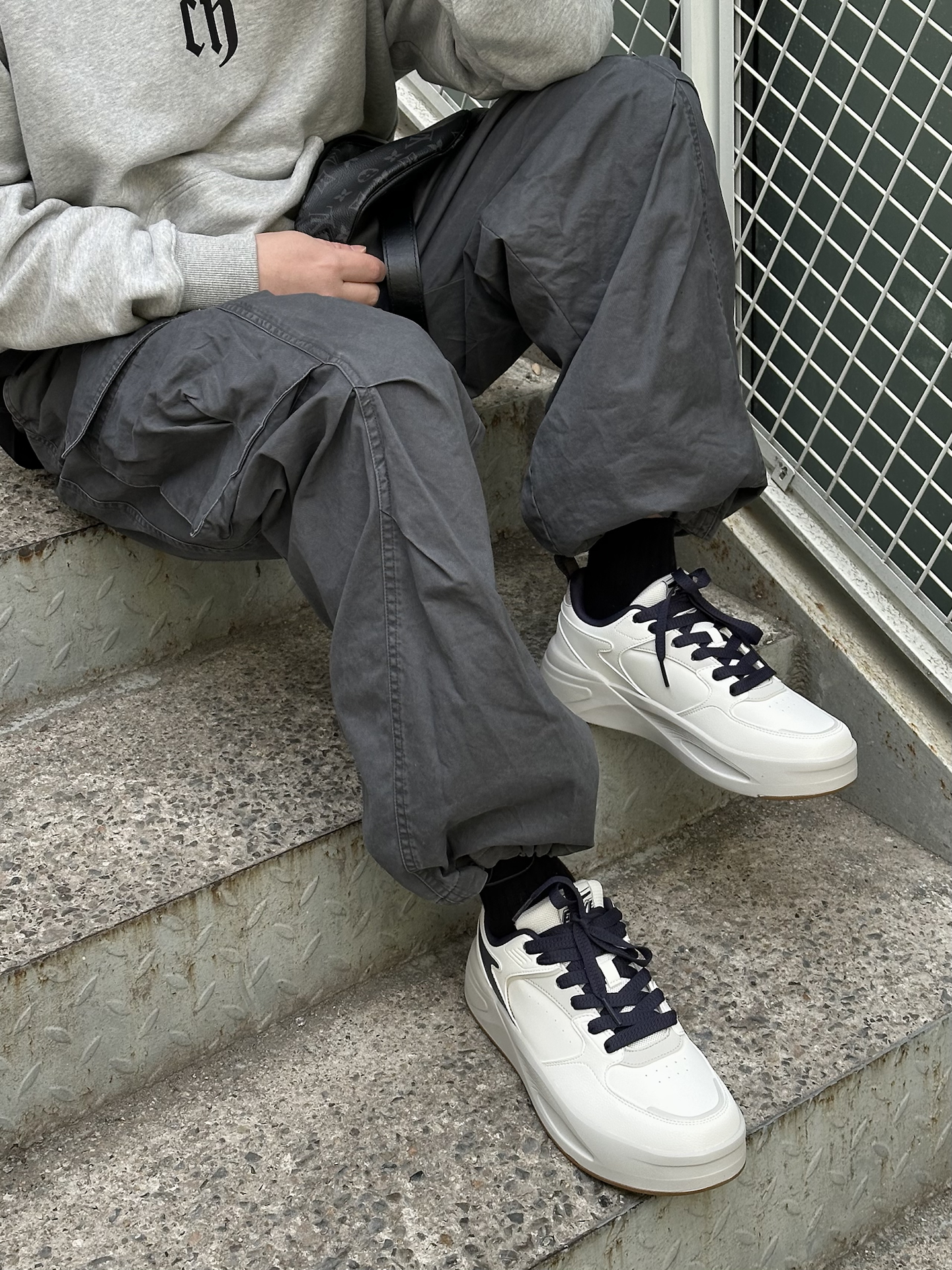 哈喽👋🏻大家好哇 这里是🪨石地夫的穿搭小日记📝 - 我真的太喜欢卫衣搭配板鞋了 出门不知道怎么穿的时候这么搭真的很自在✌🏻 今天一件浅灰色卫衣➕深灰色工装裤 格雷系渐变越看越顺眼就对了☑️ 脚上穿的是千仞2小白鞋👟 鞋面藏青拼色和灰色鞋底的结合很特别✨ 有一种低饱和的高级感💡 鞋底加厚增高,脚感nice👍🏻 #2026开年Fitcheck #我的基础款不无聊 #竟然被鞋抢了c位 #超百搭...
