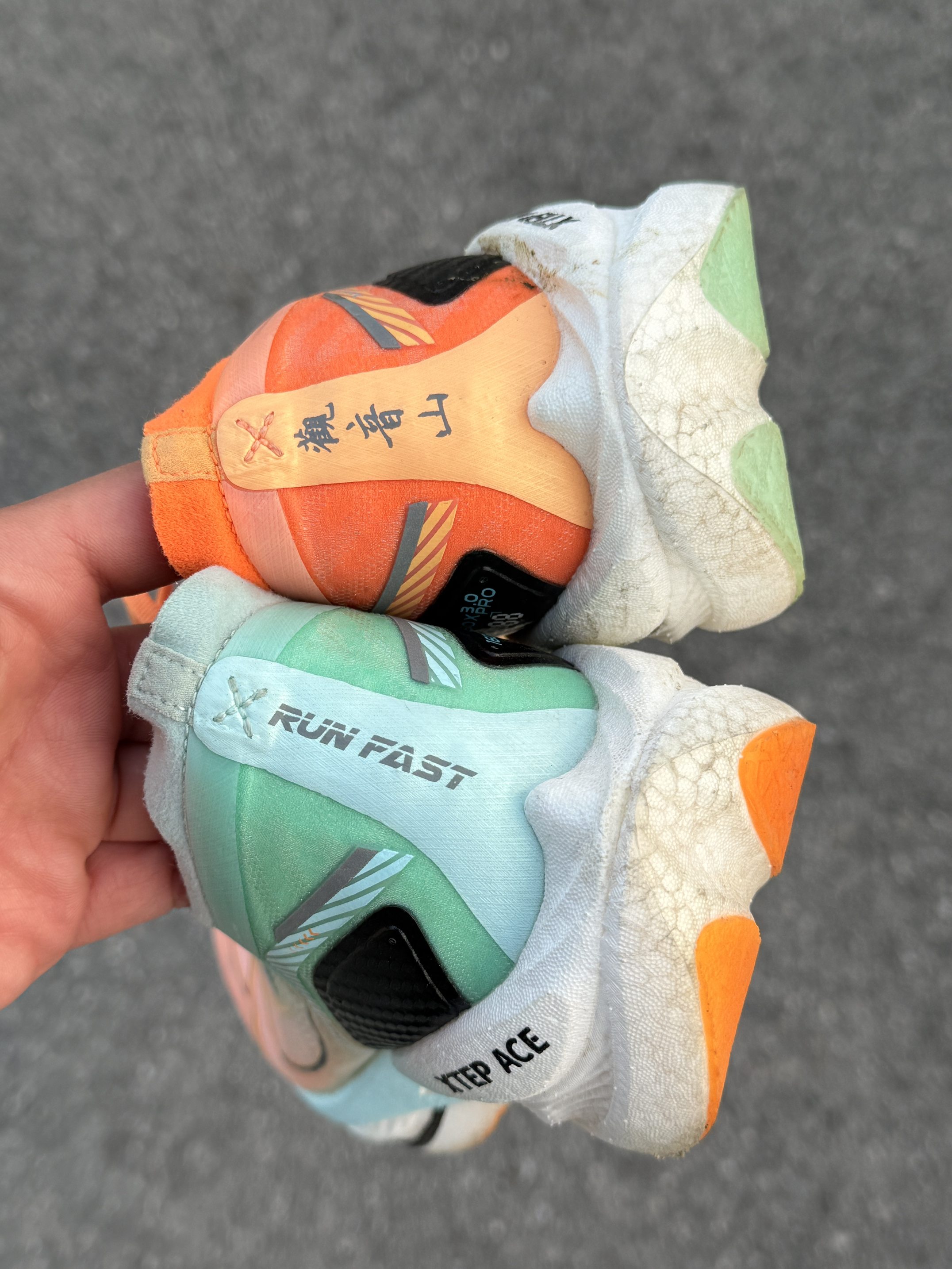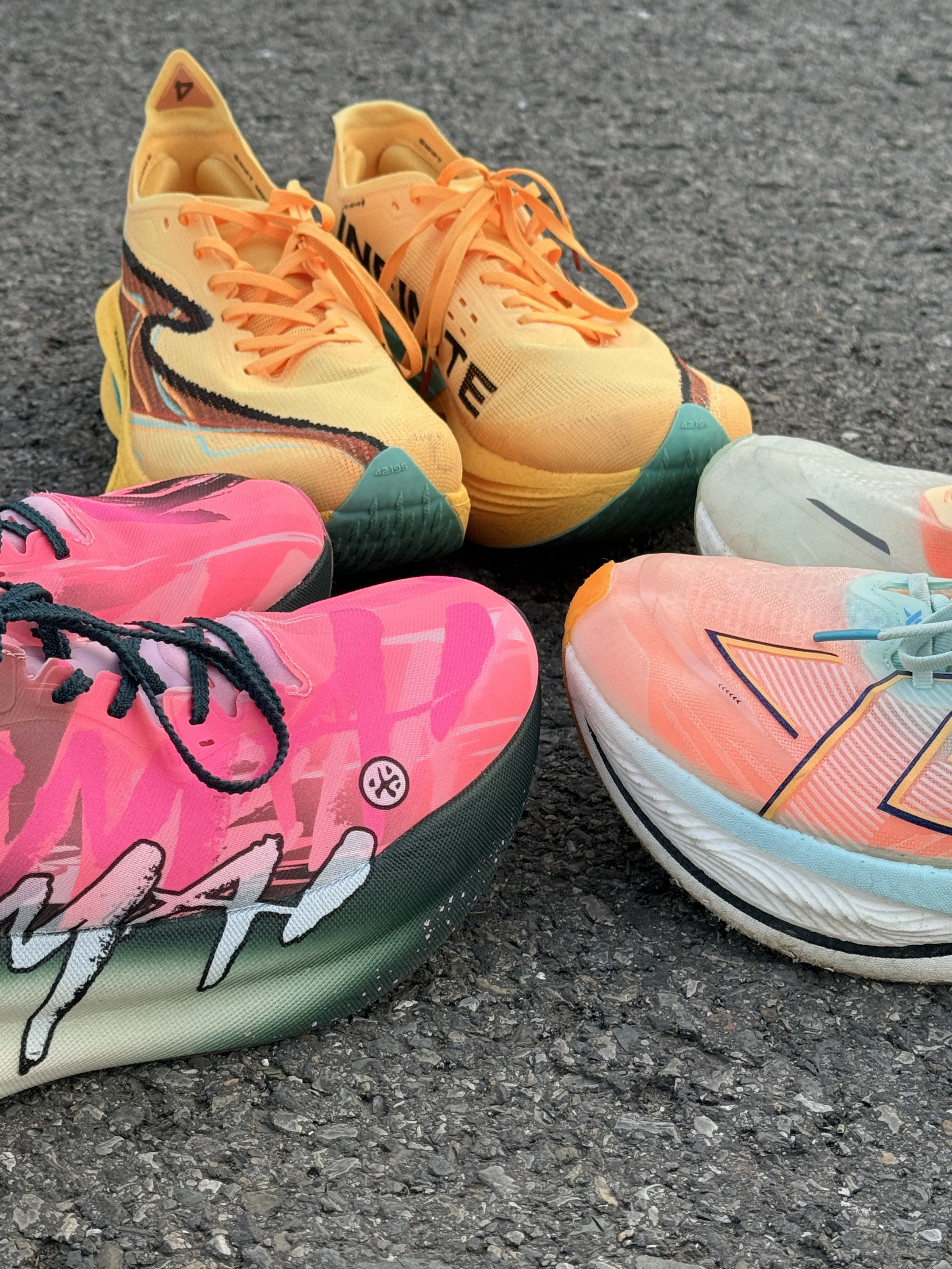 哈喽~这是阿毅! 这三双顶碳跑鞋如果再不考虑价格品牌的情况下,只看脚感你会选择谁。 第一双特步的160X 3.0pro! 第二双鸿星尔克芷境4! 第三双必迈惊碳3.0 Turbo!