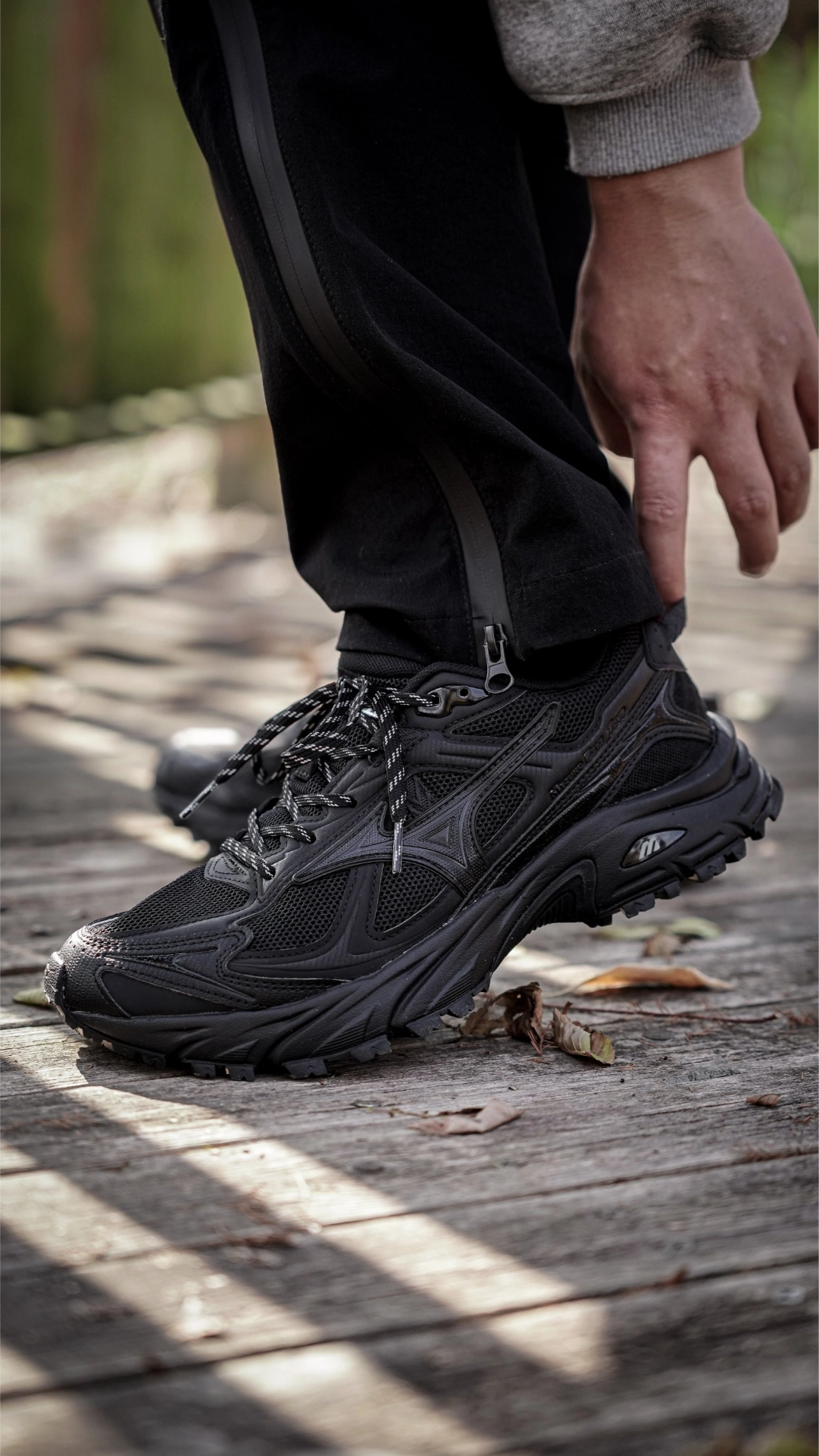 不用纠结城市通勤还是近郊探野,一双鞋就能打通两种生活。#Mizuno FIYI TL V2就轻松把山系机能和都市潮流揉在一起了。 鞋身的多层次拼接藏着小心思,翻毛皮触感细腻搭配透气网纱,强度和透气都兼顾到。全黑配色百搭不挑衣,日常通勤、运动慢跑或是轻度徒步都OK。轻量化EVA中底软弹适中,久走也不累脚。锯齿大底抓地力够强,不平整路面也走得稳,足弓的硬质尼龙片悄悄护着脚,减少扭伤风险。 穿上这双打...