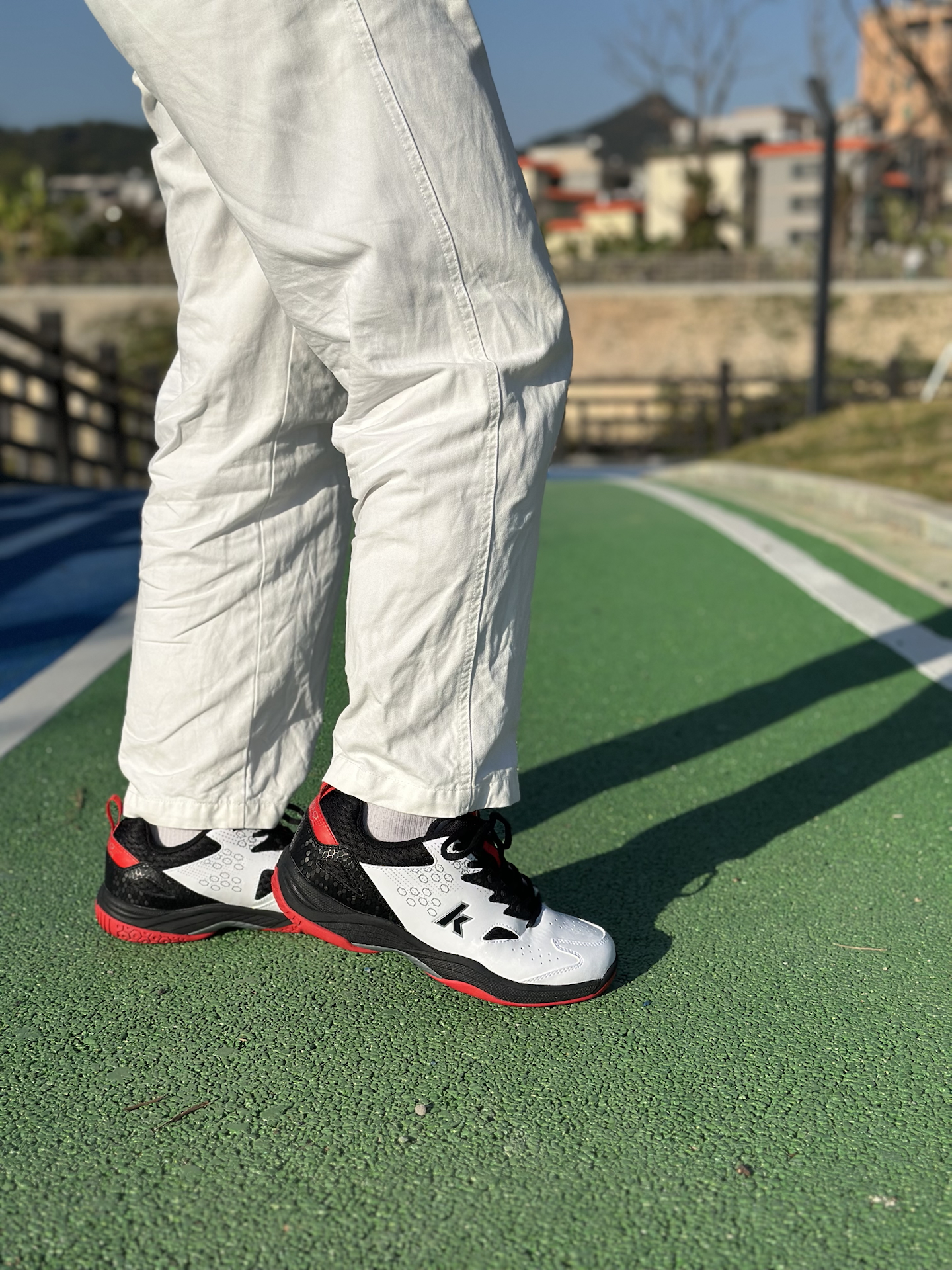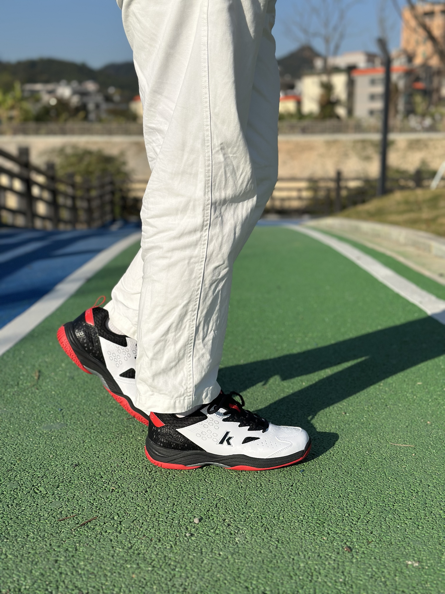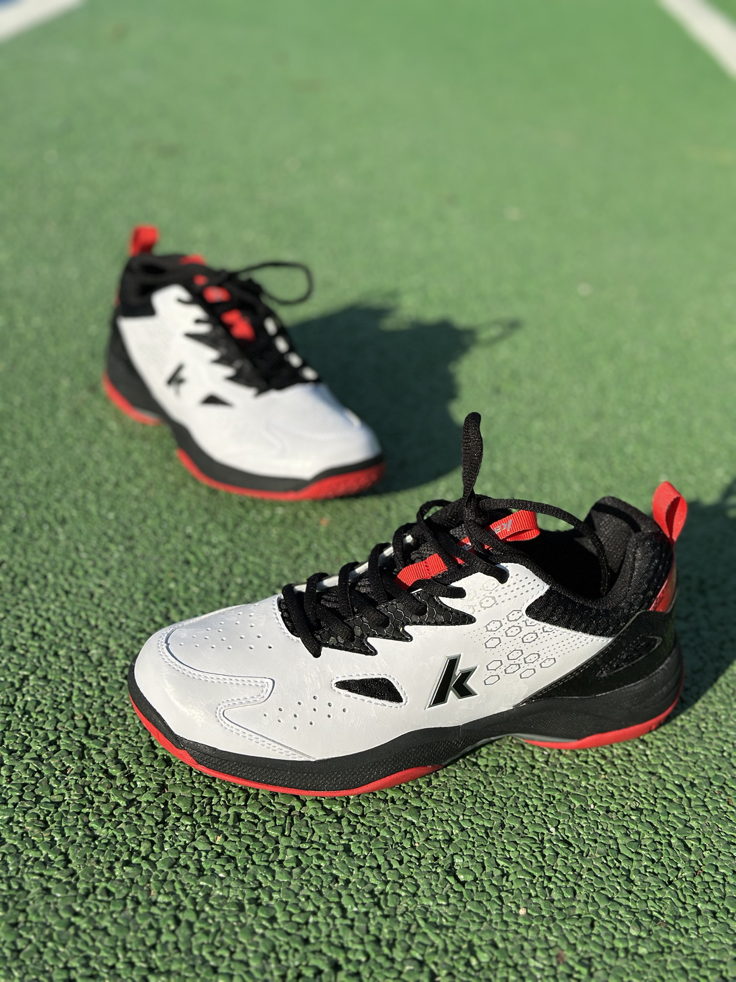 手上这款来自川崎的羽毛球鞋,黑白红配色,主要看中他耐脏而且还有活力感 整体减震效果、侧向支持和抓地力方面表现都很过关👍🏻 现在100+的价格,对于只是周末或者每个月一两次的羽球局来说,性价比还是很可的✅尺码不偏正码拍就行 #交出你的实战球鞋报告 #本命年球鞋 #晒晒和新年绝配的鞋子 #川崎入门级羽毛球鞋 #穿搭加分的新年好运鞋