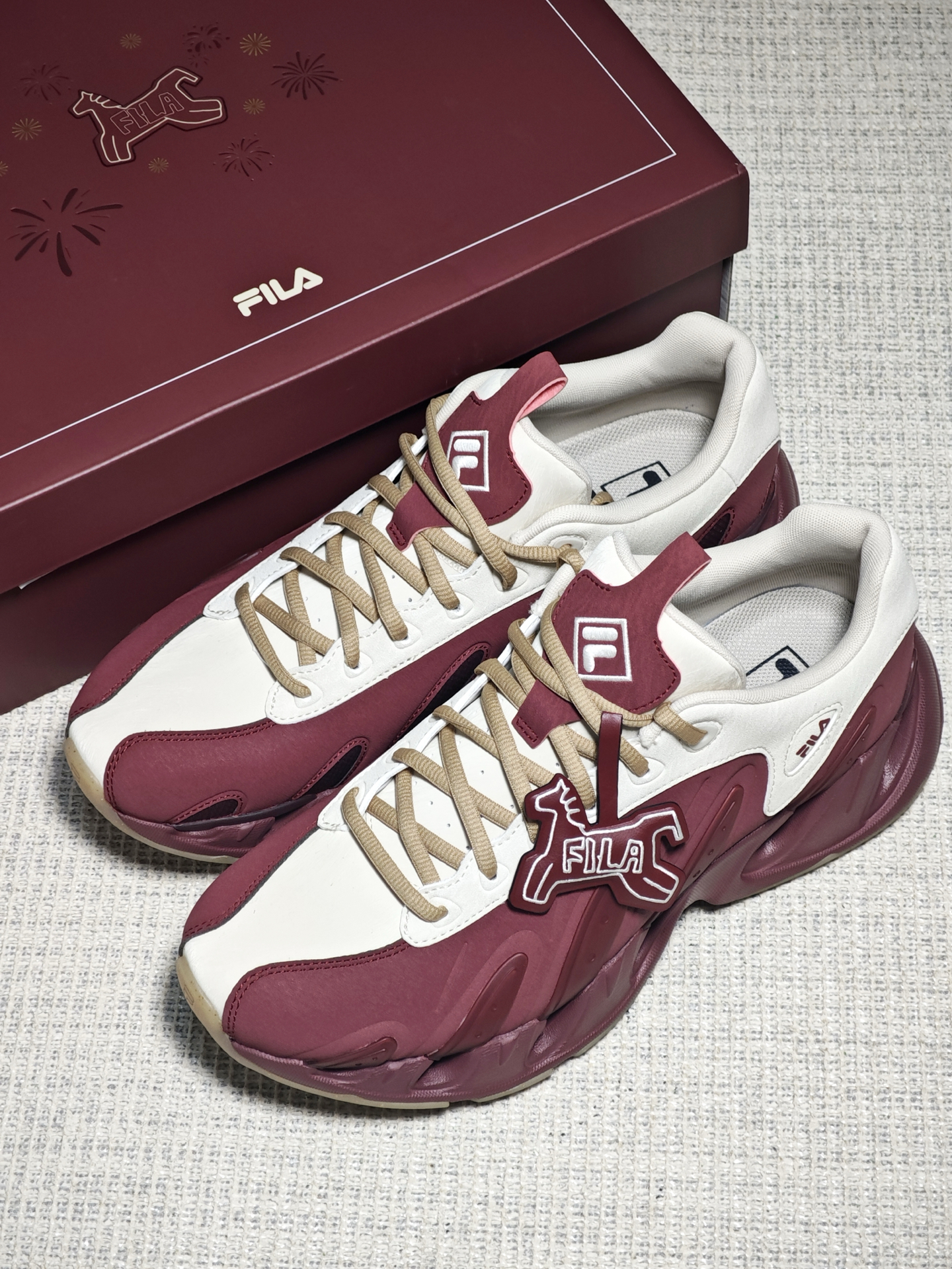 酒红十经典黑撞色质感拉满 配黑袜子直接帅出新高度 后跟马具铆钉细节满分 马厩鞋盒十烫金甲骨文卡片 新年仪式感满满~ 潮流与年味并存,马年穿它无拘型格新出界!