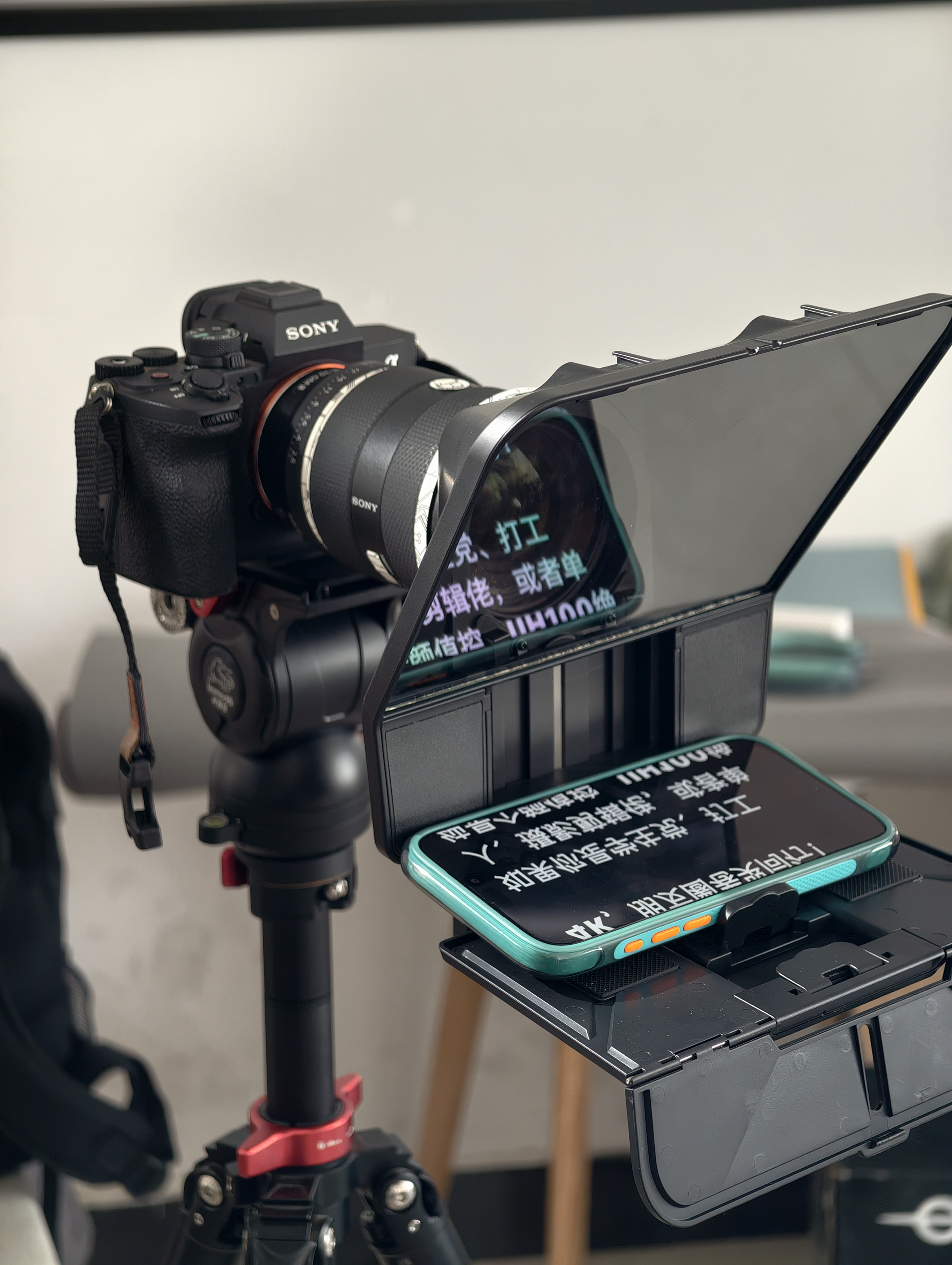 百视悦T5完全是反套路设计——展开前就比我的iPad Mini大一点,重量跟一瓶冰红茶差不多,塞进帆布包毫无压力。最绝的是“傻瓜式组装”!不用看说明书了 🎯⚡️2分钟速装!Solo博主再也不用跟设备较劲 伸缩夹板对准相机镜头一夹,手机/平板卡进提词槽,搞定!整个过程快到离谱,开箱即开拍不是吹👏 ☀️户外不反光!镜头眼神杀全靠它撑场面 T5的双屏设计太专业了:主屏提词字体巨清晰,小四号字都看得明明白...