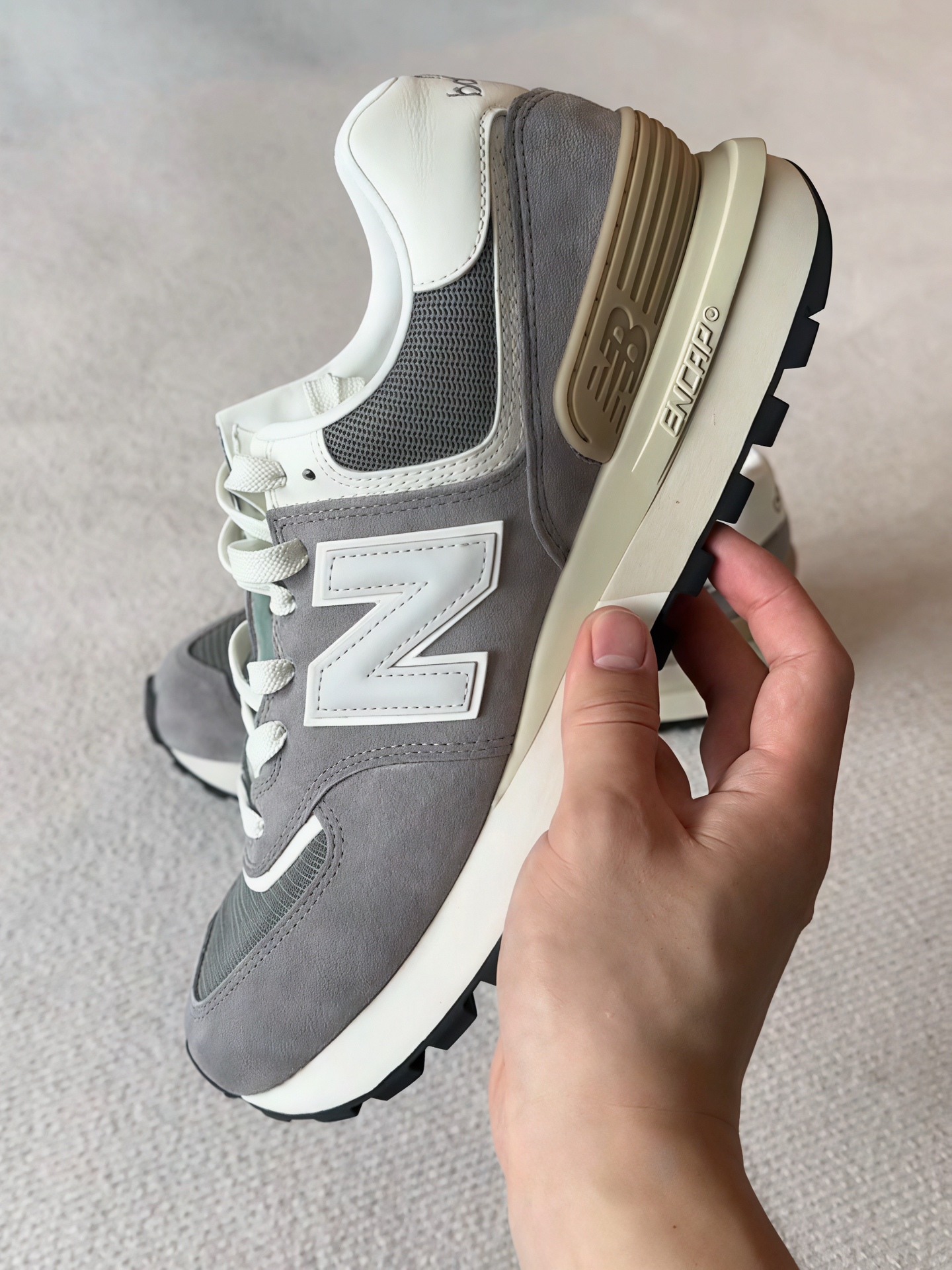 [耍帅_blue]颜色 New Balance 574灰白配色穿上复古味十足,浅灰与白色的搭配属于简约但是大气,鞋侧标志性N字标很吸睛。 [耍帅_blue]做工 鞋面采用猪皮革与织物拼接,吸湿透气,ENCAP缓震中底以聚氨酯包裹EVA,健身或者慢跑通勤都能穿,脚感很好,即使说出去玩暴走也不会感到很累。 [耍帅_blue]搭配 搭配黑色牛仔裤,美式复古感拉满,或者卡其色,时尚复古味也不错,无论是...