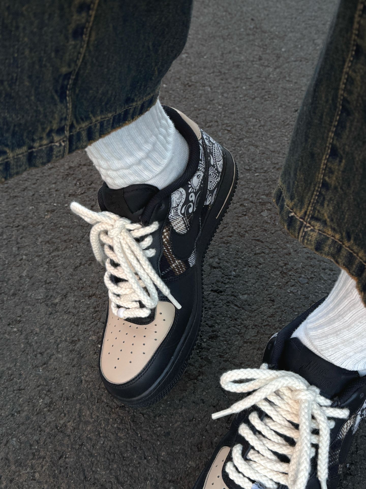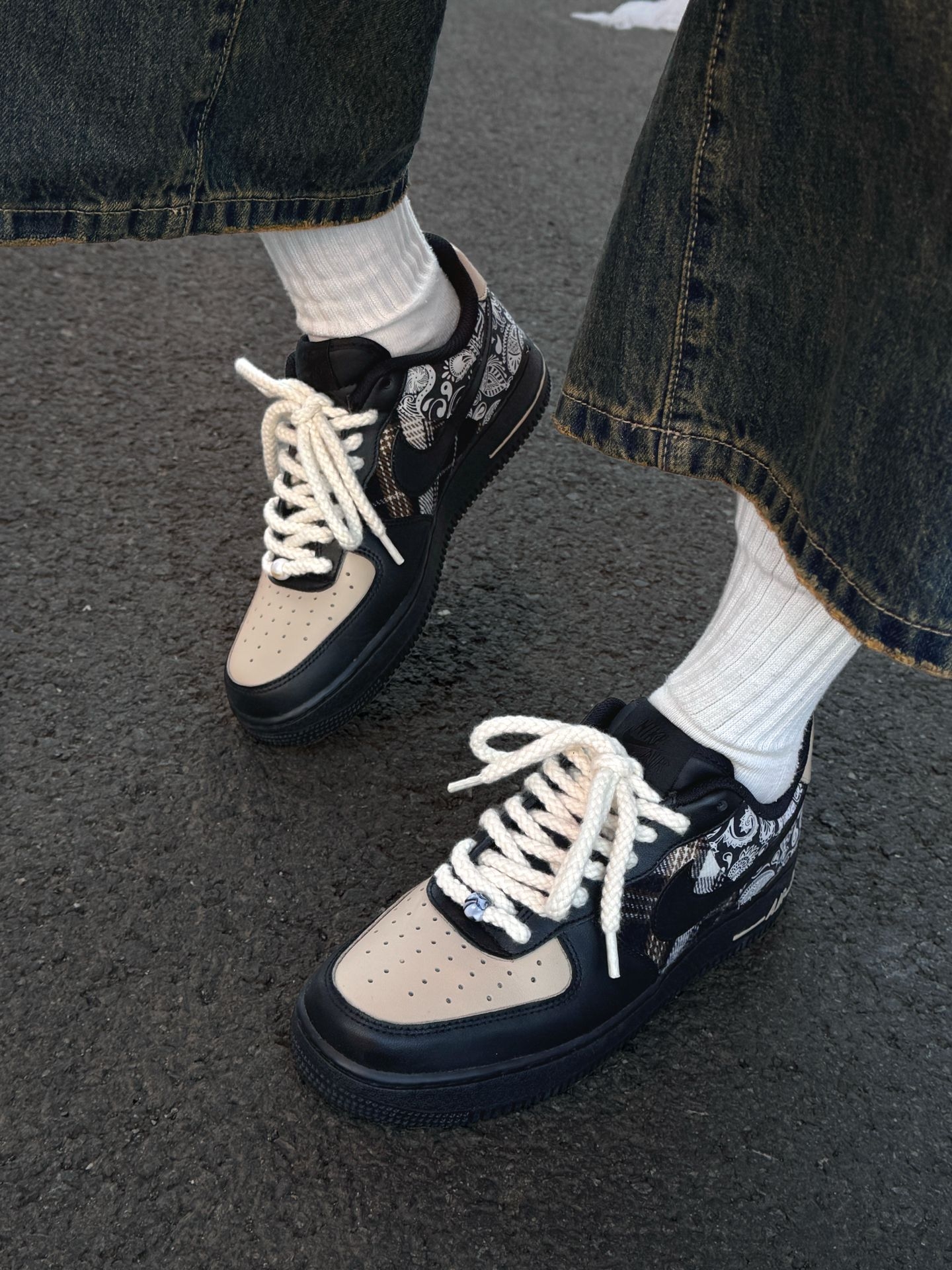 本篇笔记关联了【定制球鞋】Nike Air Force 1 板鞋 舒适轻便防滑耐磨包裹性合成革防水复古简约增高 女款/腰果/黑色/金色等商品,为用户提供真实的使用体验和购买参考。