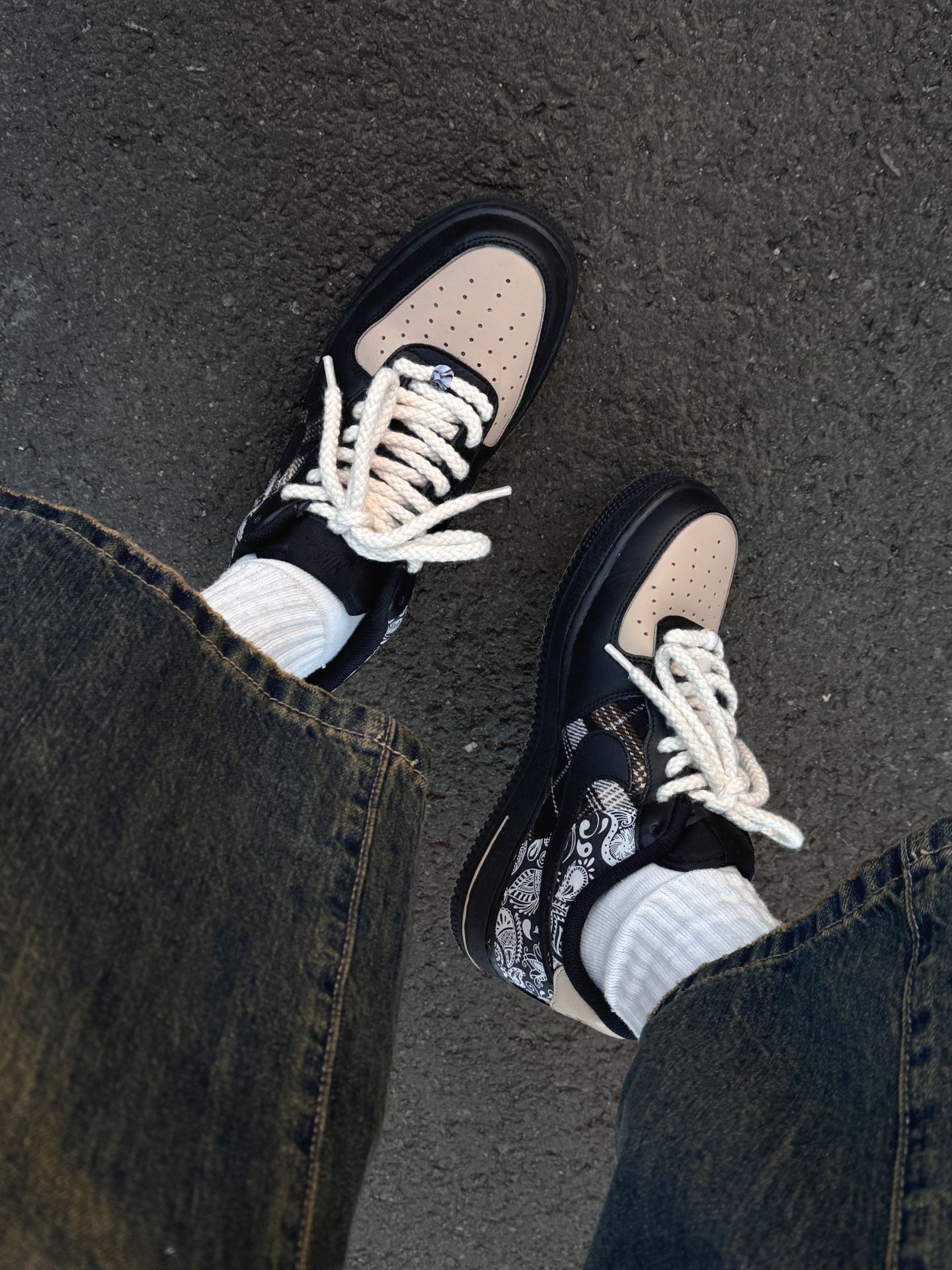 空军一号黑武士版本很多💥选介双黑金腰果准没错~ |||这款黑武士空军鞋身上的细节处设计的很多~ 介双黑金腰果的侧边格纹好有精致感级感呀~ 真嘟是美在我的审美点上啦 而且还是礼盒包装,自留送礼都有面子 日常搭配牛仔裤工装裤都帅得一批~ #万花弄 #板鞋拿捏秋冬氛围感 #韩系入冬穿这双 #竟然被鞋抢了c位 #再冷也要搞穿搭