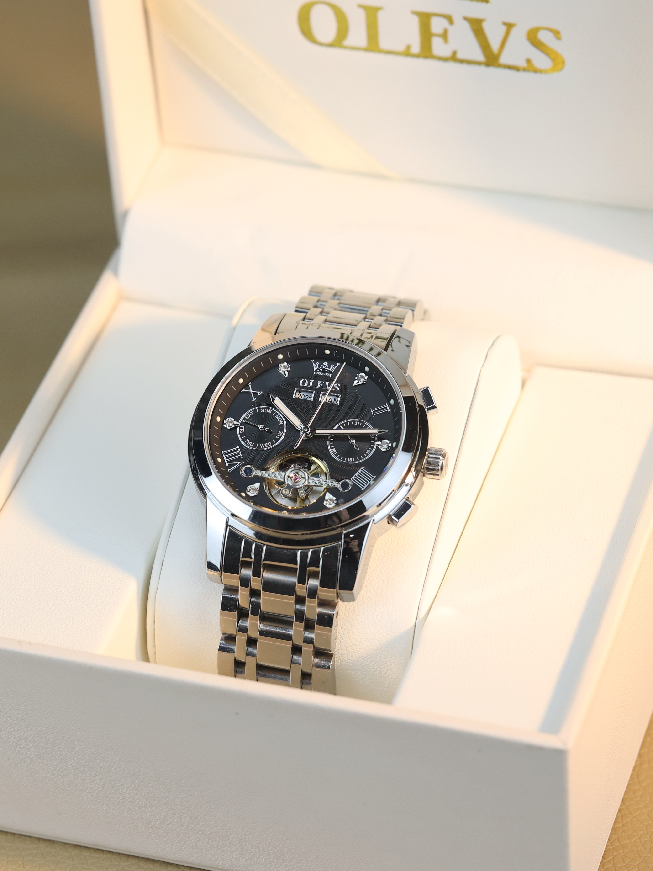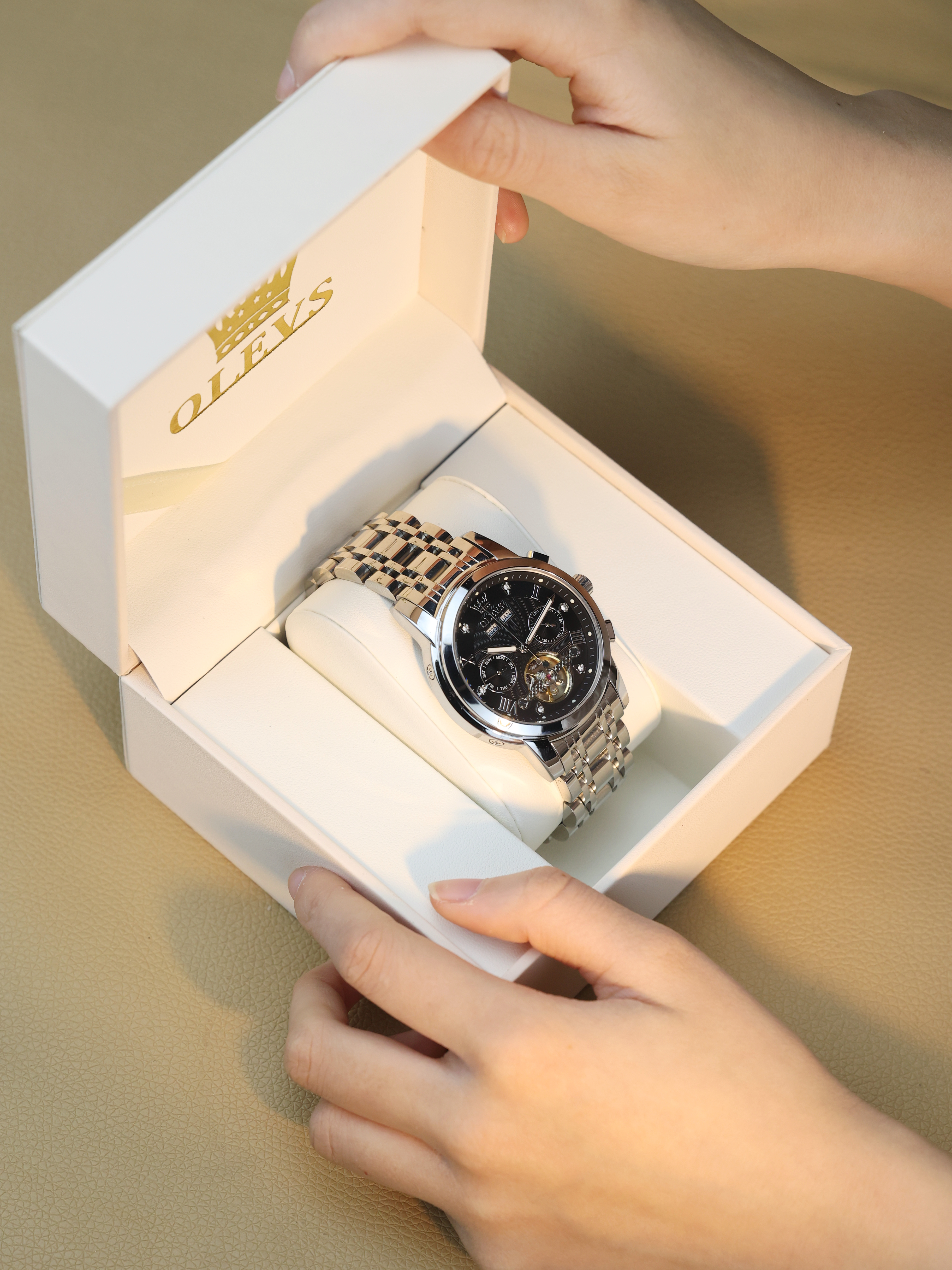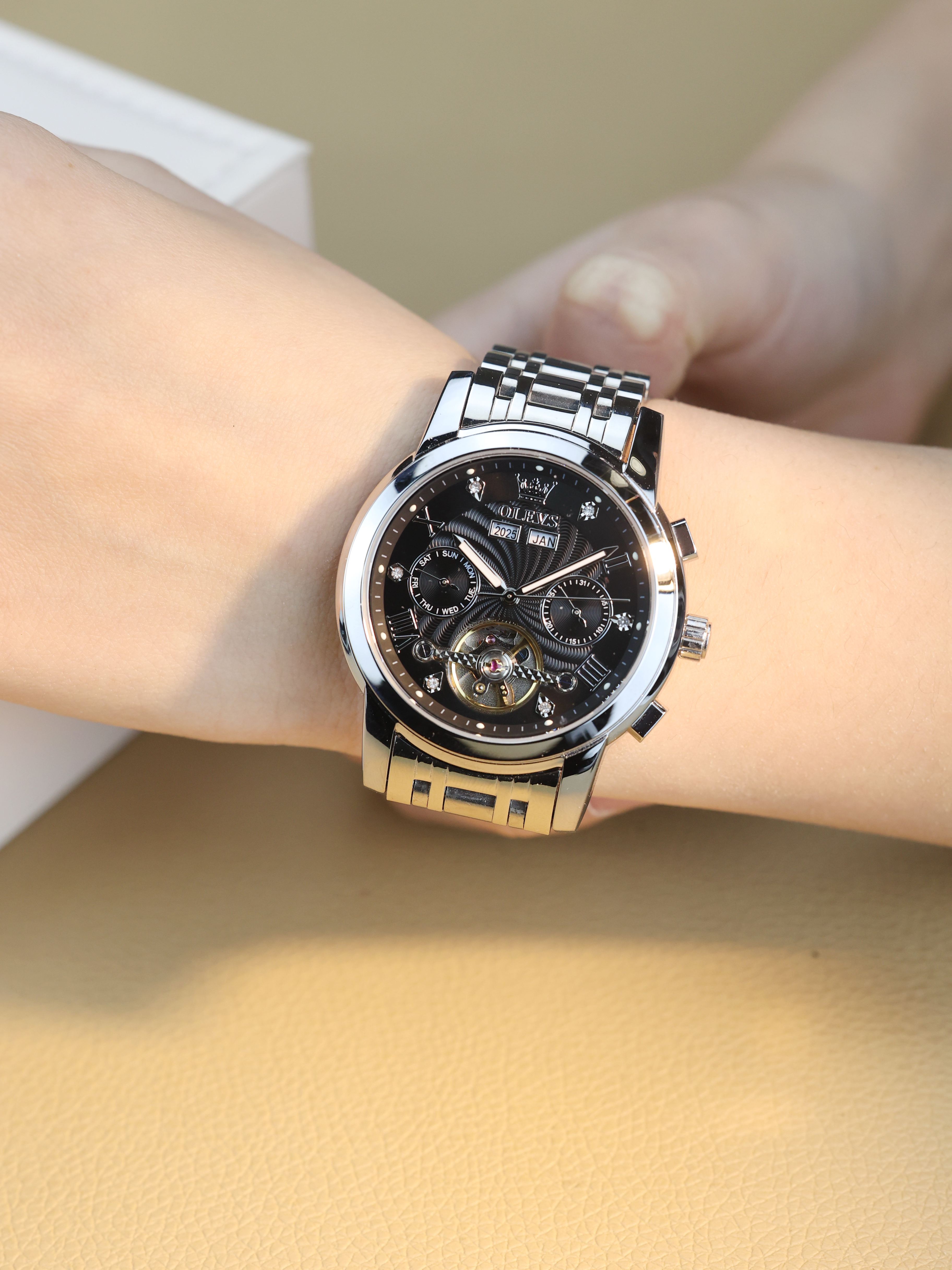 本篇笔记关联了OLEVS/欧利时 镂空多功能夜光防水潮流机械男士手表 【礼盒装】黑色、Bestdon/邦顿 40mm精钢表带时尚潮流多功能三眼六针日历防水夜光石英男士手表 黑色等商品,为用户提供真实的使用体验和购买参考。