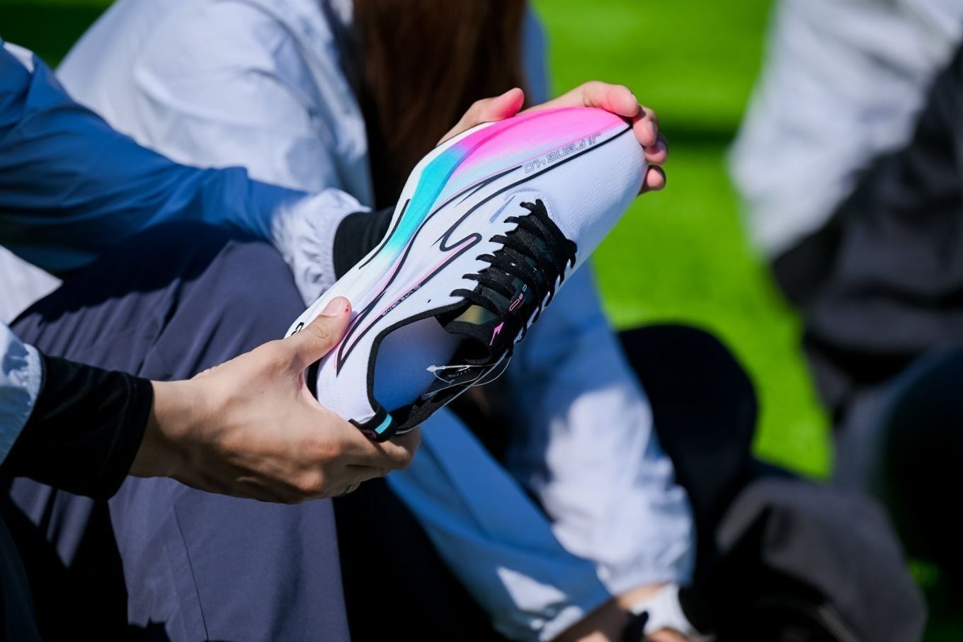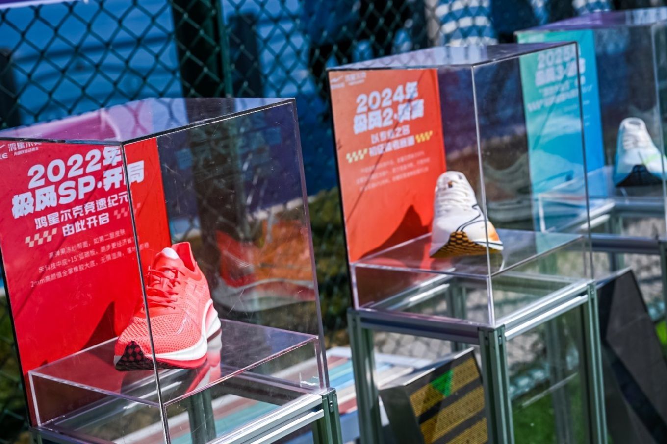 这次极风4的中底 ETPU脂肪族珠粒发泡,对训练和落地反馈都有针对优化,全新极致薄底设计快速启动,升级了分趾弹射玻纤板采用一体成型结构,将蹬地力转化为向前推力,在场地项目中比较适合场地跑和立定跳远项目。现场展现了很多学生梦想中的极风跑鞋通过共创的方式在现场展示,这次的主角极风迎来了第四代,这个系列一直有穿,在第2代时风格变化比较大,完全转向到薄底竞速鞋的方向。