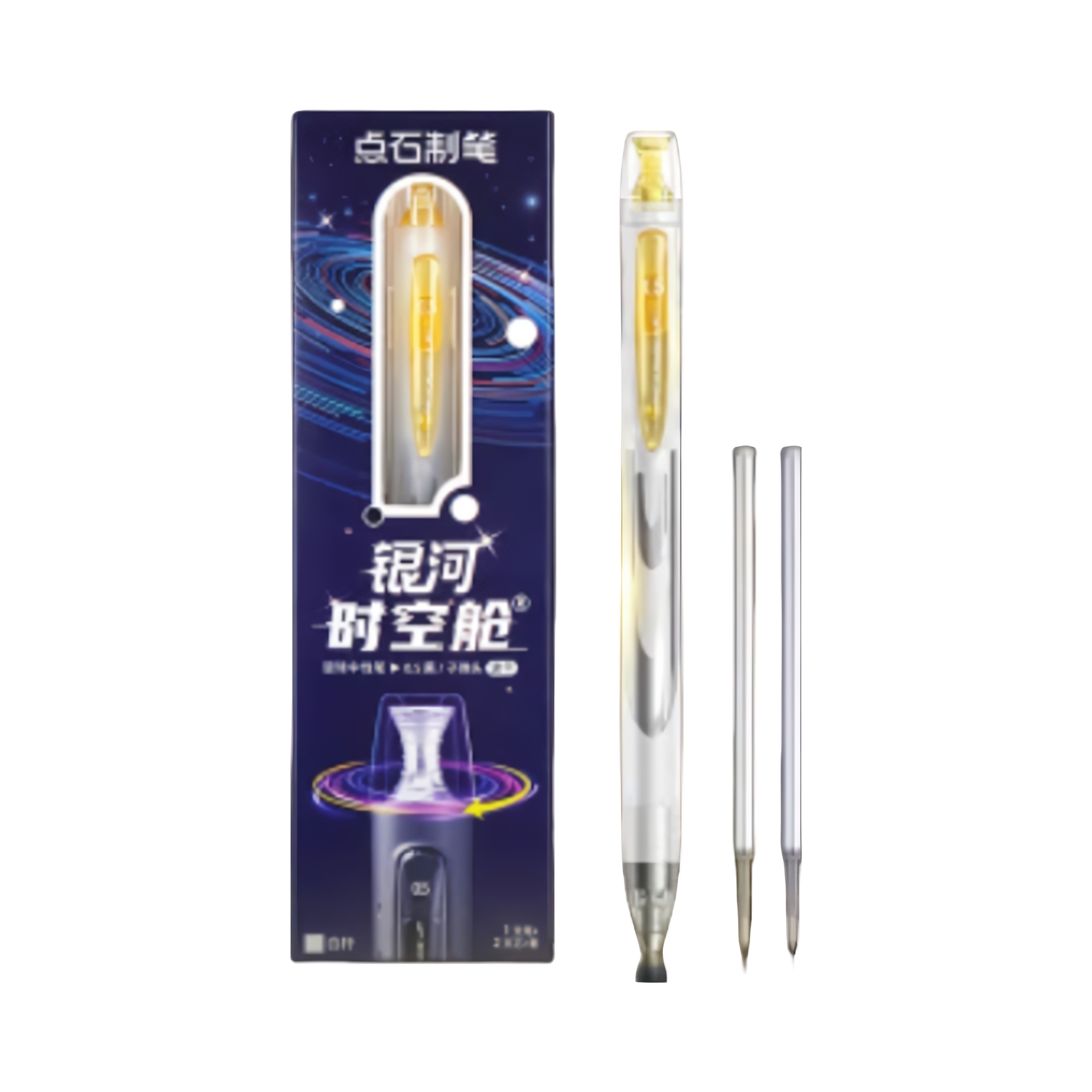 本篇笔记关联了点石 银河时空舱款 0.5mm 子弹头 旋转中性笔静音双珠黑色水笔 DS-0194D 顺滑低重心书写刷题按动练字 黑芯/白杆等商品,为用户提供真实的使用体验和购买参考。