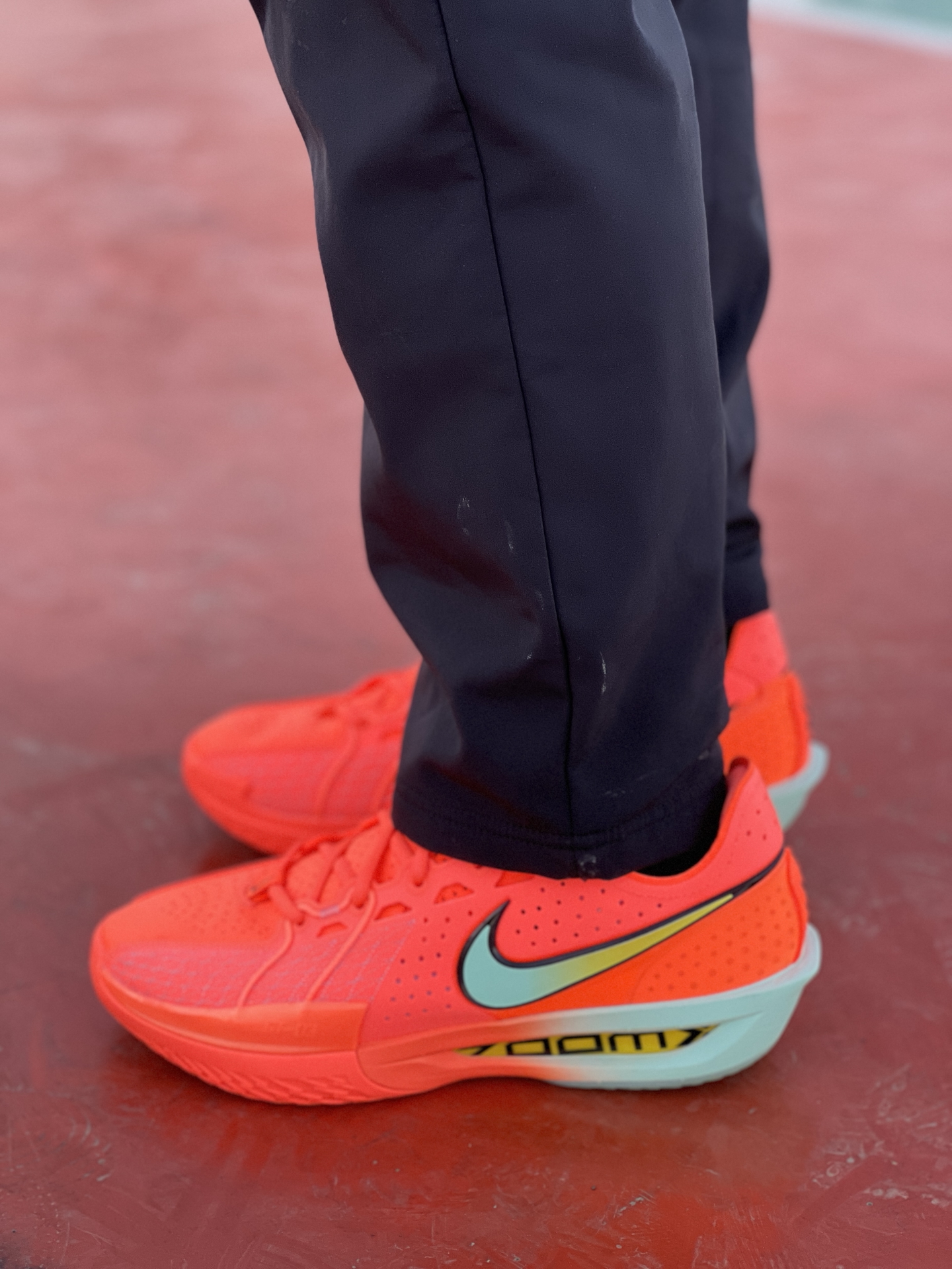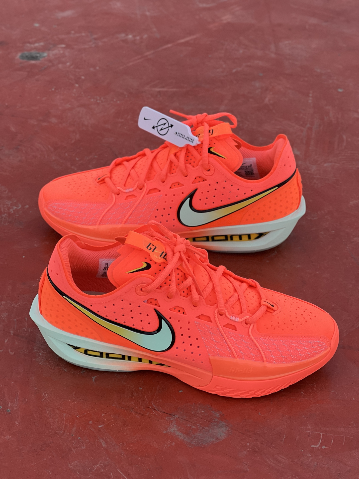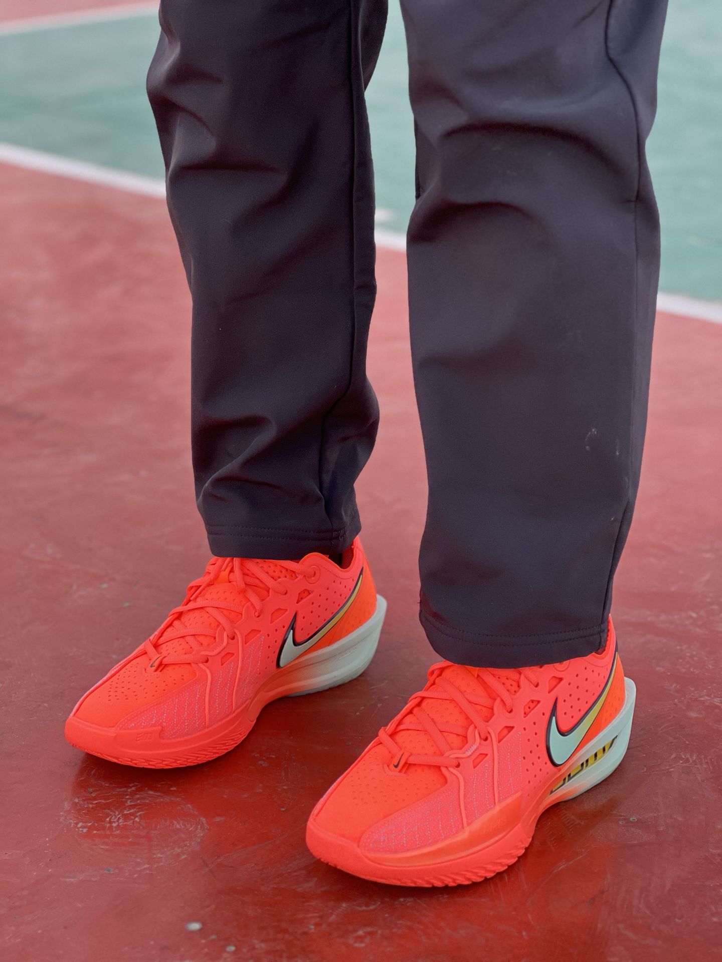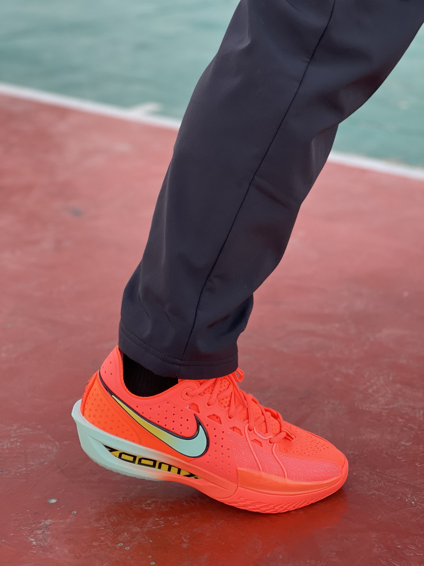 作为一名篮球爱好者,Nike的G.T Cut3代无论是颜值还是性能上都很吸引我! 这双是红橙配色,搭配侧身的Nike Swoosh,上脚非常的亮眼! 鞋面是织物透气鞋面,我在实战过程中也不会感到闷脚! 鞋带采用了Flywire飞线加固,上脚给我带来的包裹感很足! 橡胶材质的鞋底,适配多种场地,我在室外水泥地实战两次后,磨损不是很大! 这双鞋子搭载了Zoom X泡棉中底,我在中投落地时没有振脚感! ...