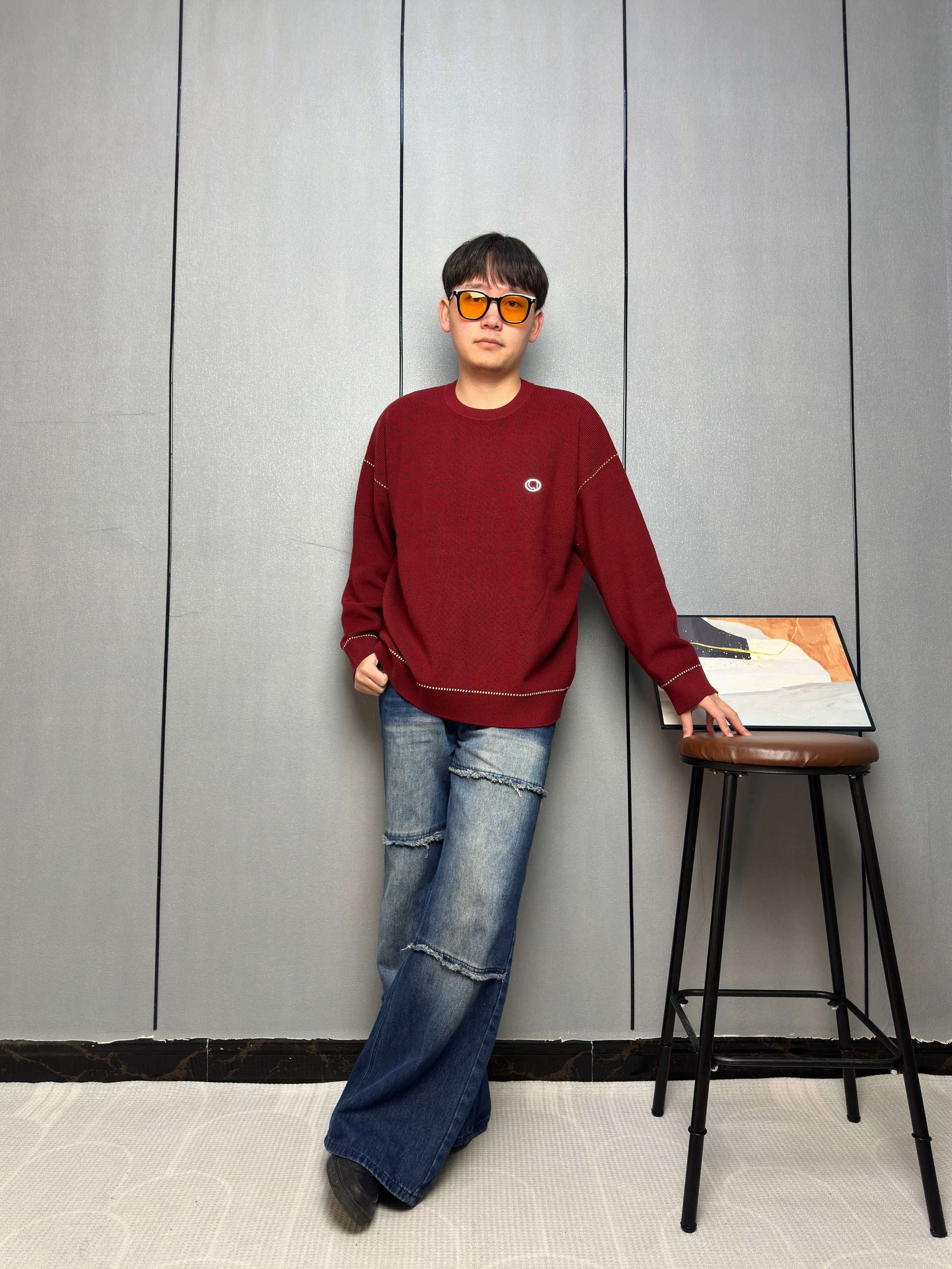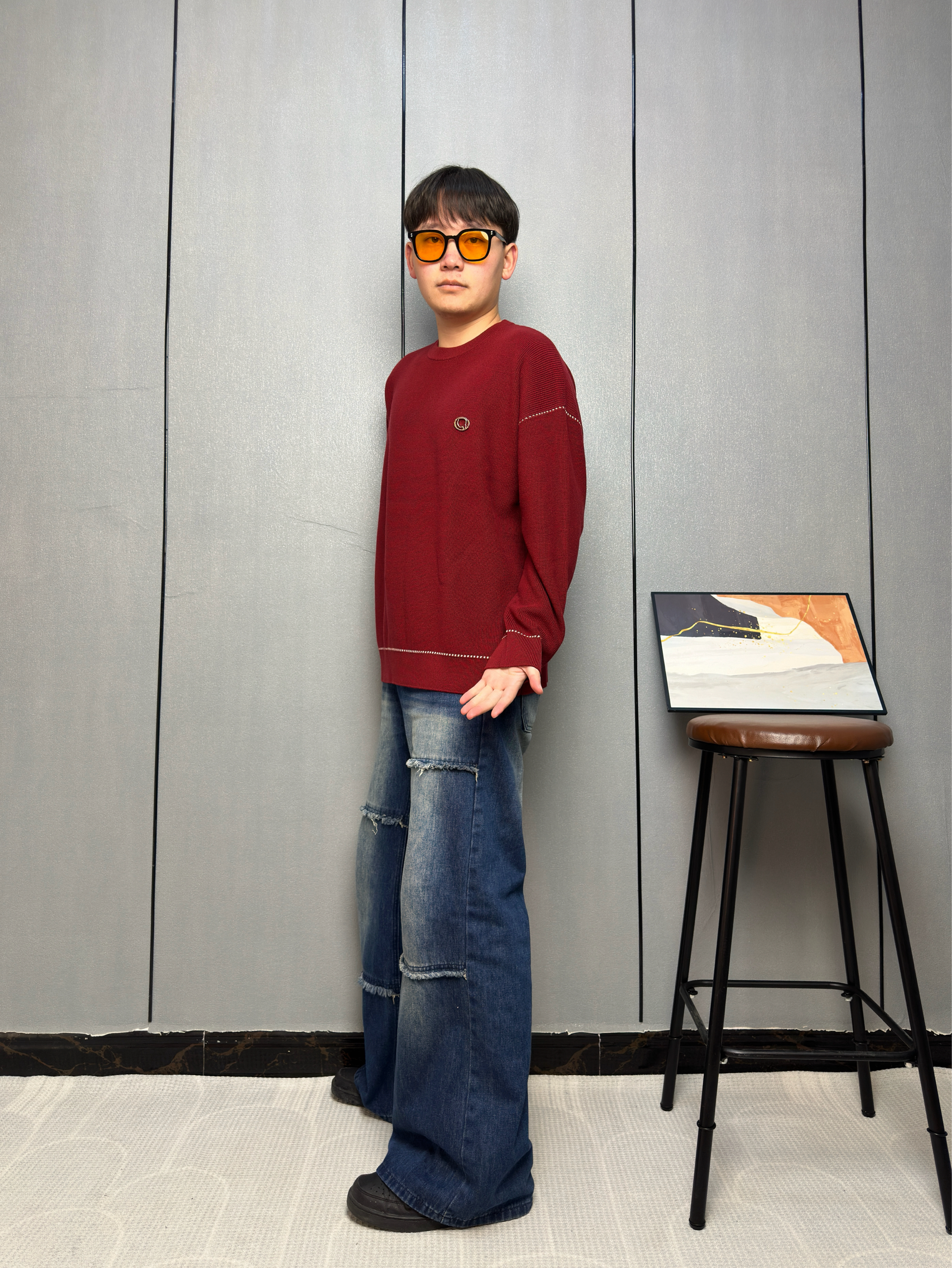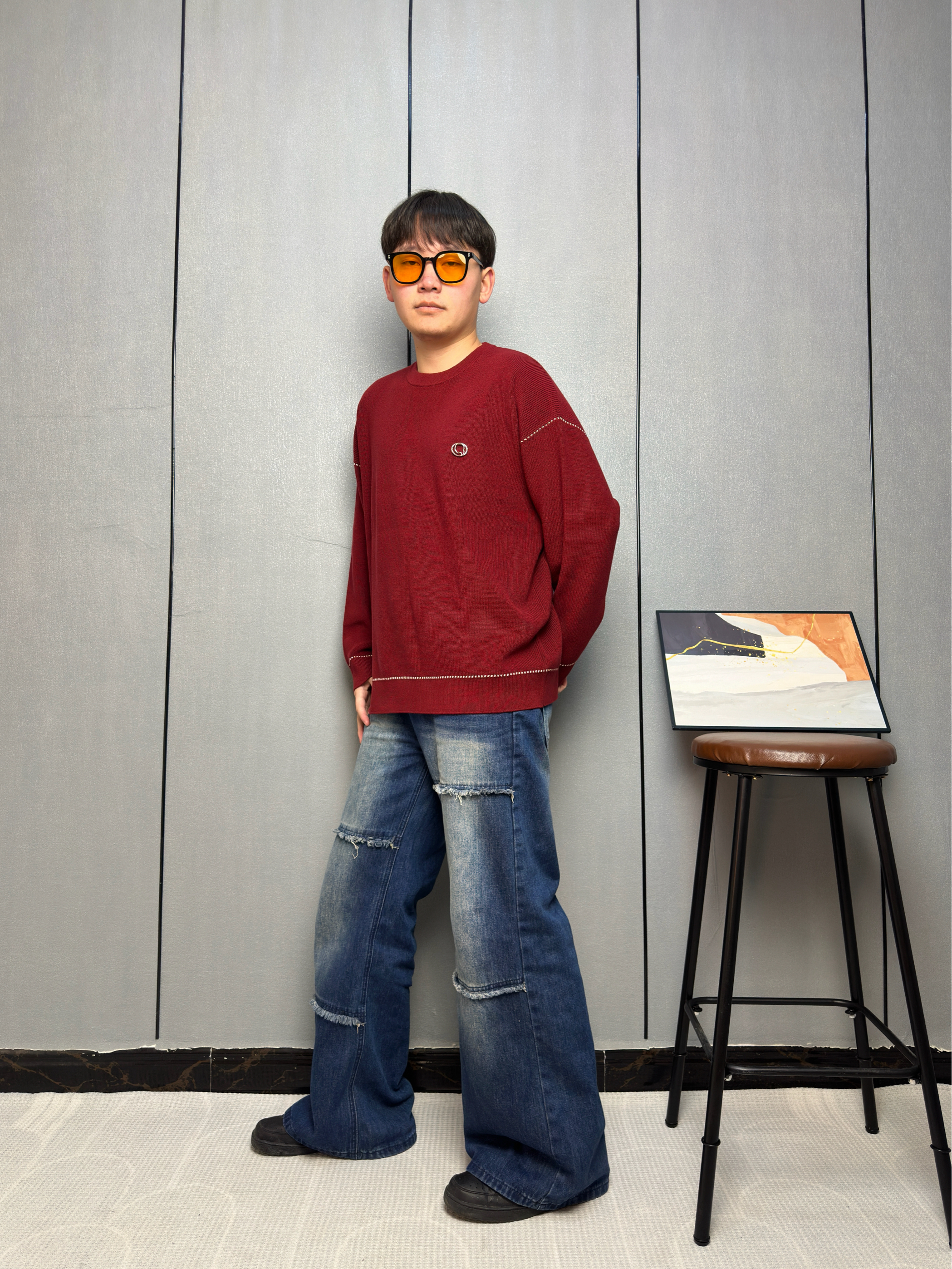 这件酒红色毛衣一上身 感觉整个冬天都温暖了起来 面料软软糯糯的,贴身穿也不扎 身上袖口和下摆的白色线条设计 让整体不会显得单调 搭配我这条拼接牛仔裤,休闲中带点小细节 冬天也能穿出活力四射 见朋友或者出门逛街都很合适